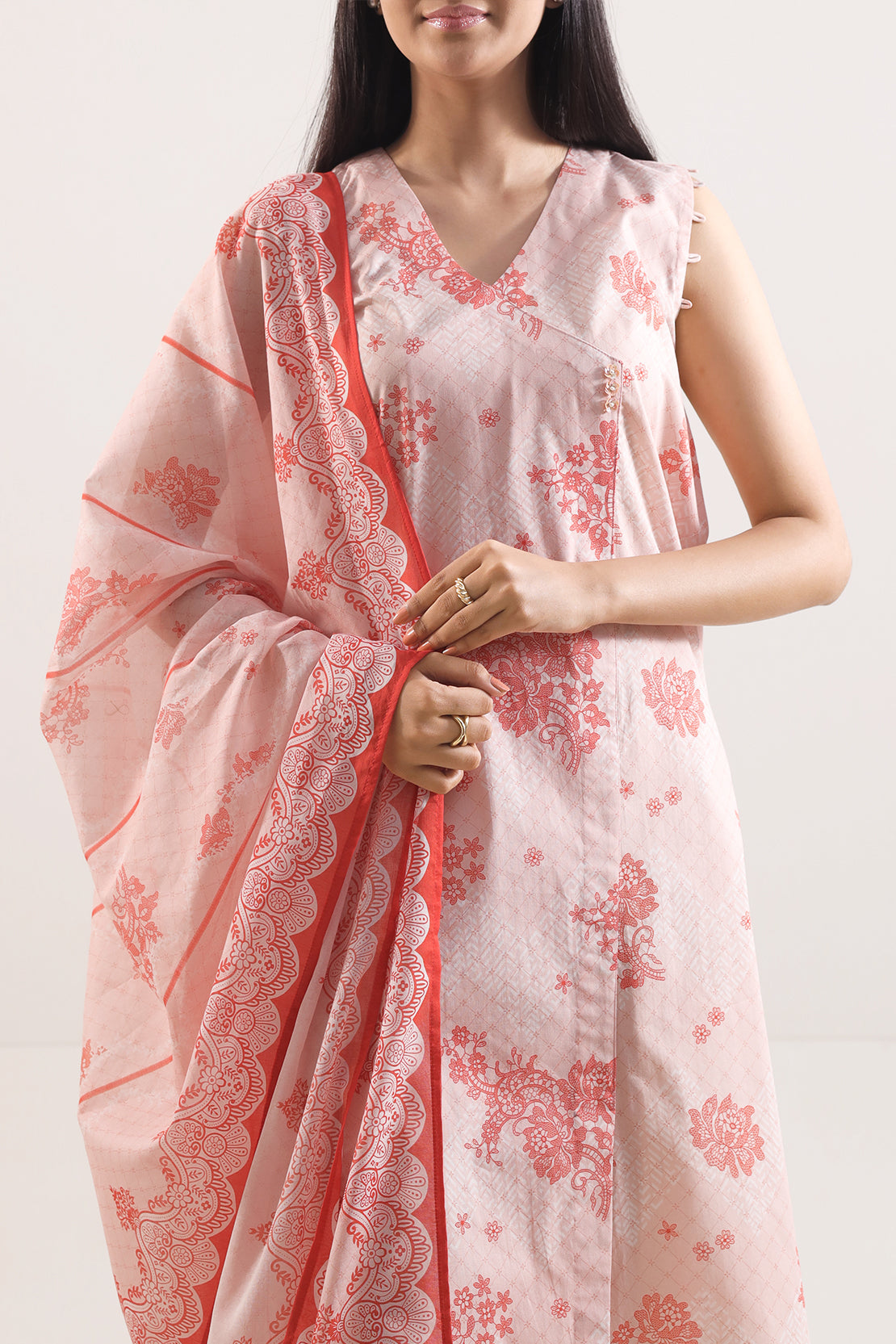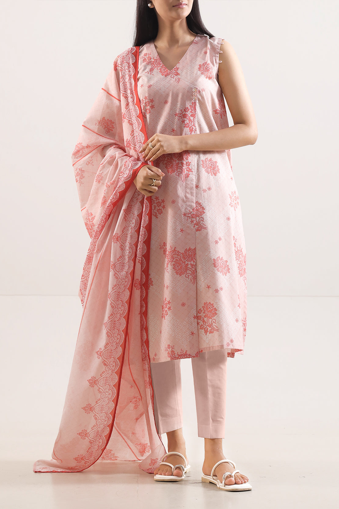 Enhance Your Seasonal Wardrobe With This Baby Pink Unstitched Printed Lawn 3-Piece Set From SAYA, Meticulously Crafted In Feather-Light Lawn Fabric That Balances Breathable Comfort With Personal Tailoring Freedom. The Shirt Comes In A Generous Width For Custom Styling, Accompanied By A Flowing Printed Dupatta That Adds Graceful Movement, While The Dyed Cambric Trouser Piece Provides Structure And Function. Ideal For Everyday Elegance, Personalized Festive Looks, Or Smart Casual Styling That Reflects Effortless Refinement.