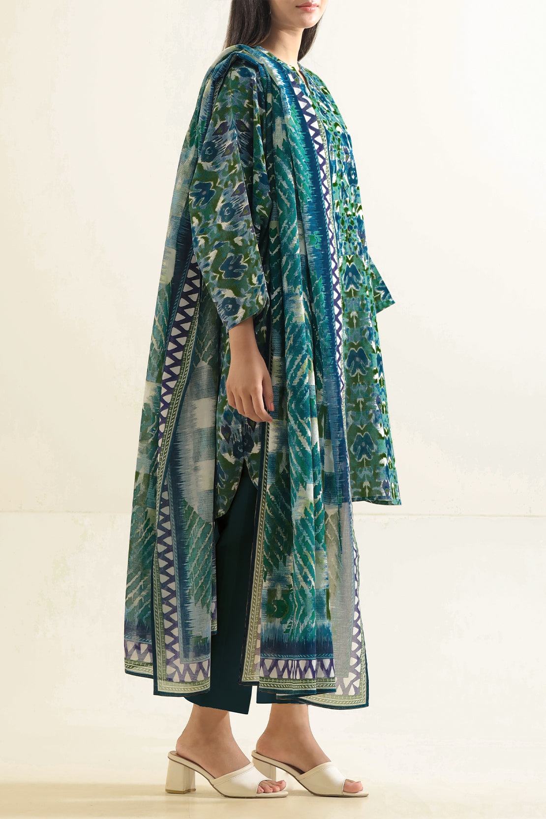 Refresh Your Seasonal Wardrobe With This Unstitched Printed Lawn 3-Piece Ensemble By SAYA. Crafted From Lightweight, Breathable Lawn Fabric, The Shirt Features A Delicate All-Over Print That Blends Subtle Elegance With Modern Flair. Paired With A Matching Printed Dupatta Offering Graceful Drapery, And A Dyed Cambric Trouser Panel, This Set Balances Comfort, Color Harmony, And Tailoring Flexibility. Ideal For Daytime Gatherings, Casual Festive Wear, Or Personalized Summer Stitching, It Offers Effortless Style That Transitions Seamlessly With Your Styling Vision.