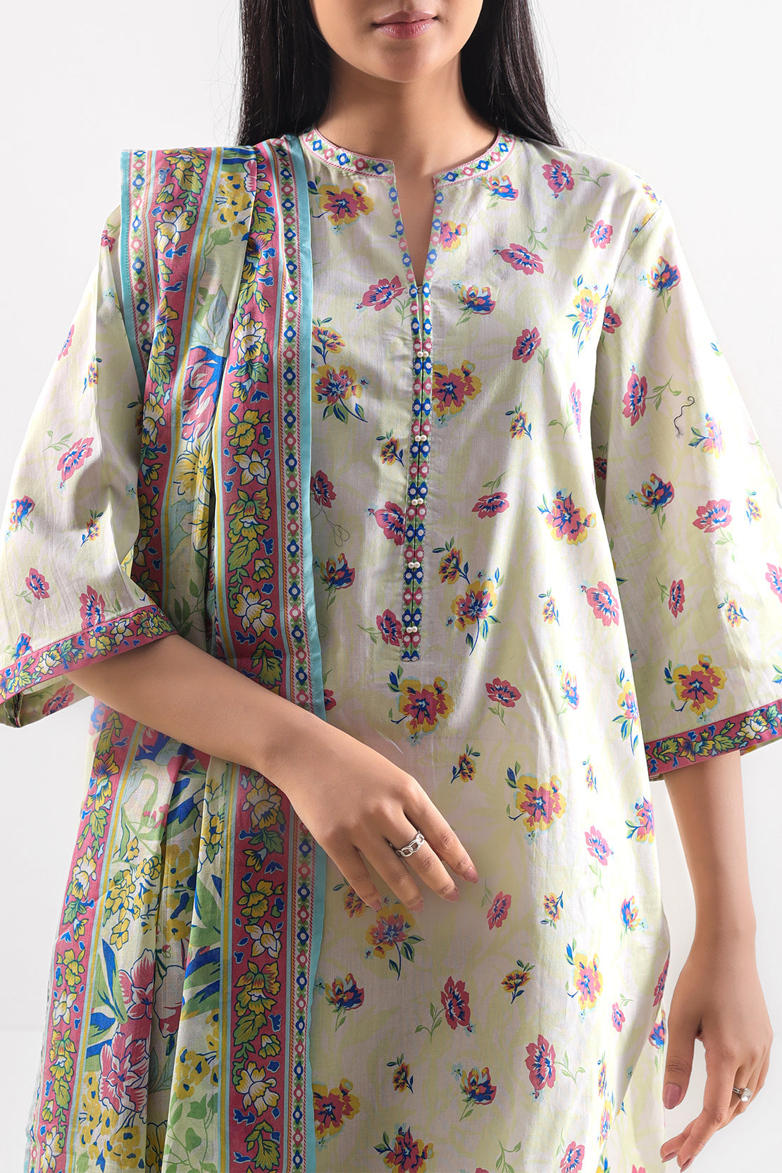 Infuse Grace Into Your Summer Look With This Unstitched Printed Lawn 3-Piece By SAYA. Crafted In Feather-Light Lawn Fabric With A Soft Pastel Yellow Palette, It Features Delicate Traditional Motifs That Radiate Subtle Elegance. The Shirt Comes In A Wider Width For Comfortable Tailoring, Paired With A Coordinated Printed Lawn Dupatta That Adds Airy Grace, While The Plain Dyed Cambric Trouser Grounds The Ensemble With Clean Lines. Tailoring-Ready And Exceptionally Versatile, This Trio Blends Personalized Comfort With Timeless Style—Ideal For Casual Outings Or Light Festive Gatherings.