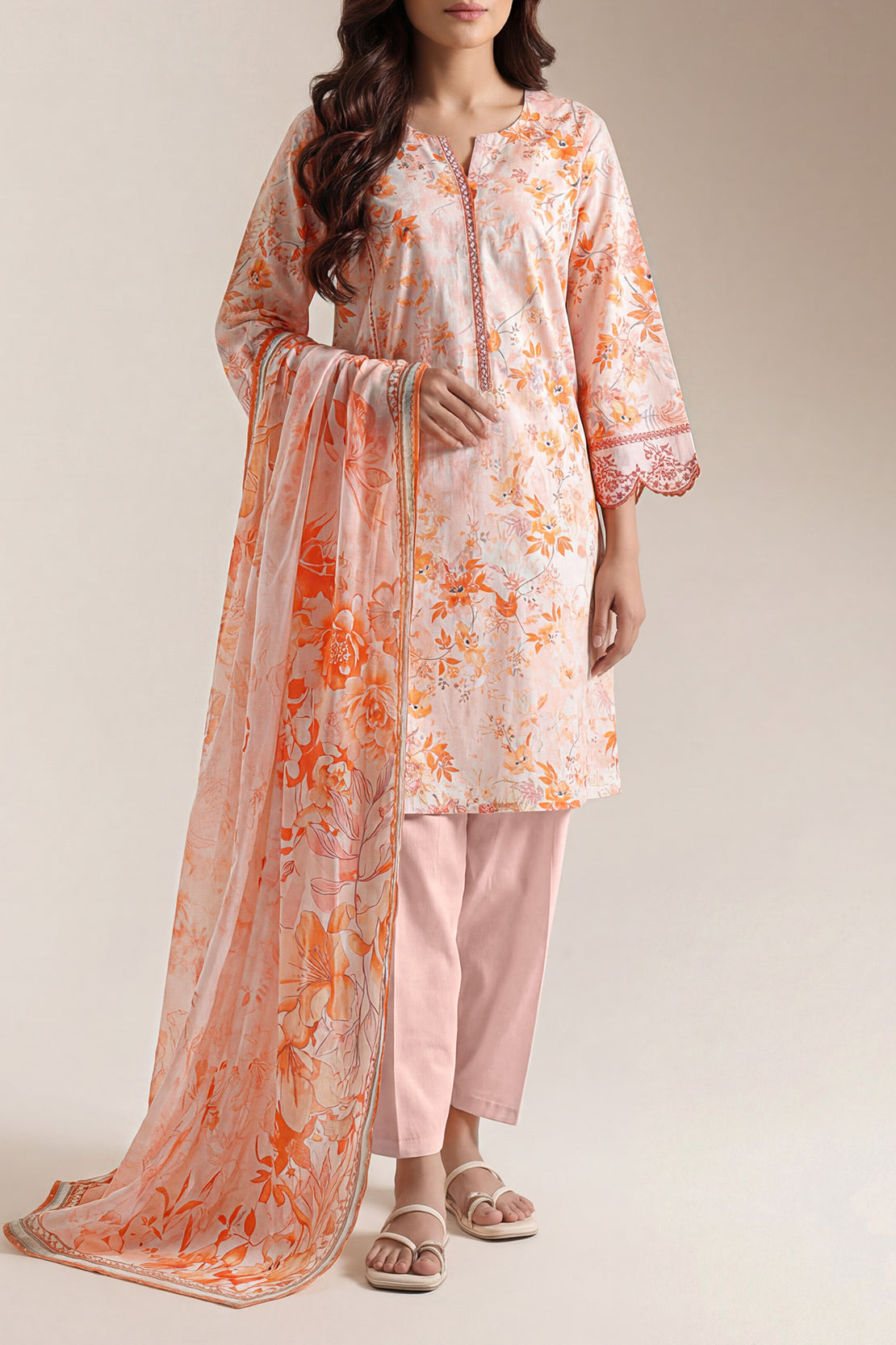 SAYA's Unstitched Printed Lawn Three-Piece Collection Features A Captivating All-Over Design On Premium, Breathable Fabric. This Ensemble, Including A Shirt, Trouser, And Dupatta, Is Designed For Custom Tailoring To Achieve A Perfect Personalized Fit. Ideal For Creating Sophisticated Summer Wear For Casual Outings, Garden Parties, And Daytime Events, It Offers Unmatched Softness, Versatile Styling, And Effortless Warm-Weather Elegance.