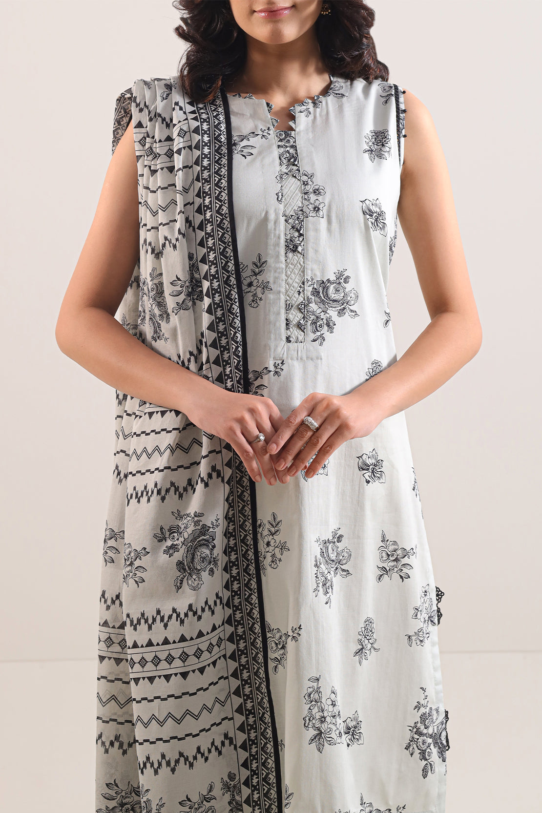 Elevate Your Custom Creations With This Exquisitely Crafted Unstitched Printed Lawn 3-Piece From SAYA. Rendered In Serene Ice Grey, The Premium Lawn Fabric Offers Feather-Light Breathability And Effortless Comfort—Perfect For Personalized Tailoring. The Harmoniously Printed Shirt, Coordinated Dupatta, And Complementary Trouser Panel Unite Modern Charm With Understated Grace, Making This Ensemble An Ideal Canvas For Bespoke Styling In Everyday Or Festive Wardrobes.
