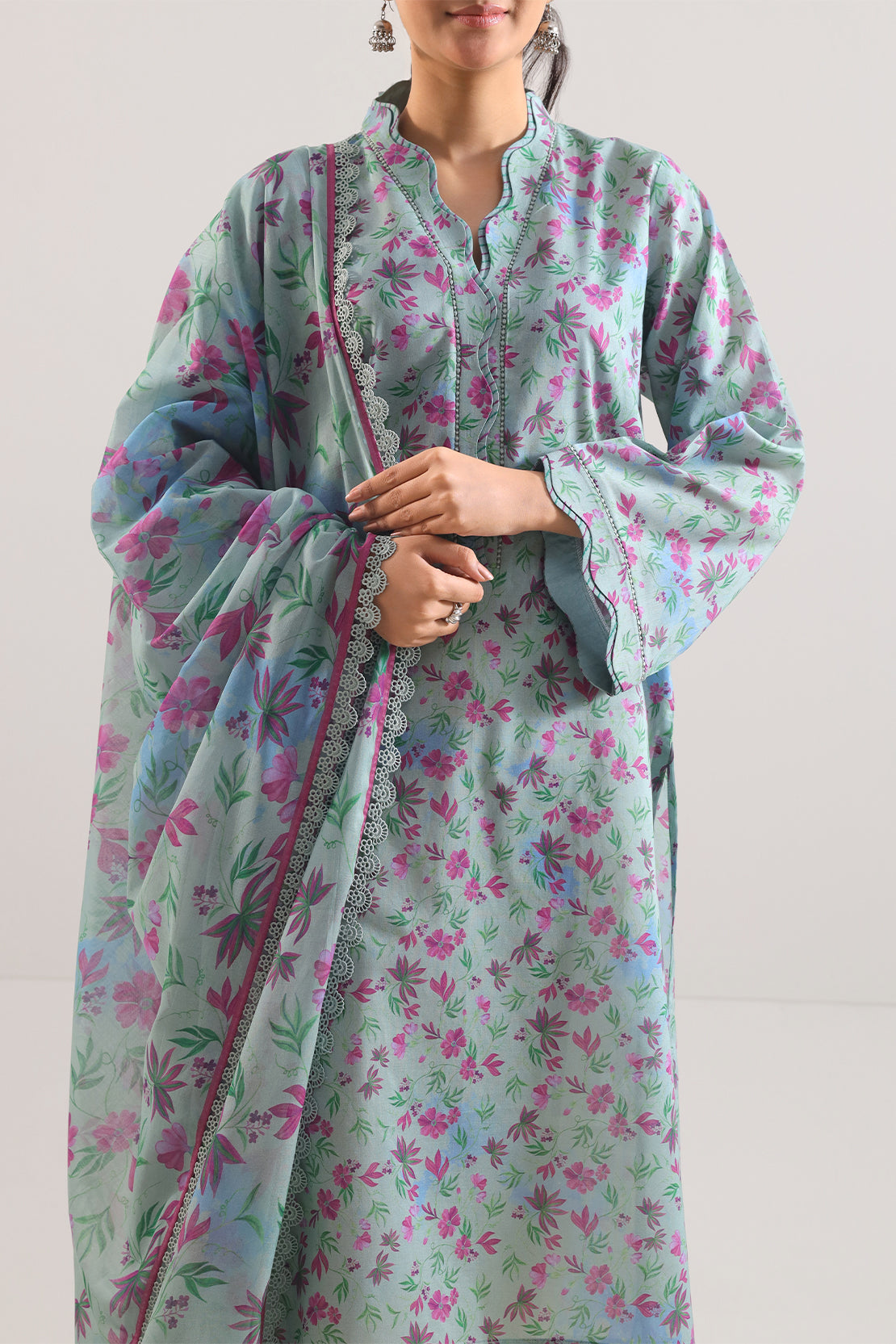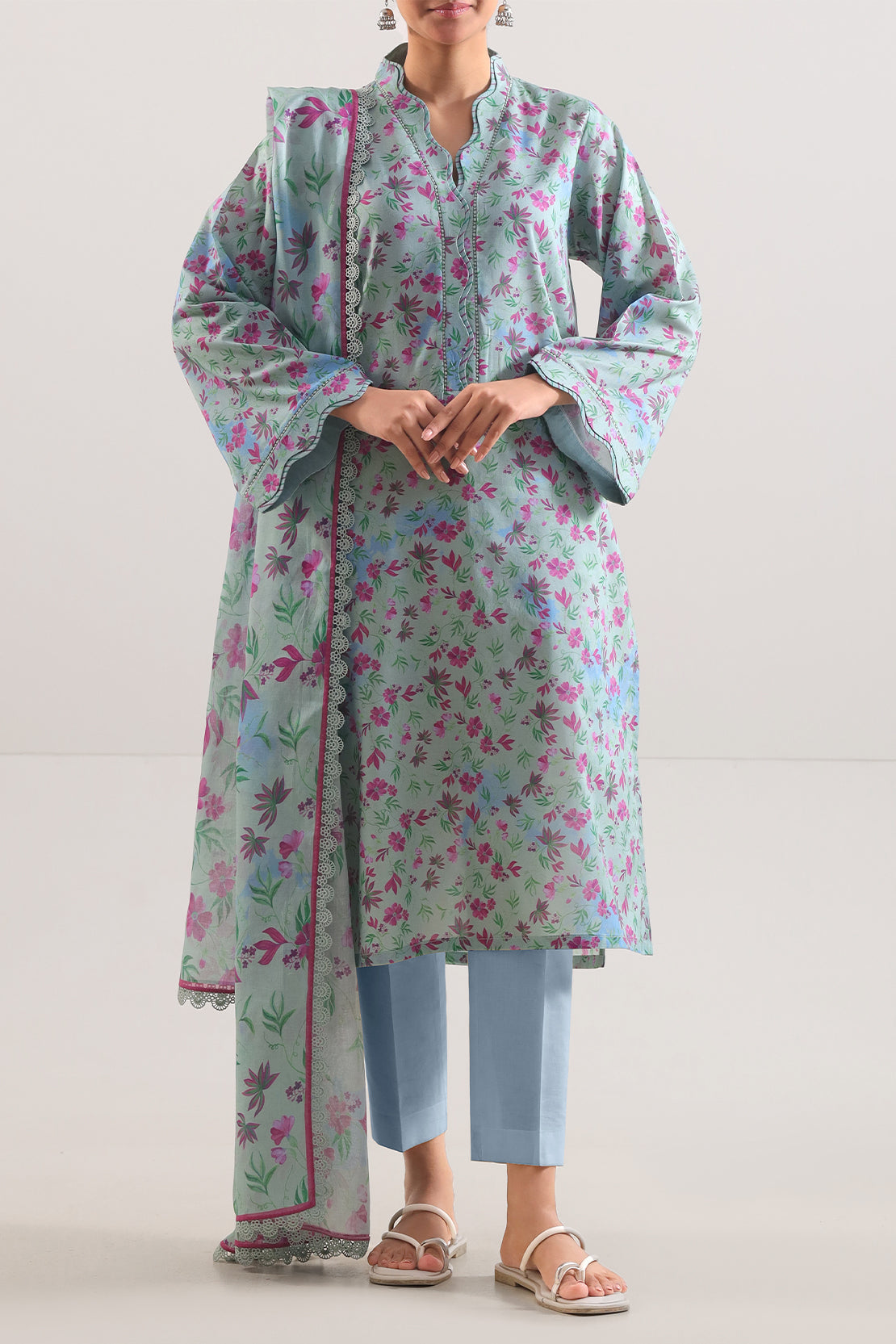 Elevate Your Summer Wardrobe With This Elegant Blue Unstitched Printed Lawn 3-Piece By SAYA. Crafted From Soft, Breathable Lawn Fabric, The Set Features A Gracefully Printed Shirt Panel For Tailoring Freedom, A Flowing Printed Lawn Dupatta That Adds Elegance, And A Dyed Cambric Trouser For Structure And Comfort. Perfect For Personalized Daywear, Casual Outings, Or Light Festive Styling With A Refined Touch.