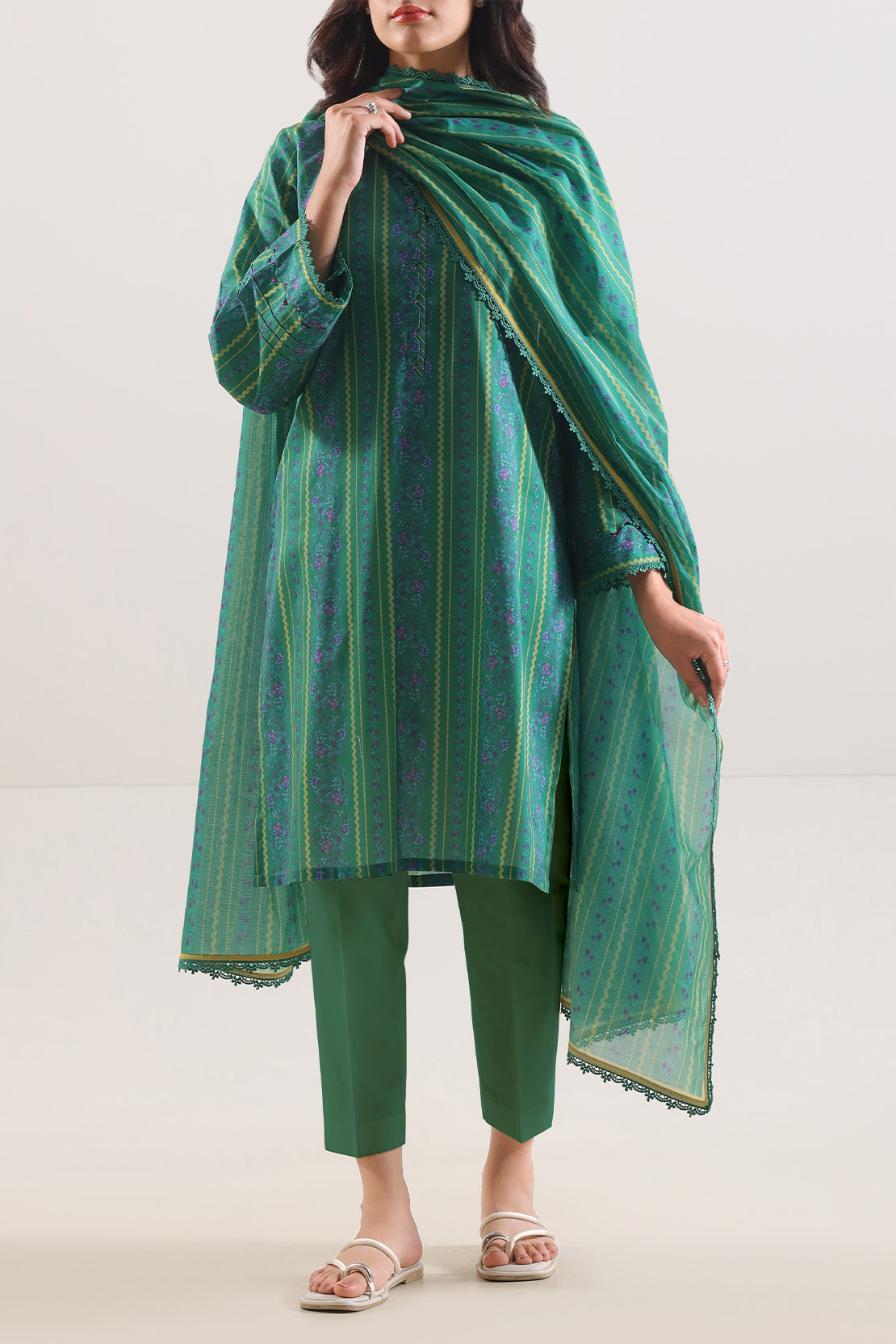Elevate Your Summer Wardrobe With This Elegant Green Unstitched Printed Lawn 3-Piece By SAYA. Crafted From Soft, Breathable Lawn Fabric, It Comes With A Generous Printed Shirt Panel Measured For Tailoring Precision, A Flowing Printed Lawn Dupatta That Adds Movement, and A Dyed Cambric Trouser Piece for Structure and Comfort. This Set Is Tailoring-Ready and Perfect for Creating Casual Daywear, Refined Festive Attire, or Personalized Summer Ensembles That Blend Comfort With Timeless Style.