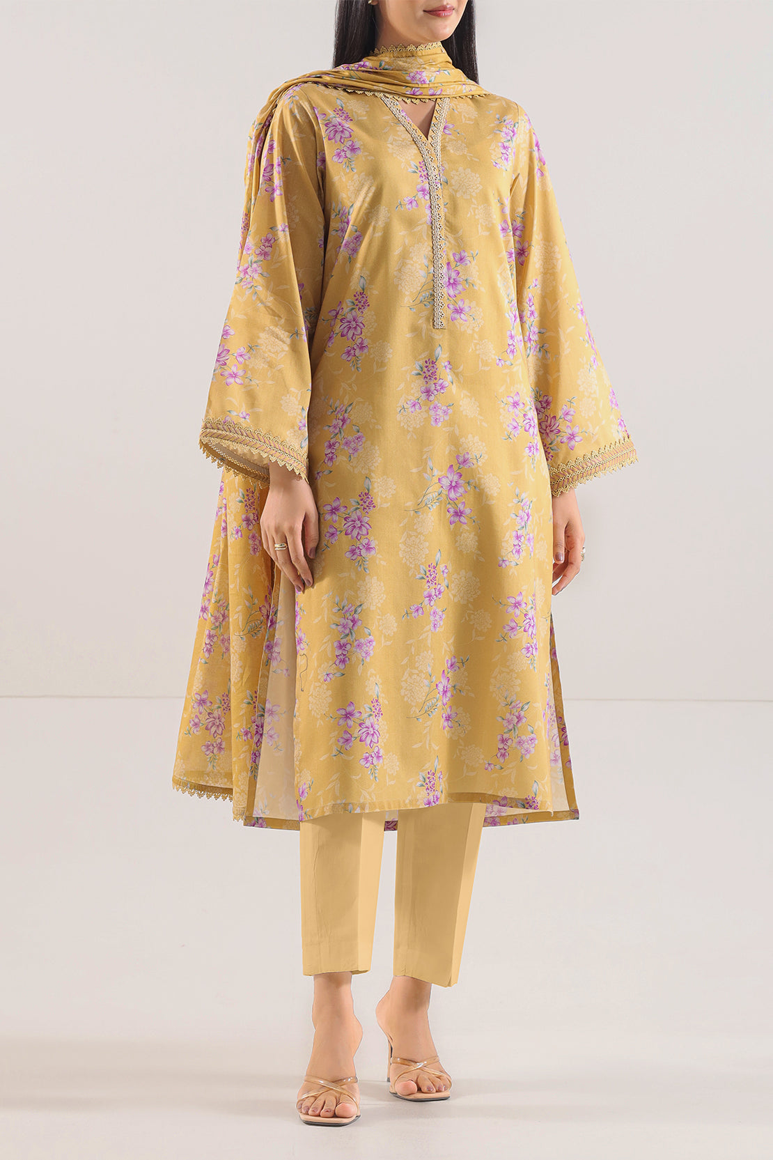 Elevate Your Summer Wardrobe With This Unstitched Printed Lawn 3-Piece By SAYA, Crafted From Ultra-Soft And Breathable Lawn Fabric That Ensures All-Day Comfort. The Shirt Features A Generously Sized Panel For Tailoring Flexibility, Accompanied By A Gracefully Printed Lawn Dupatta That Adds Fluid Drapability. Completed With A Dyed Cambric Trouser Panel That Offers Structure And Ease, This Ensemble Is Ideal For Daytime Styling, Light Festive Wear, Or Personalized Stitching That Effortlessly Blends Seasonal Comfort With Refined Expression.