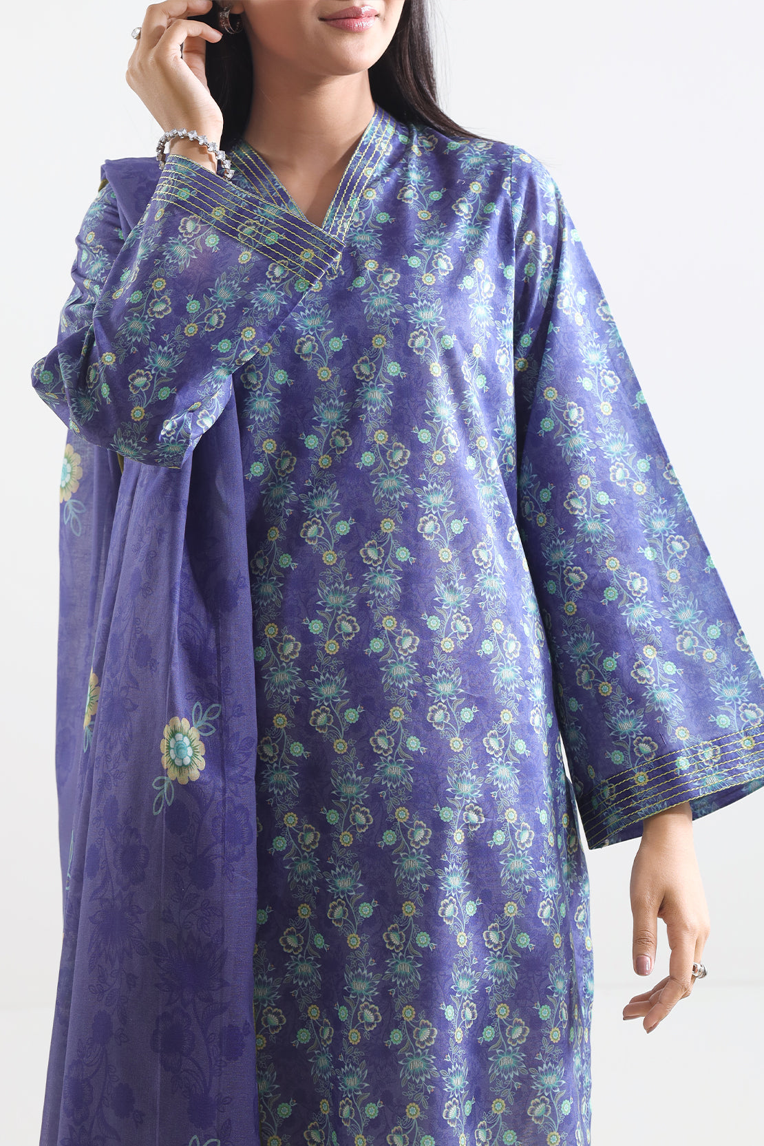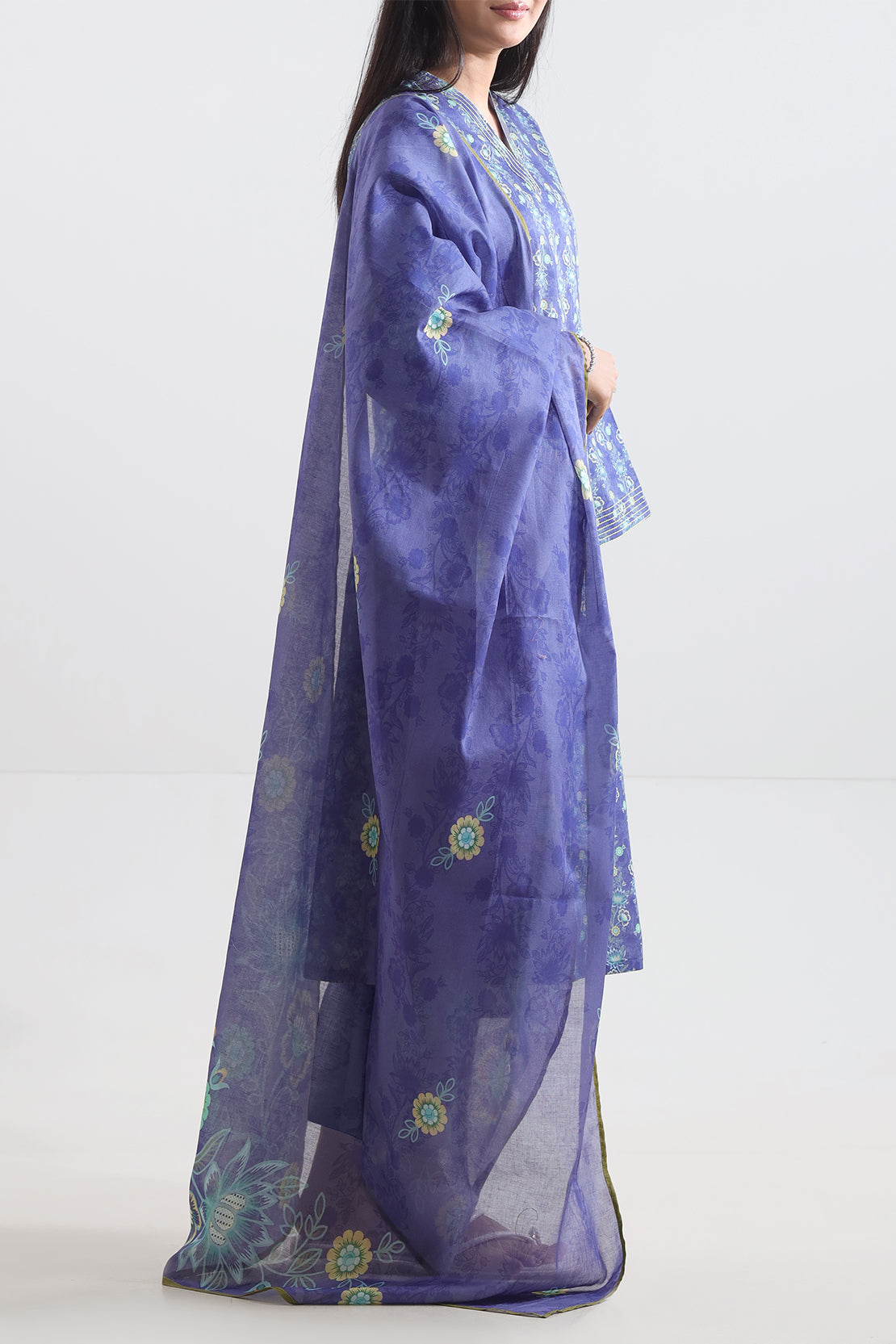 A Delicate Unstitched Three-Piece Ensemble Crafted From Soft, Breathable Lawn Fabric That Seamlessly Merges Comfort With Understated Sophistication. The Shirt Offers Tailoring Freedom and Boasts a Refined All-Over Printed Motif, Perfectly Complemented By a Coordinated Printed Dupatta for Seamless Design Flow. Accompanied By a Dyed Cambric Trouser That Adds Polished Structure and Versatility. This SAYA Set Balances Elegance, Custom Fit Potential, and Everyday Wearability—Ideal for Curated Daywear, Casual Festivities, or Stylish Seasonal Dressing.
