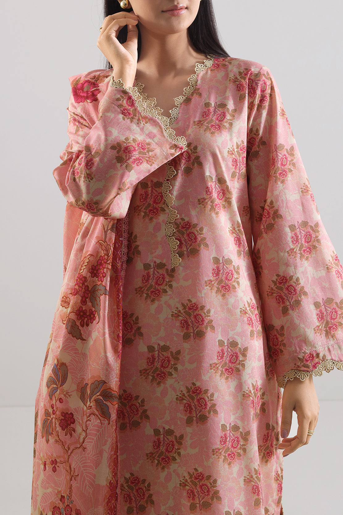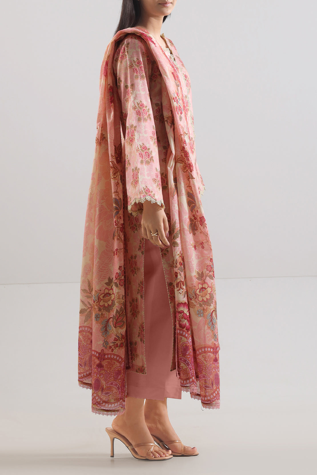 A Refined Unstitched Three-Piece Ensemble Crafted From Lightweight Printed Lawn Fabric That Merges Fine Breathability With Artful Aesthetics. The Shirt Offers Tailoring Freedom Alongside a Delicate All-Over Print That Balances Elegance With Personal Style. Paired With a Matching Printed Lawn Dupatta for Seamless Design Flow, and a Dyed Cambric Trouser Providing Sleek Structure. This SAYA Set Blends Custom Fit Potential, Polished Design, and Versatile Refinement—Ideal for Festive Daywear, Casual Occasions, or Curated Seasonal Styling.