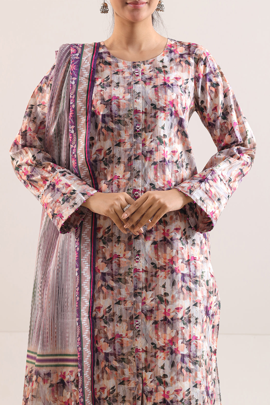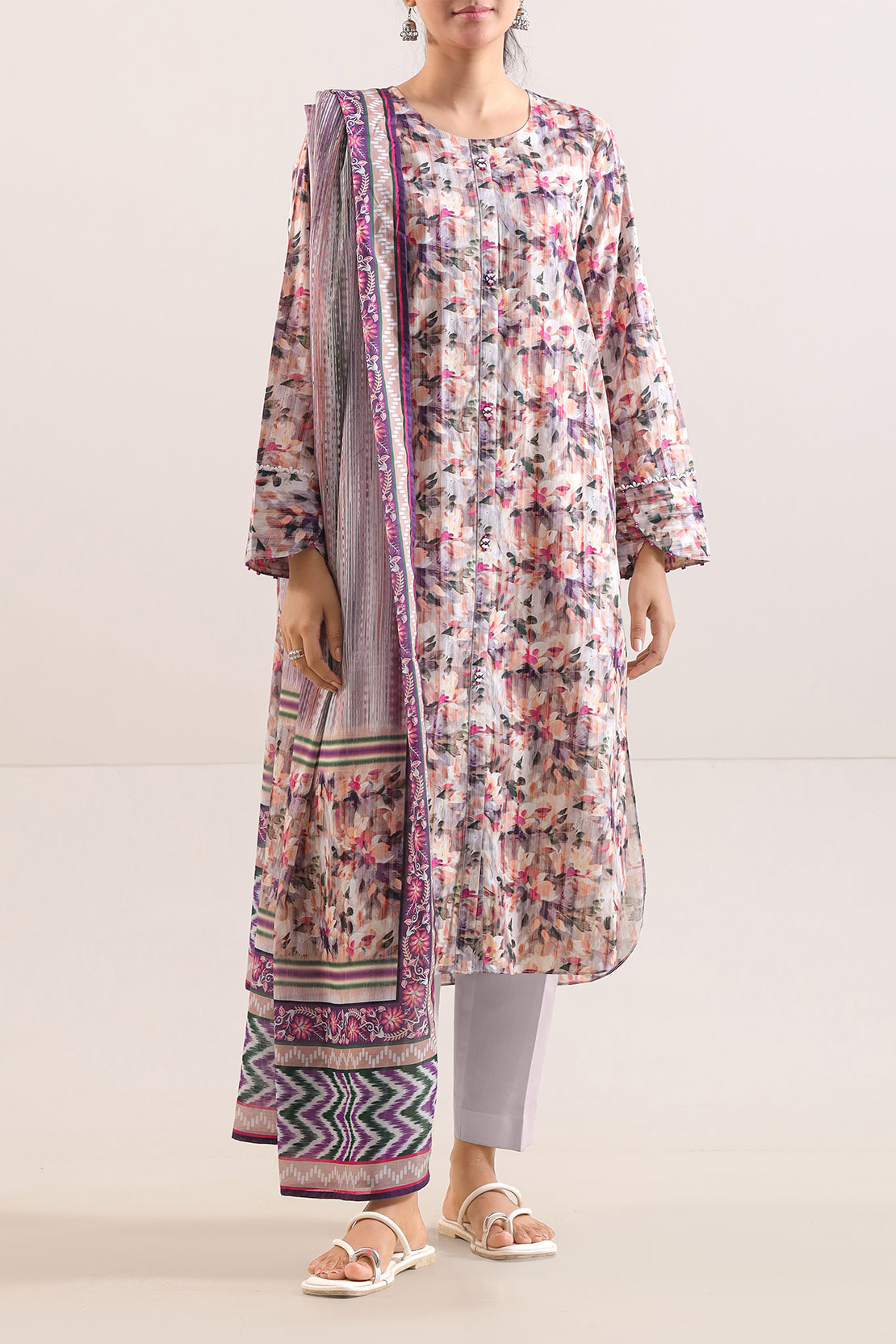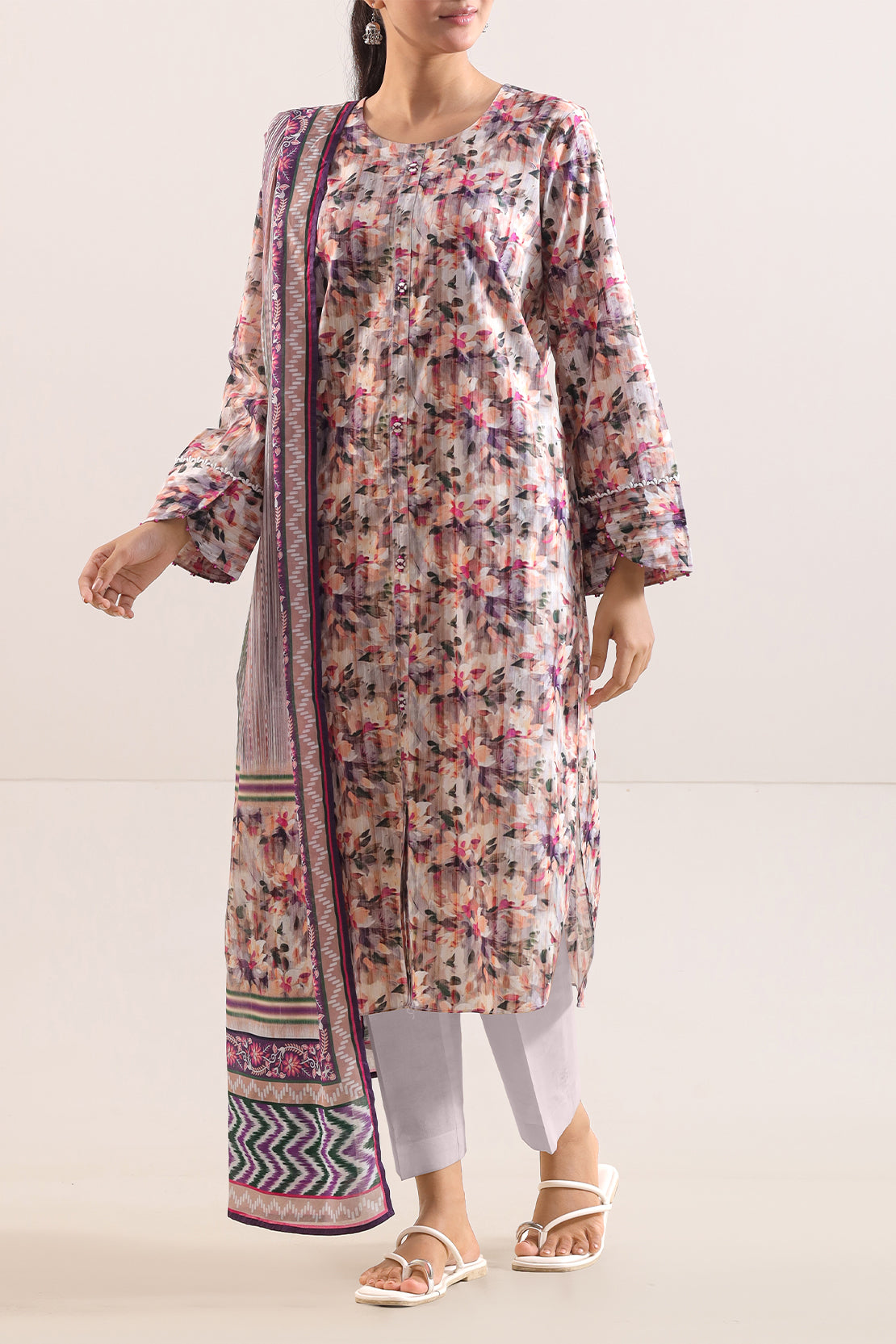 Elevate your summer collection with this Mauve Unstitched Printed Lawn 3-Piece set from SAYA. Crafted from lightweight, breathable Spray Lawn Fabric, the ensemble includes a generously cut Printed Shirt Panel perfect for tailored customization, a harmoniously designed Printed Dupatta, and a softly structured Dyed Cambric Trouser Panel that provides both comfort and poise. Stylish, versatile, and ready to be tailored to your personal flair—ideal for festive moments, everyday elegance, or bespoke daytime styling.