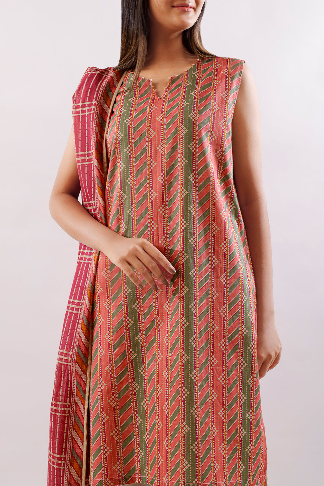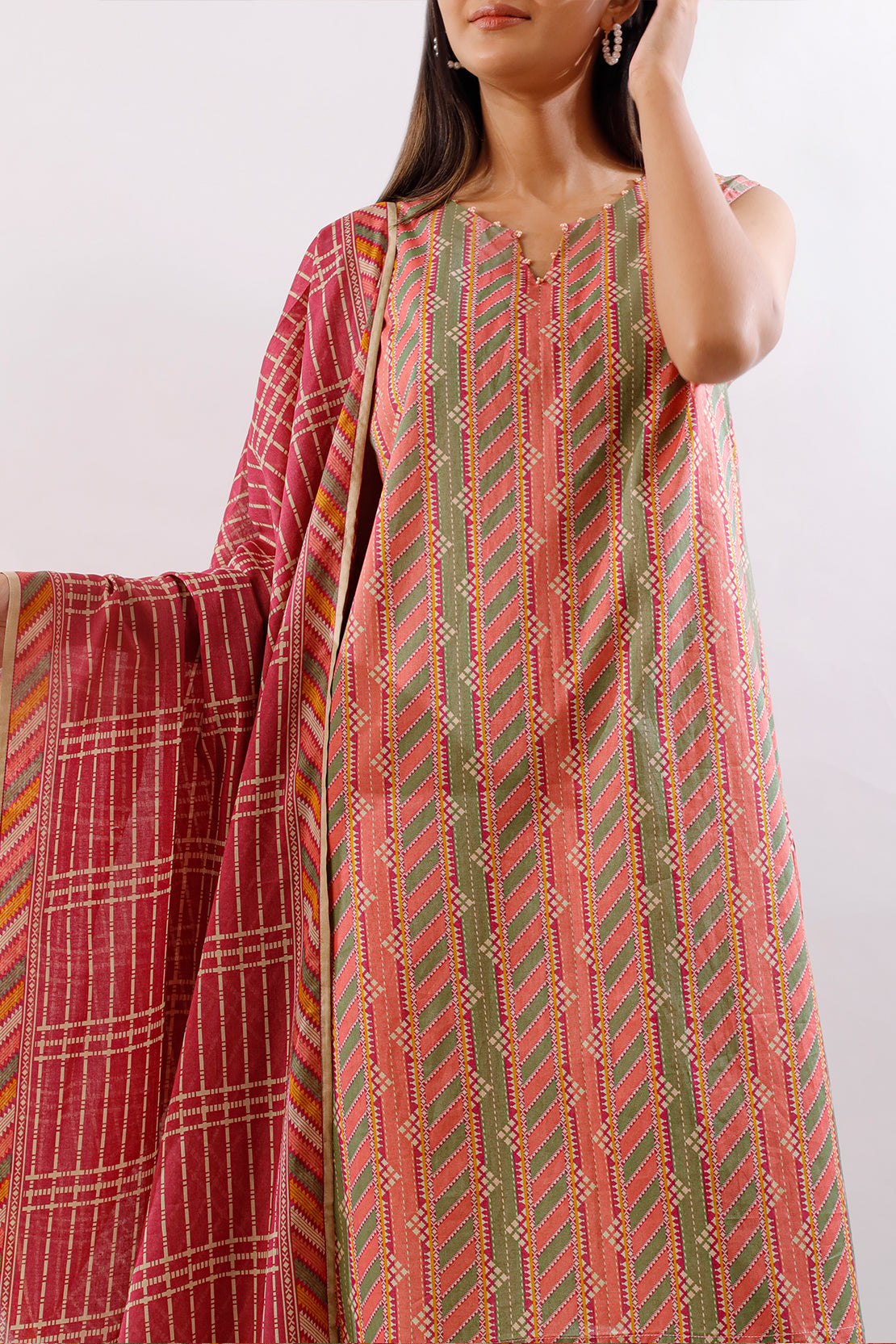 Unstitched Printed Lawn Three-Piece Set By SAYA, Crafted From Ultra-Soft Lawn Fabric That Ensures Breathability And Comfort Through Warm Days. This Set Includes A Printed Shirt Panel, Coordinated Printed Dupatta, And A Dyed Trouser Piece — All Unstitched So You Can Tailor It To Your Perfect Fit. Featuring A Serene Peach Tone With Delicate Prints That Add Elegance Without Overwhelm, And Natural Lawn Fibres That Offer Lightweight Feel Against The Skin. Perfect For Summer Events, Festive Styling Or Casual Outings When You Want Both Style And Custom Tailoring Freedom.