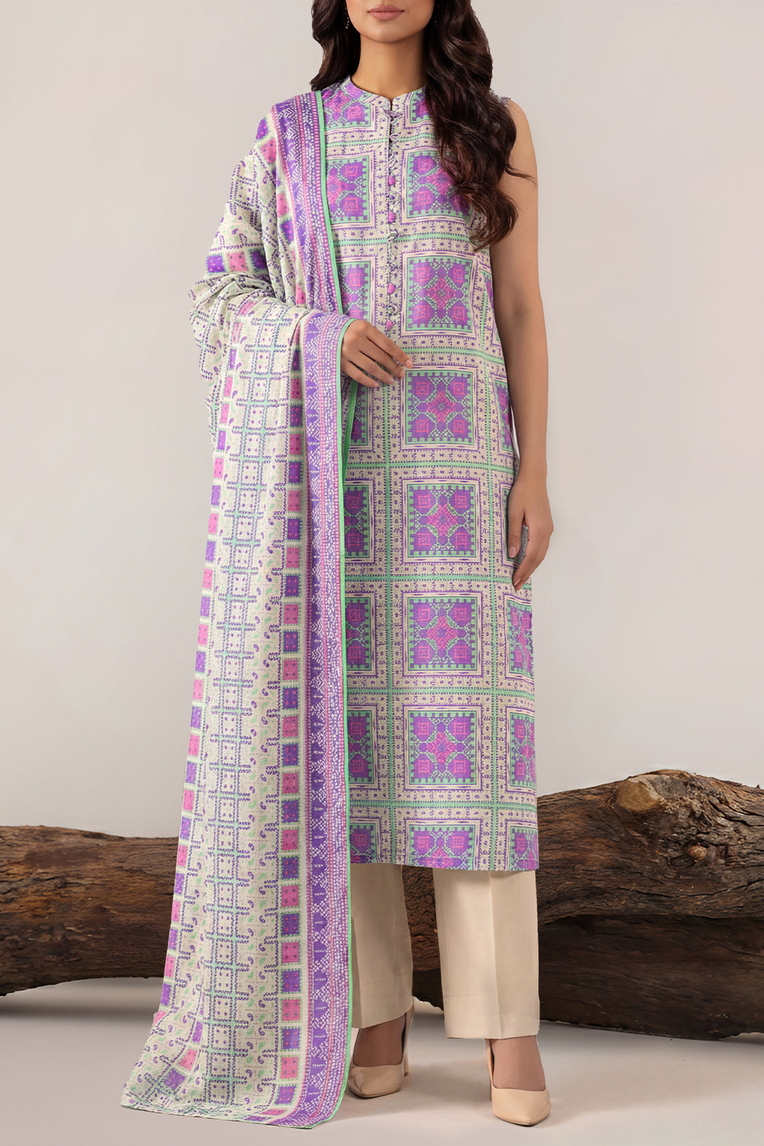 Command Contemporary Chic In The SAYA Unstitched Printed Lawn Trio. This Ensemble Showcases A Bold, Abstract Geometric Print In A Striking Monochrome Palette On Crisp, High-Quality Lawn. Its Modern, Architectural Design Is Tailored For Fashion-Forward Social Events, Gallery Openings, And Evenings That Demand A Confident, Unconventional, And Unforgettably Stylish Impression.