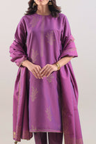 Elevate your wardrobe with Saya's Luxury Pret Cotton Jacquard Stitched 3-Piece ensemble. This set features a premium cotton jacquard shirt adorned with intricate, a matching jacquard dupatta, and dyed trousers. Designed for both comfort and elegance, it's perfect for formal occasions.