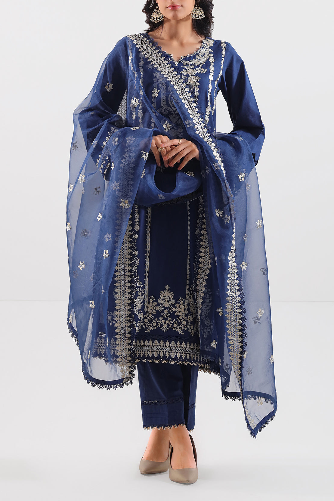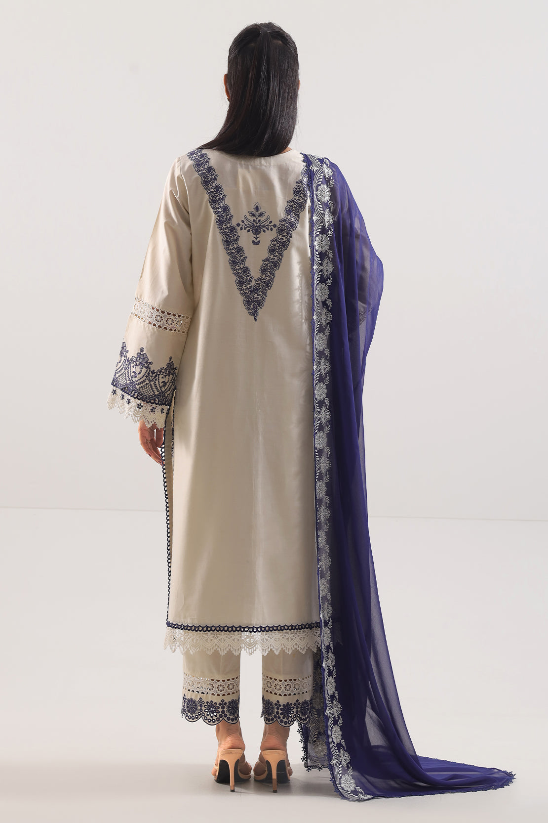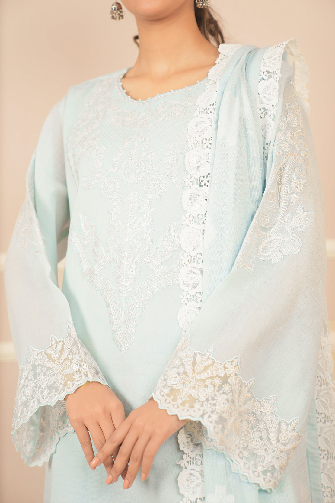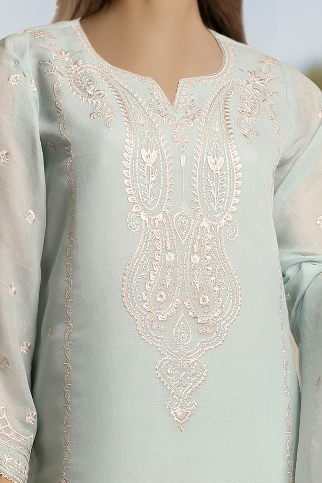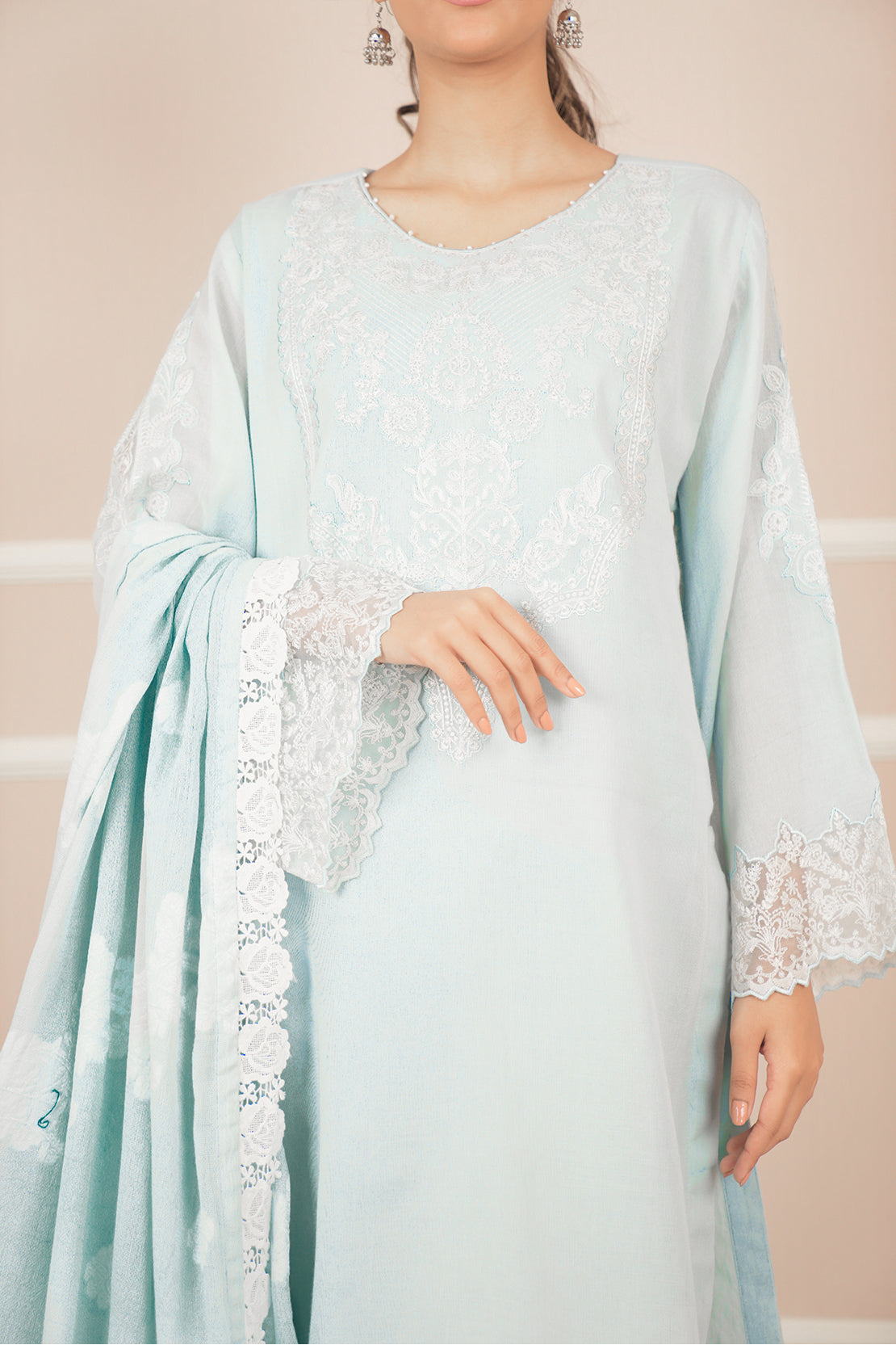 Unstitched Embroidered Self Jacquard 3 Piece With Cotton Net Dupatta