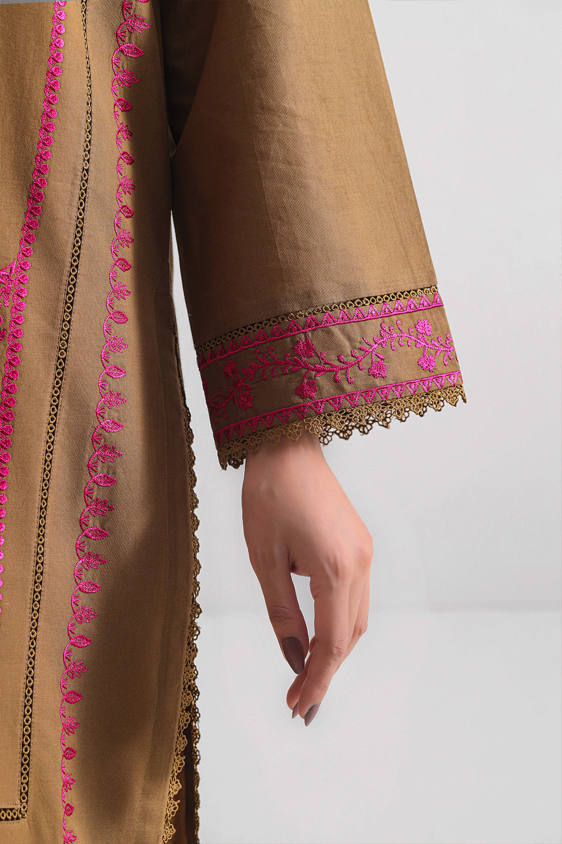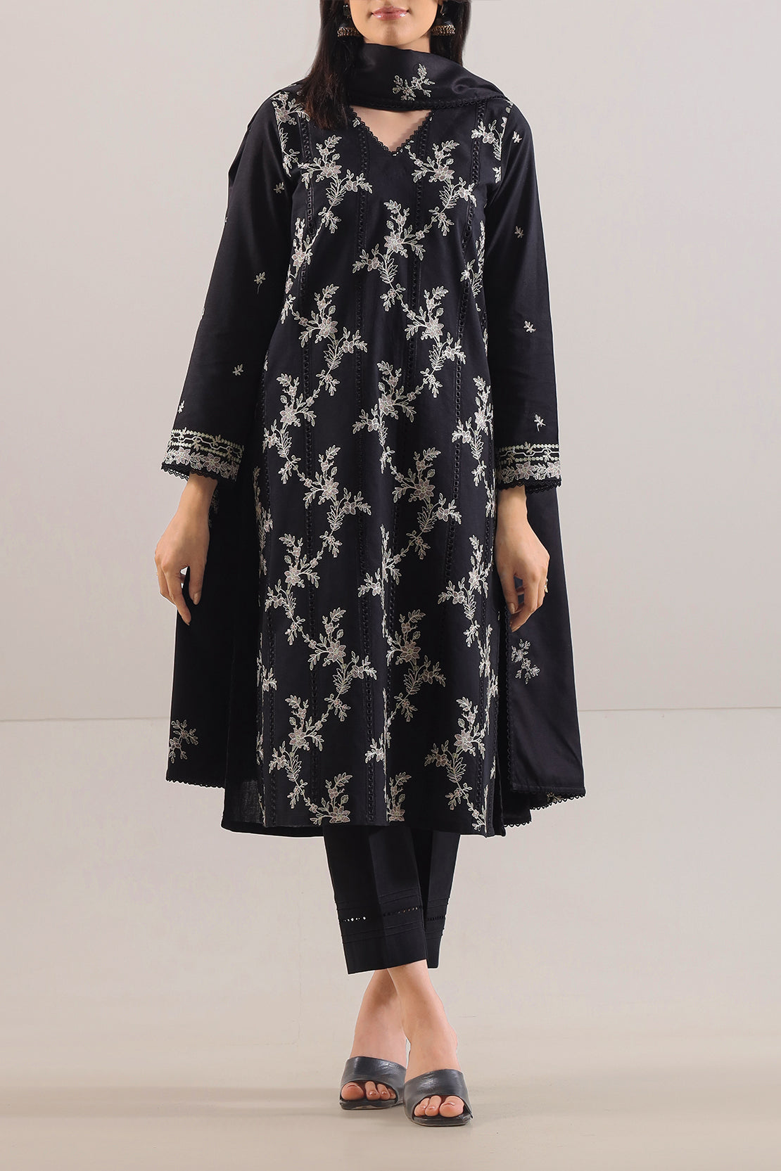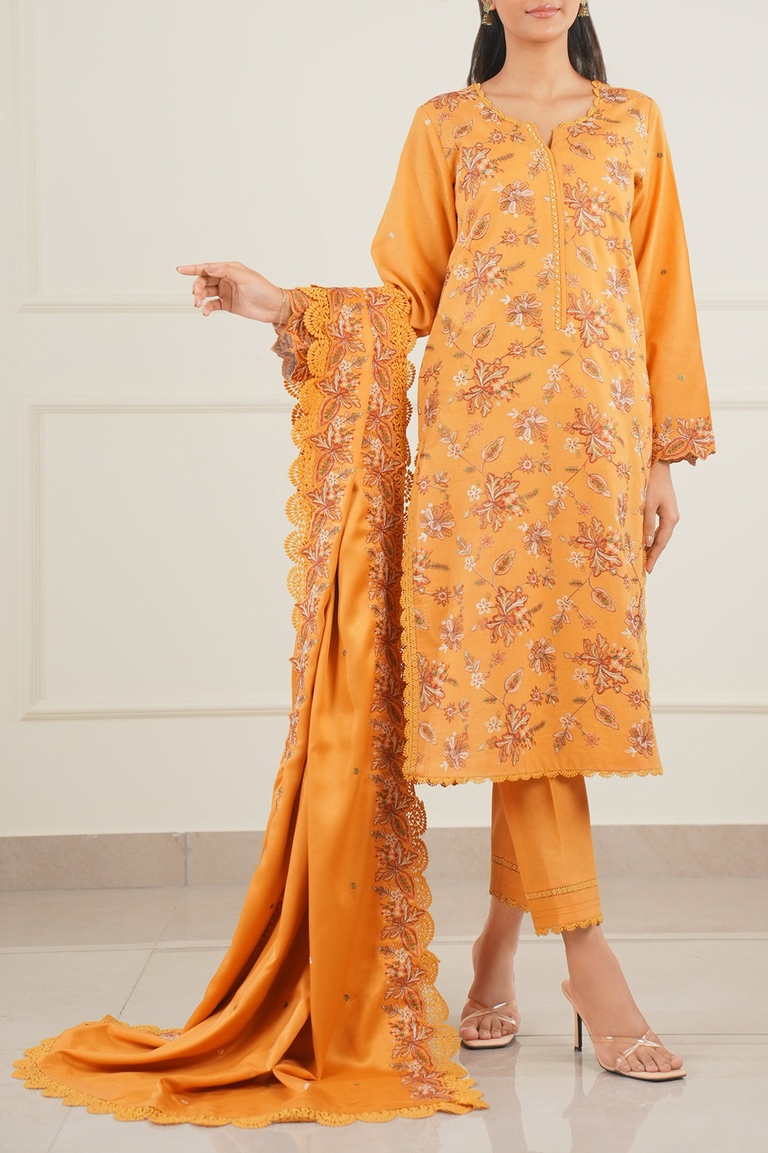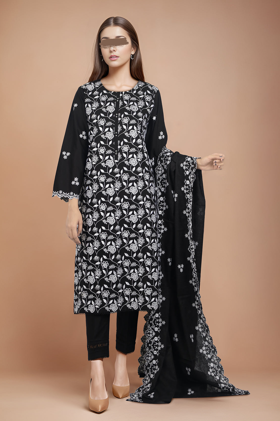 Unstitched Solid Embroidered Cotton Khaddar 3 Piece