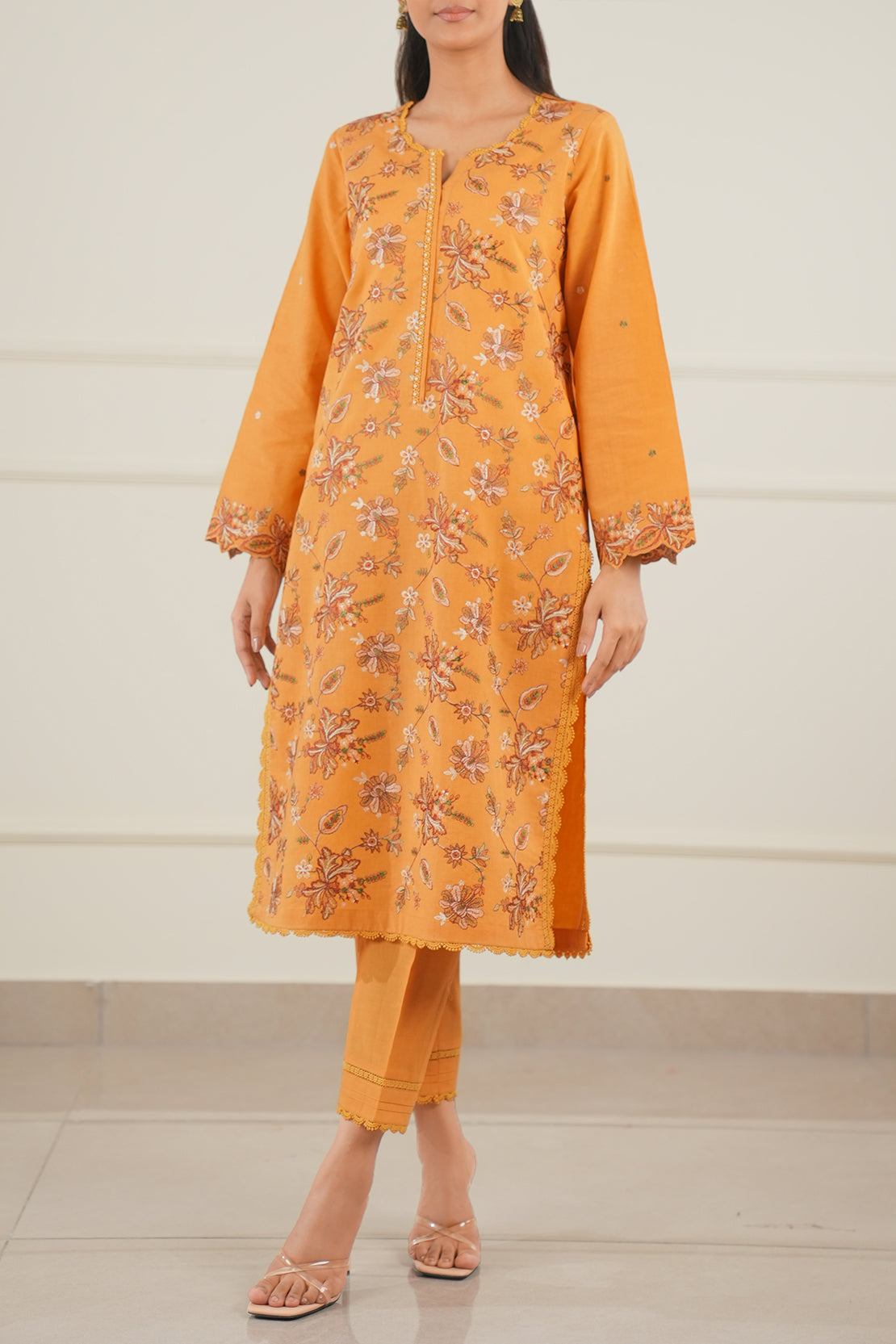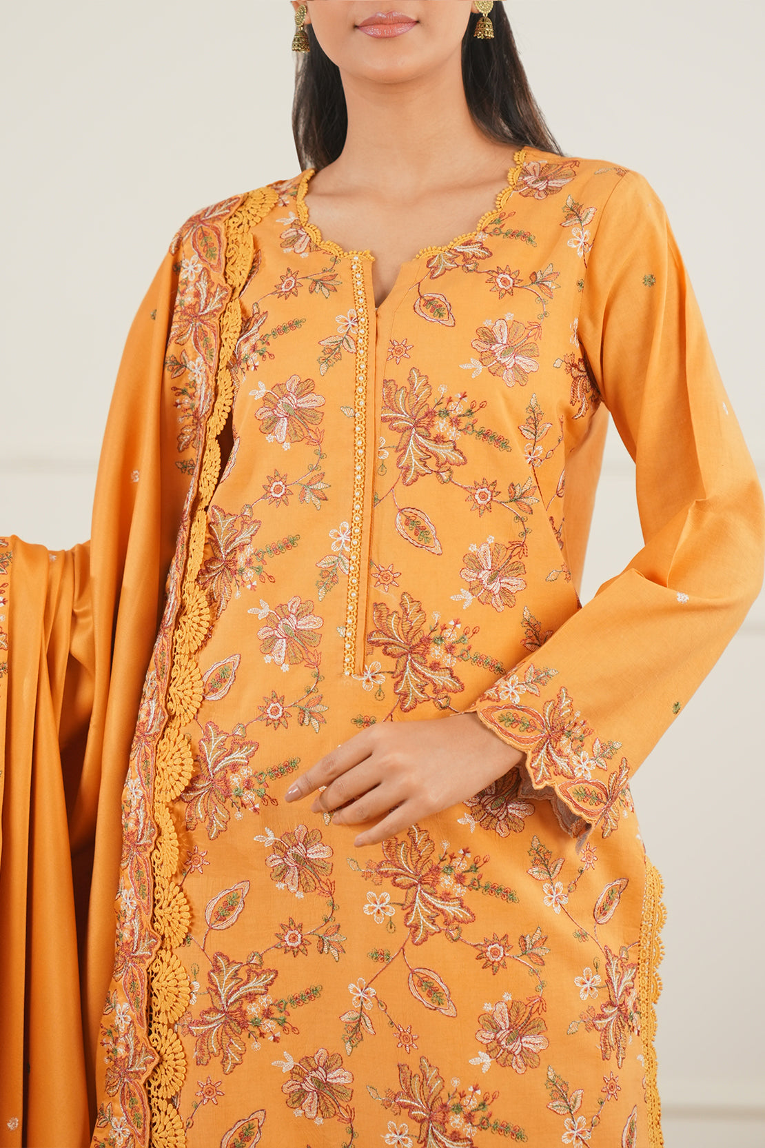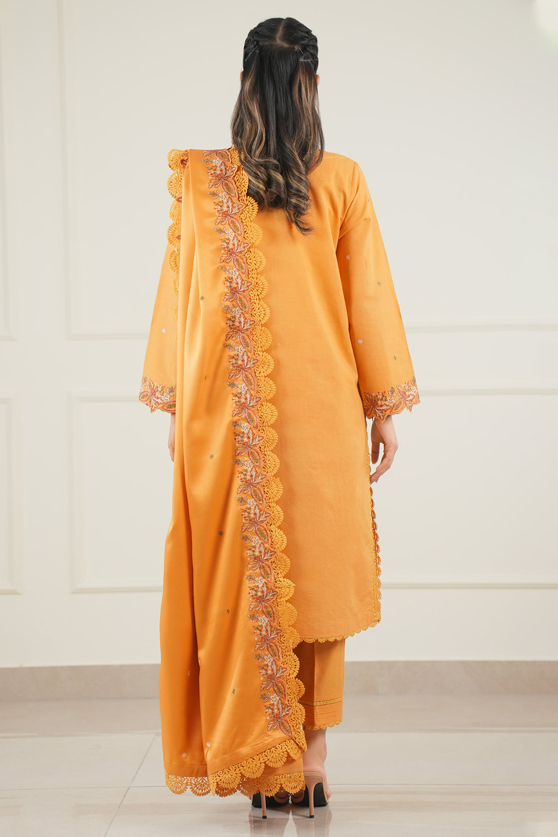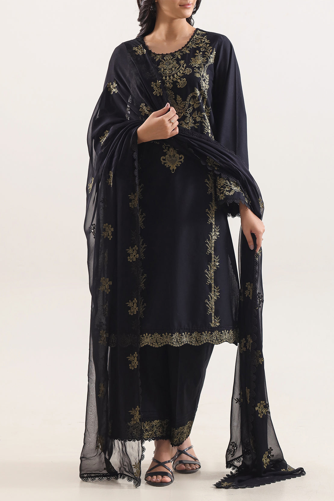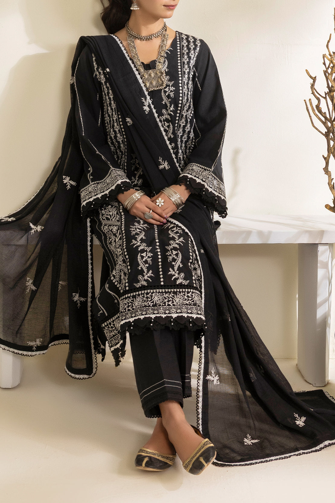 Unstitched Solid Embroidered Cotton Khaddar 3 Piece