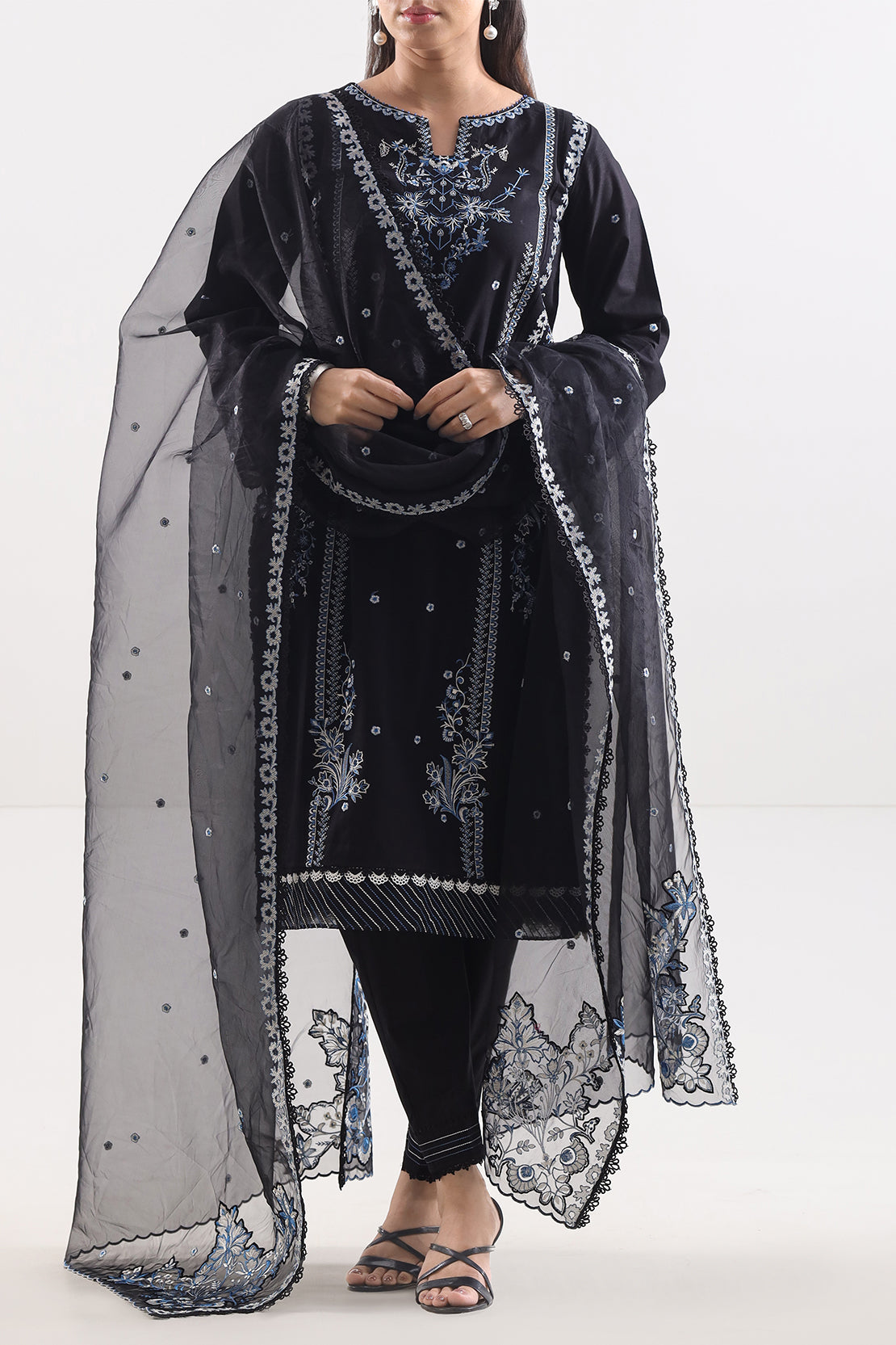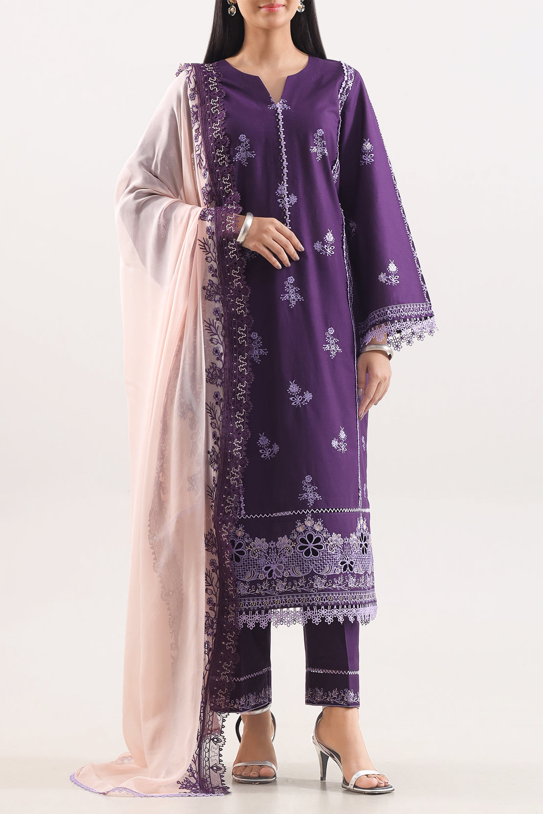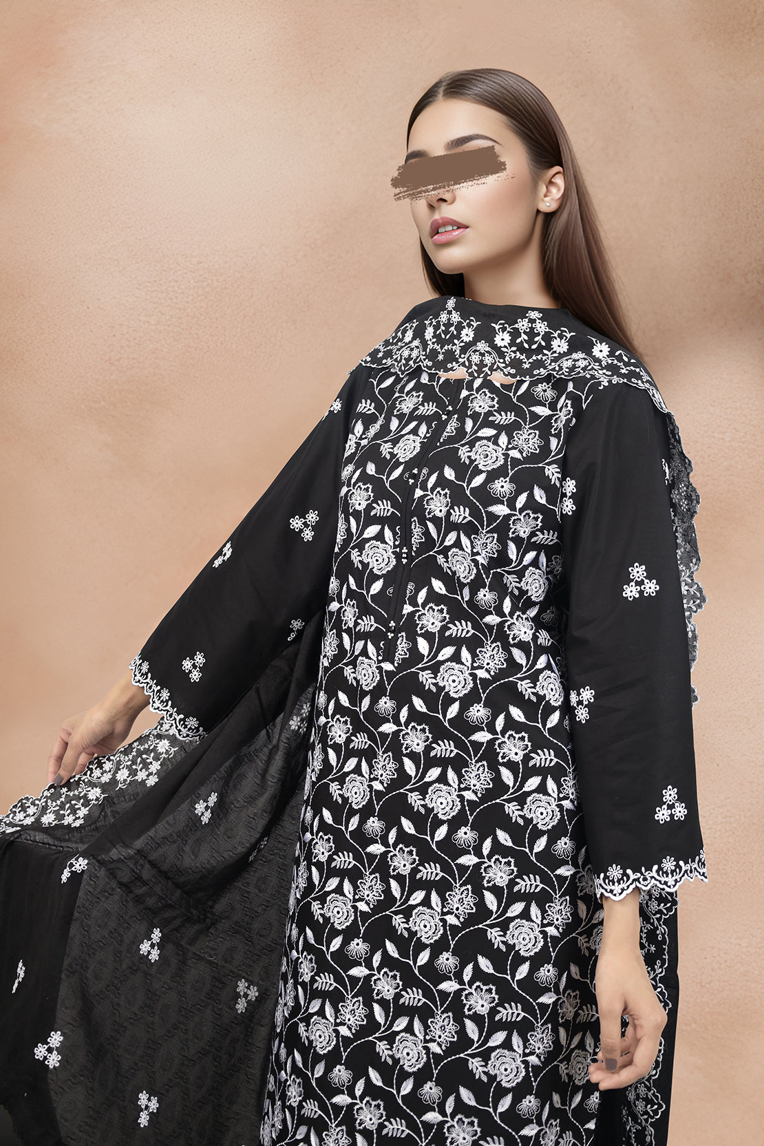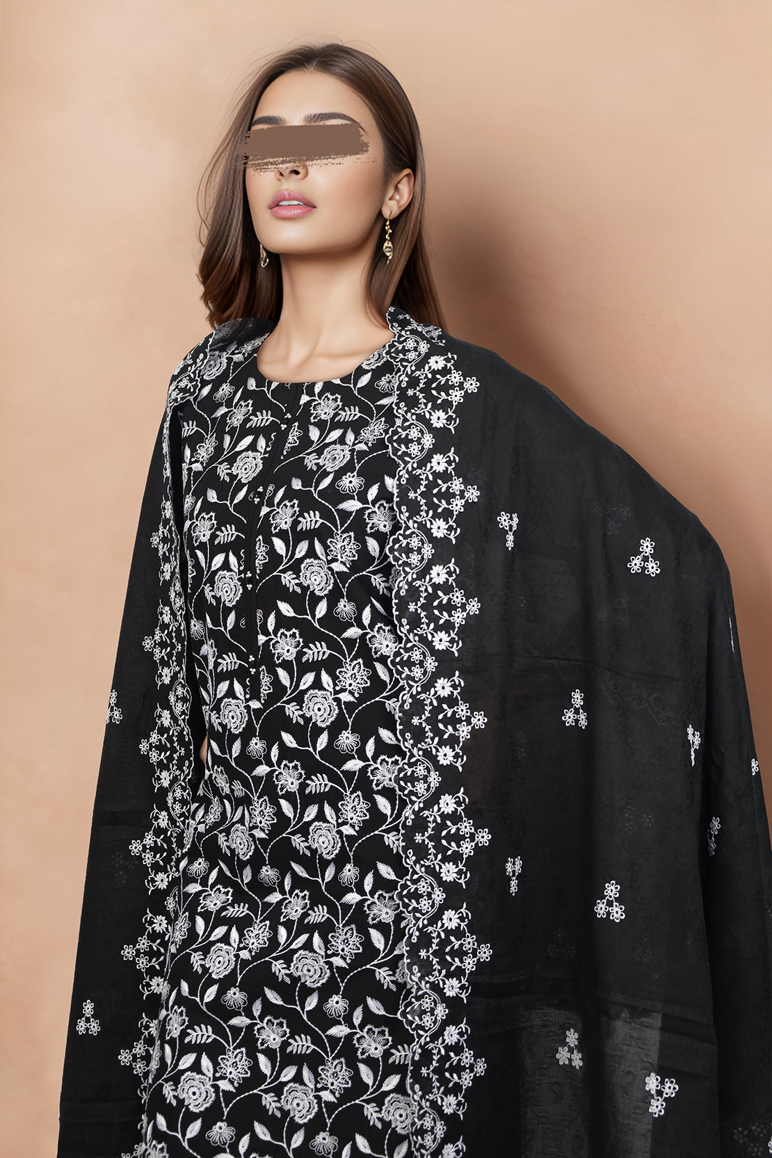 Unstitched Solid Embroidered Cambric 3 Piece With (Chiffon Dupatta)