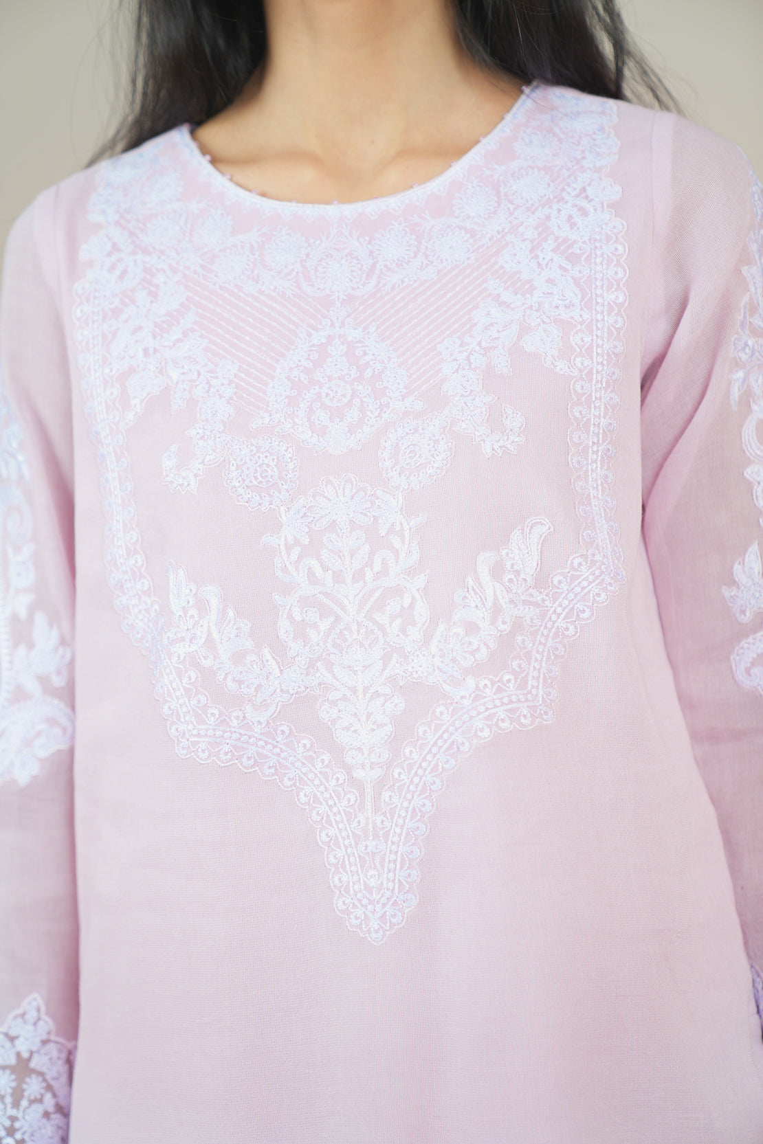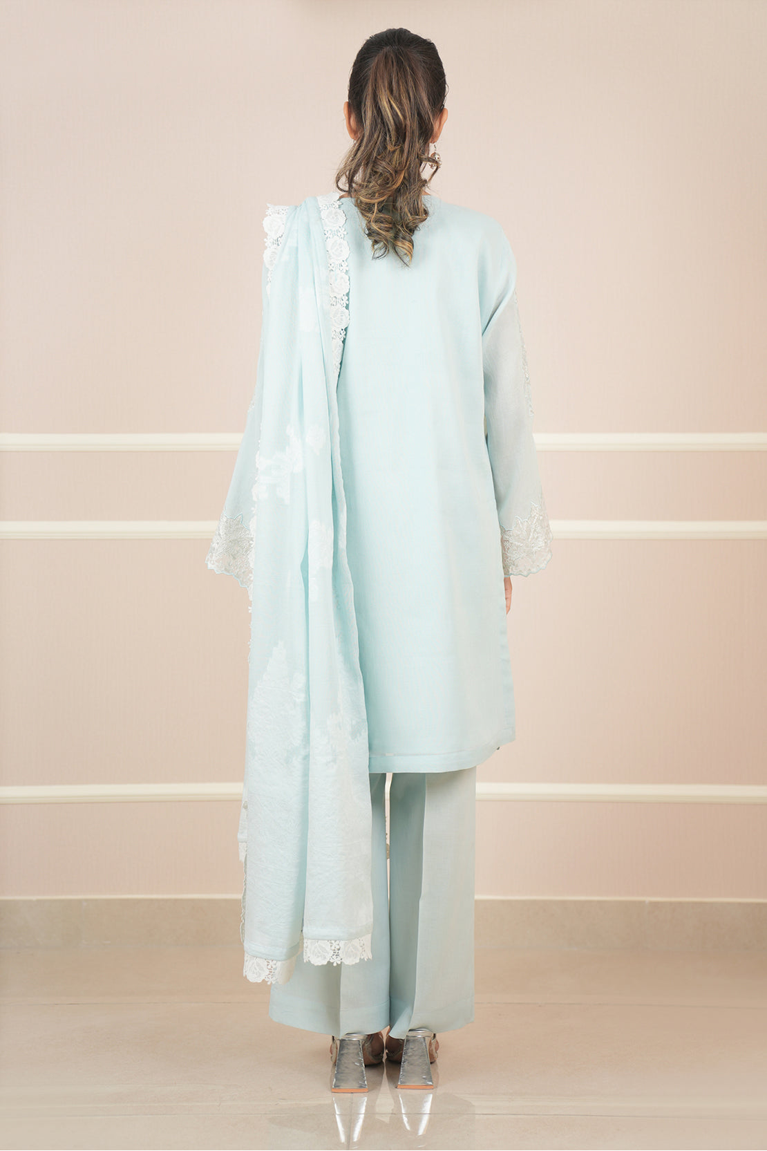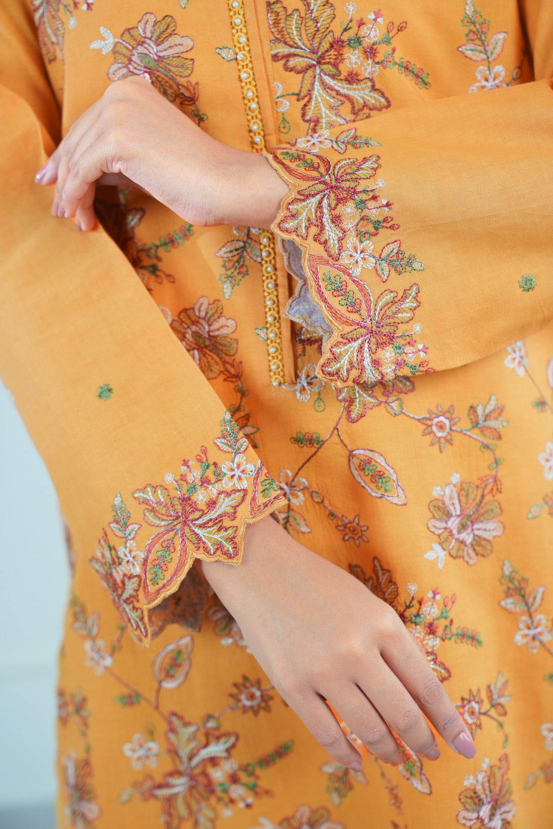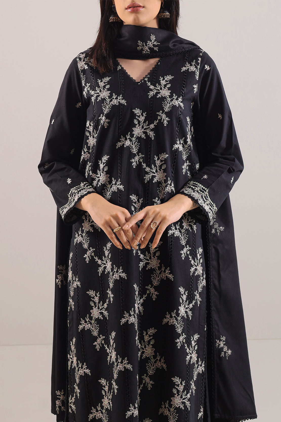 Unstitched Solid Embroidered Cambric 3 Piece With (Chiffon Dupatta)