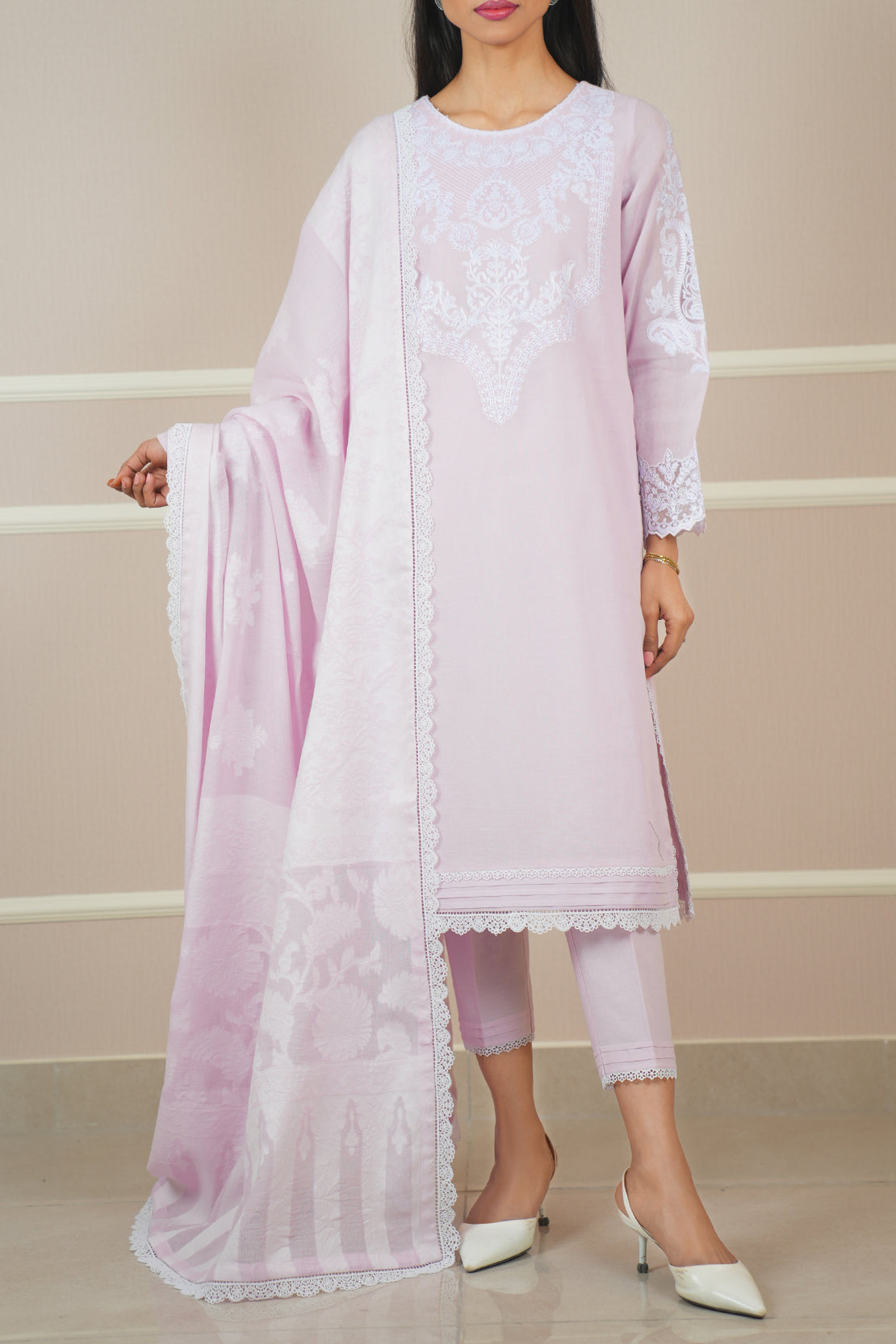 Unstitched Solid Embroidered Self Jacquard 3 Piece