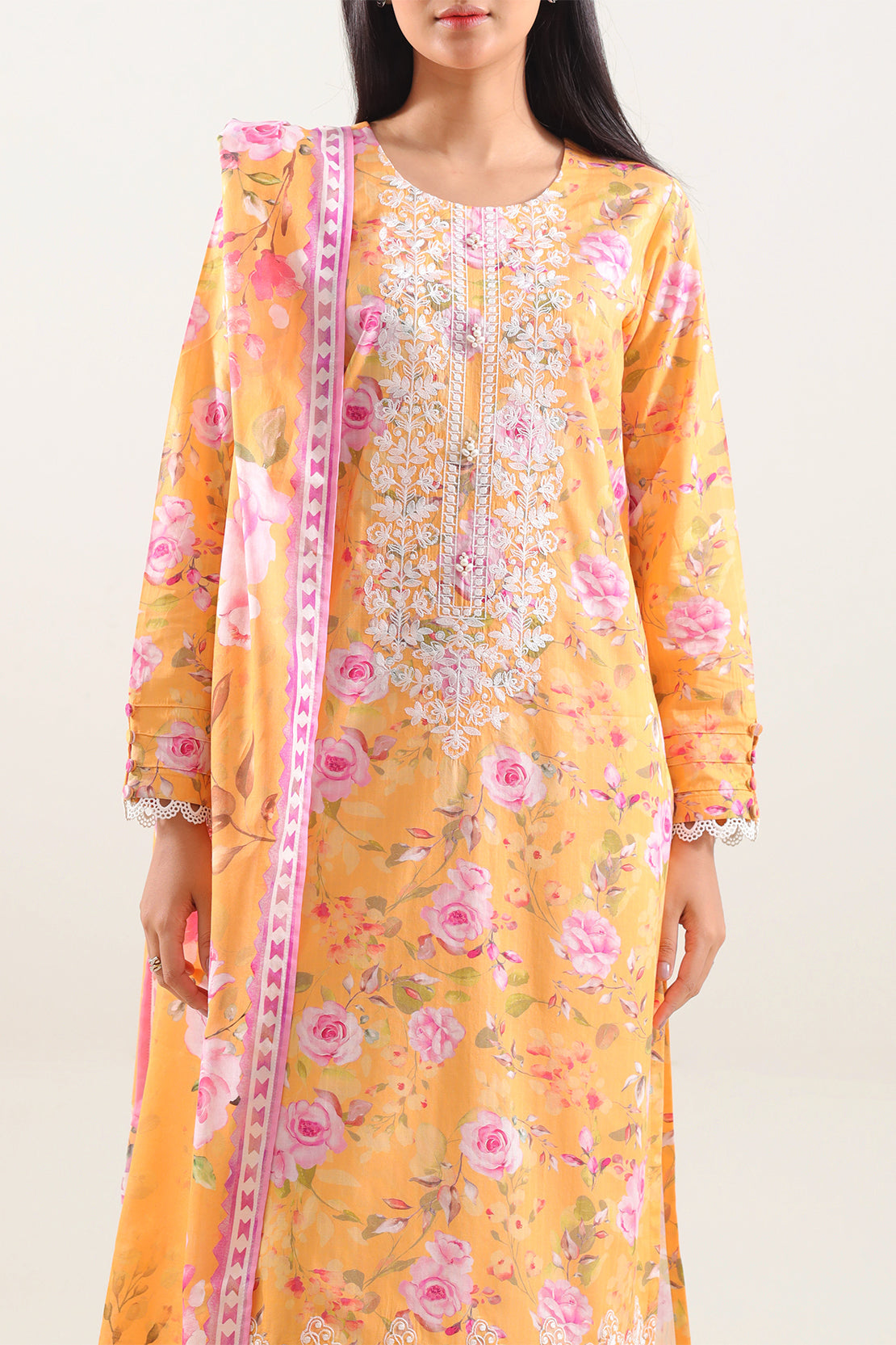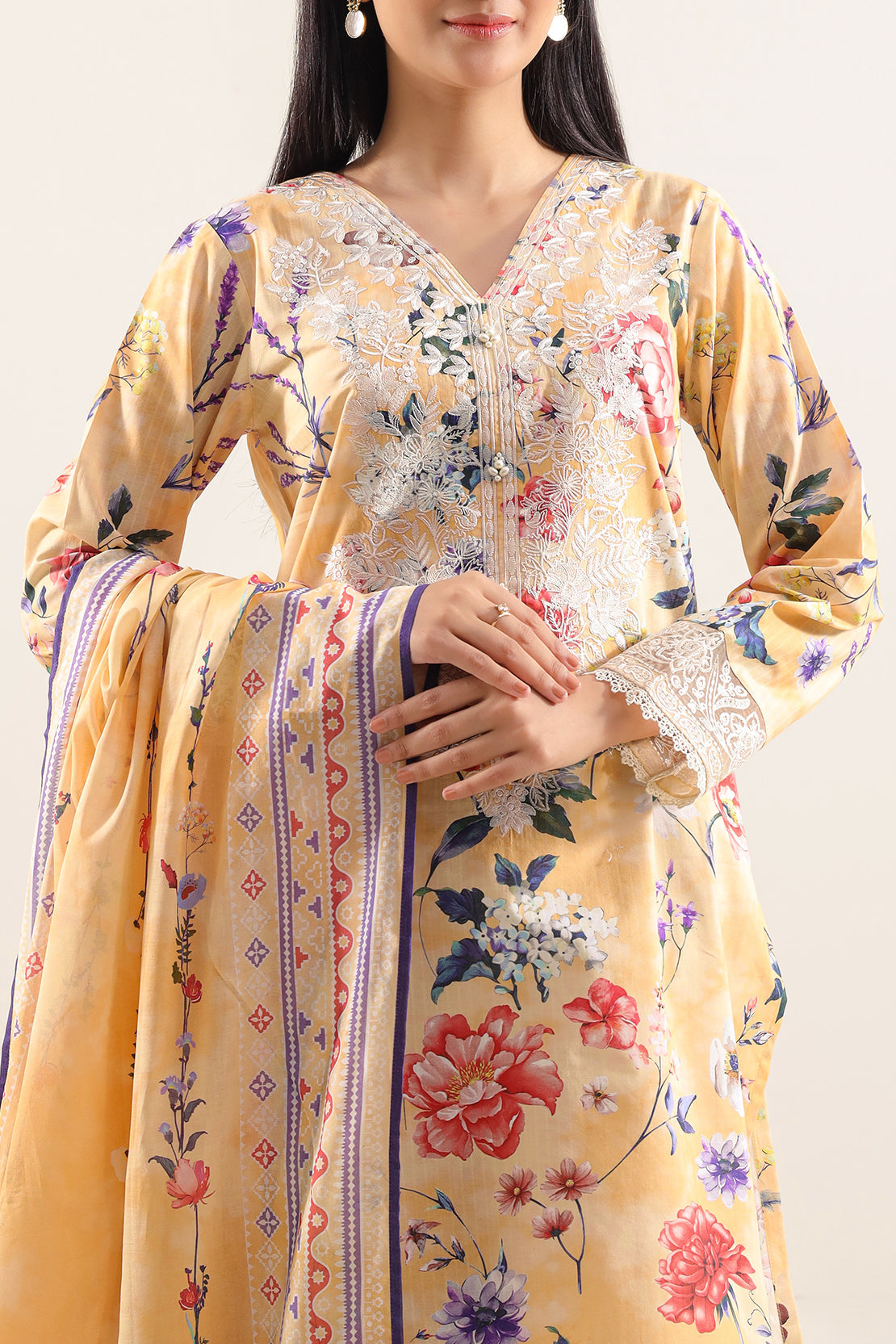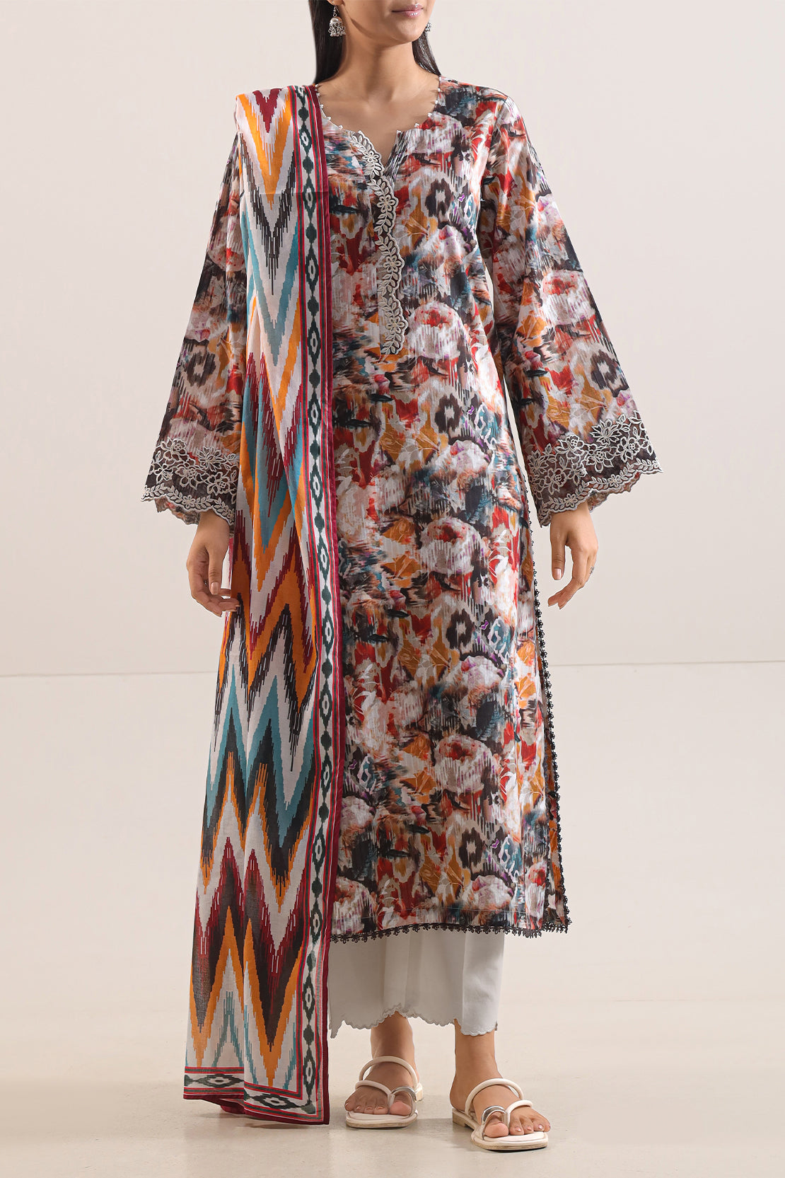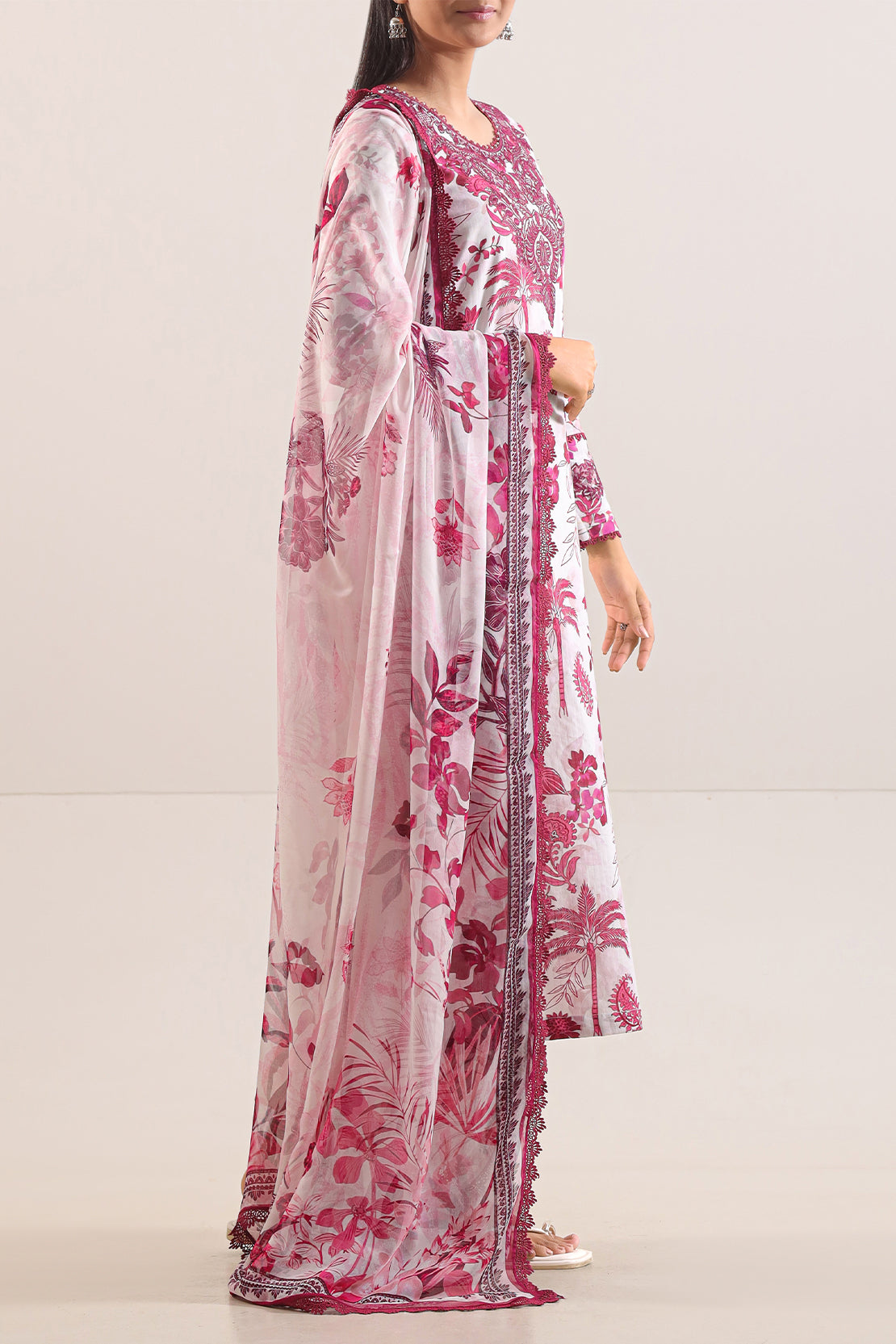 Unstitched Printed Embroidered Cotton Tencel 3 Piece With Chiffon Dupatta