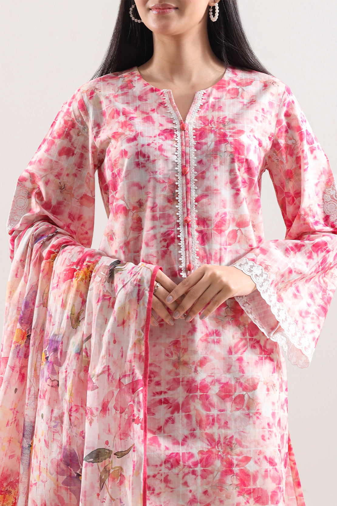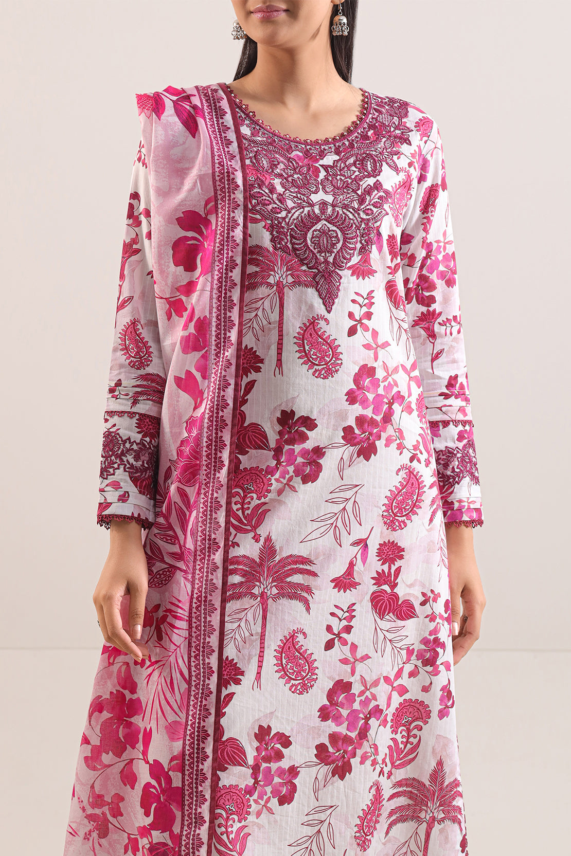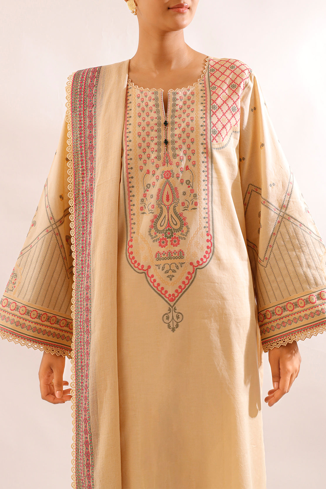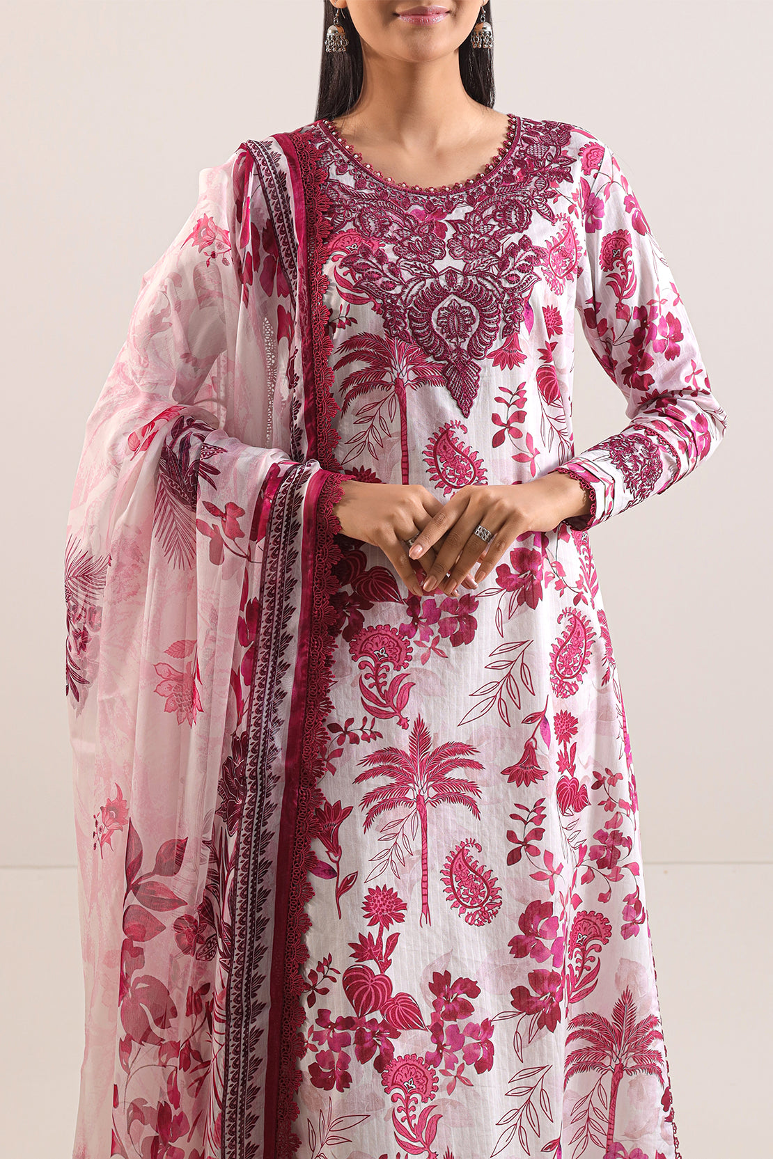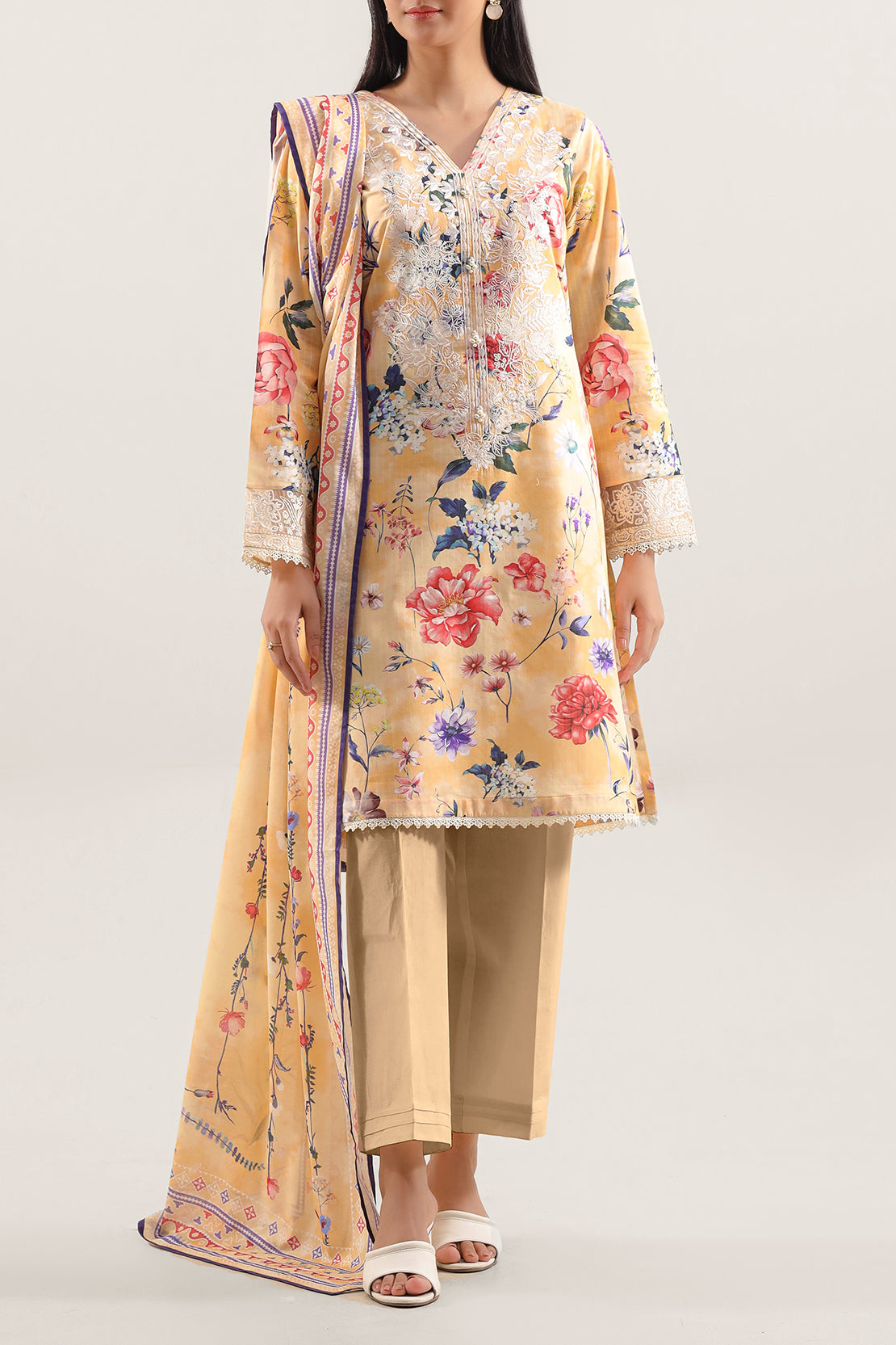 Unstitched Printed Embroidered Cotton Tencel 3 Piece With Chiffon Dupatta