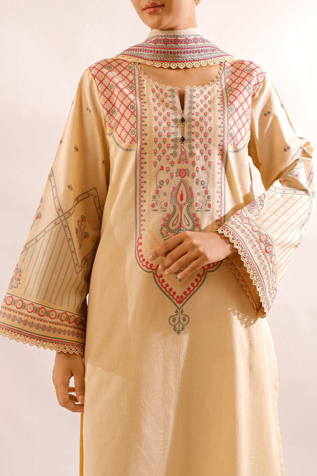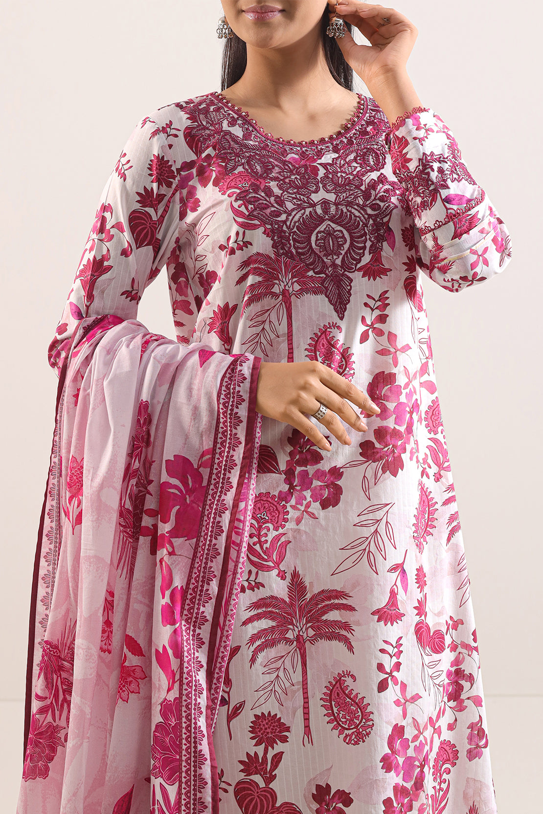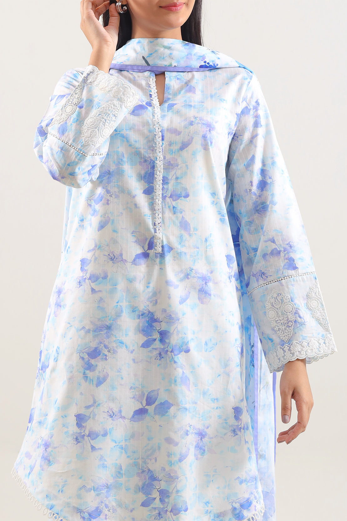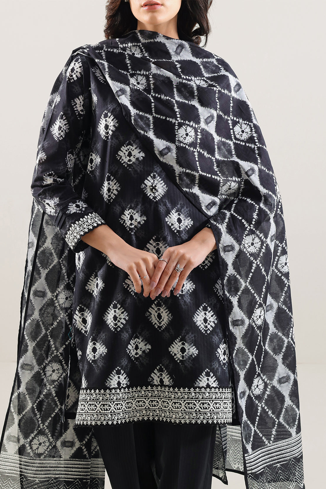 Unstitched Printed Embroidered Cotton Tencel 3 Piece With Chiffon Dupatta