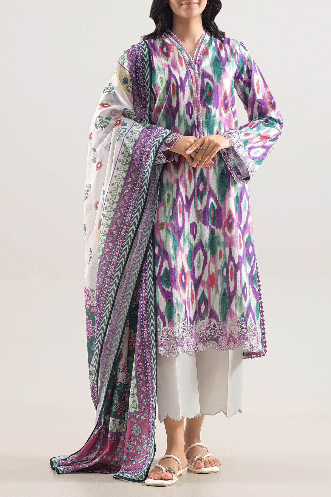 Printed Embroidered Strip Lawn Un-Stitched 3-Piece