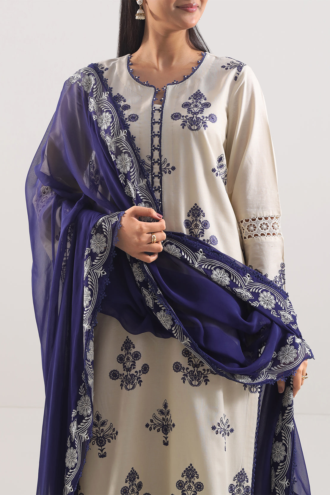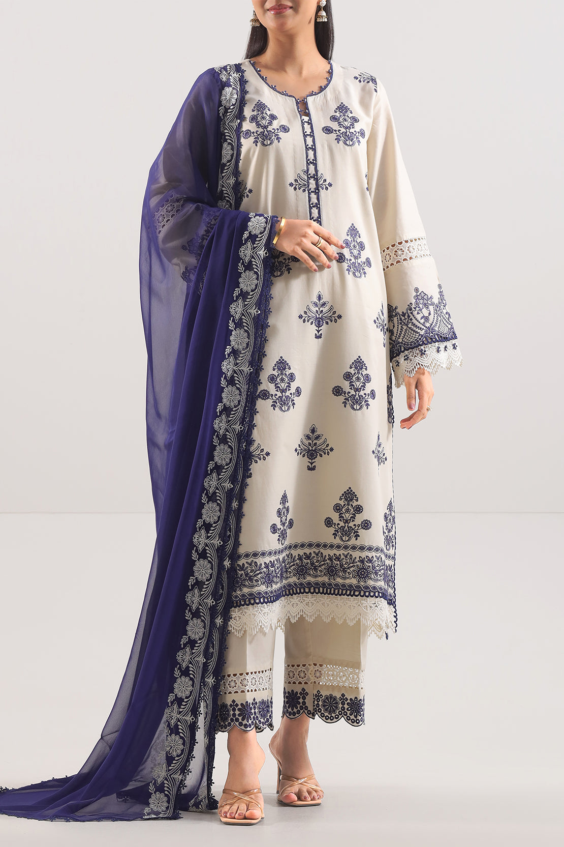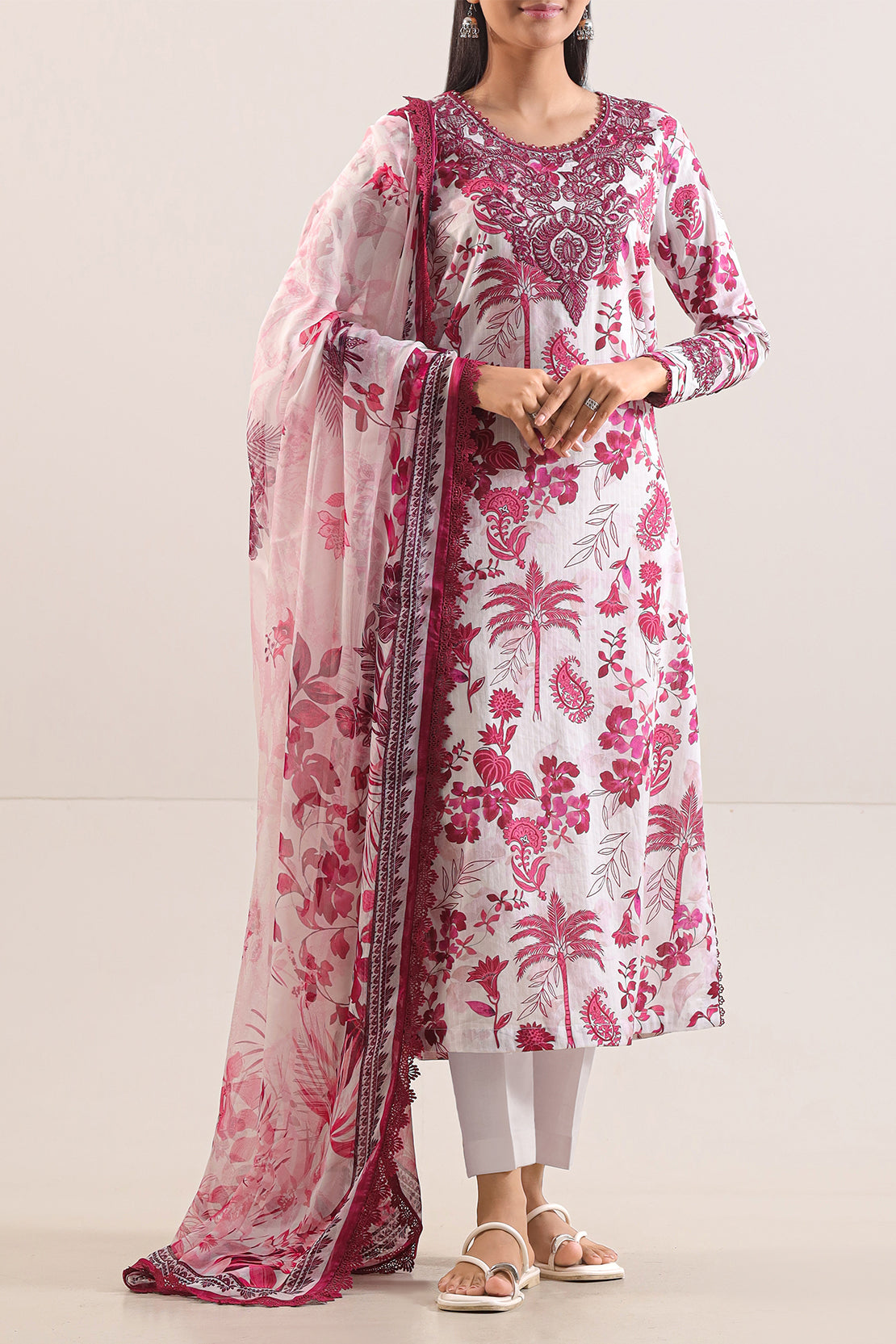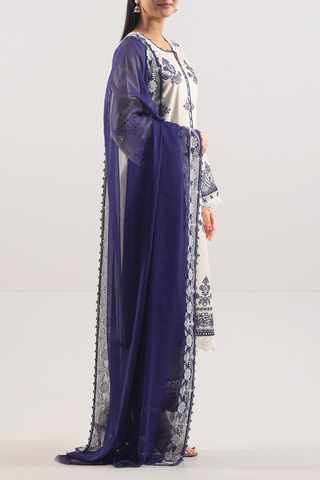 Unstitched Embroidered Cambric 3 Piece With Chiffon Dupatta