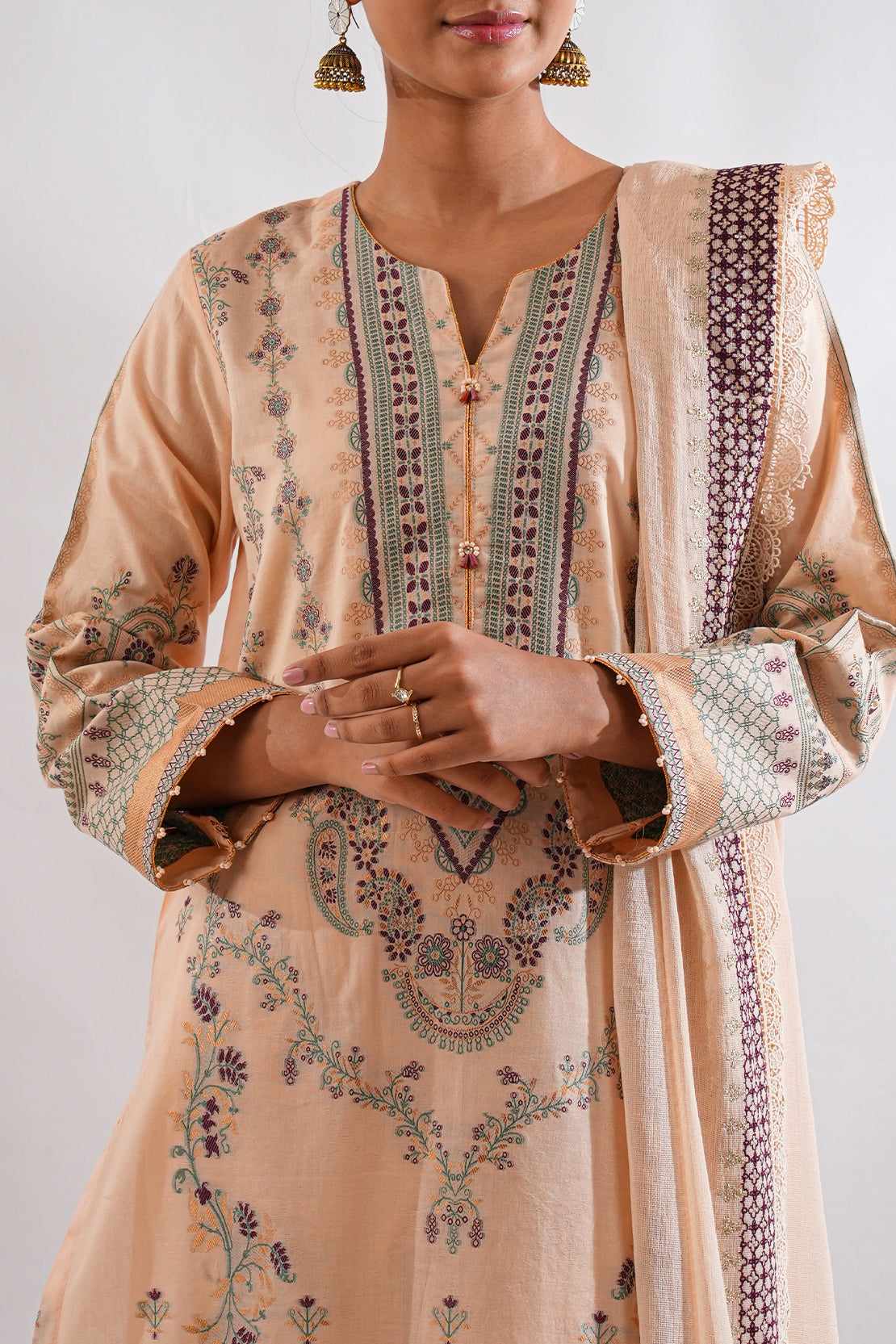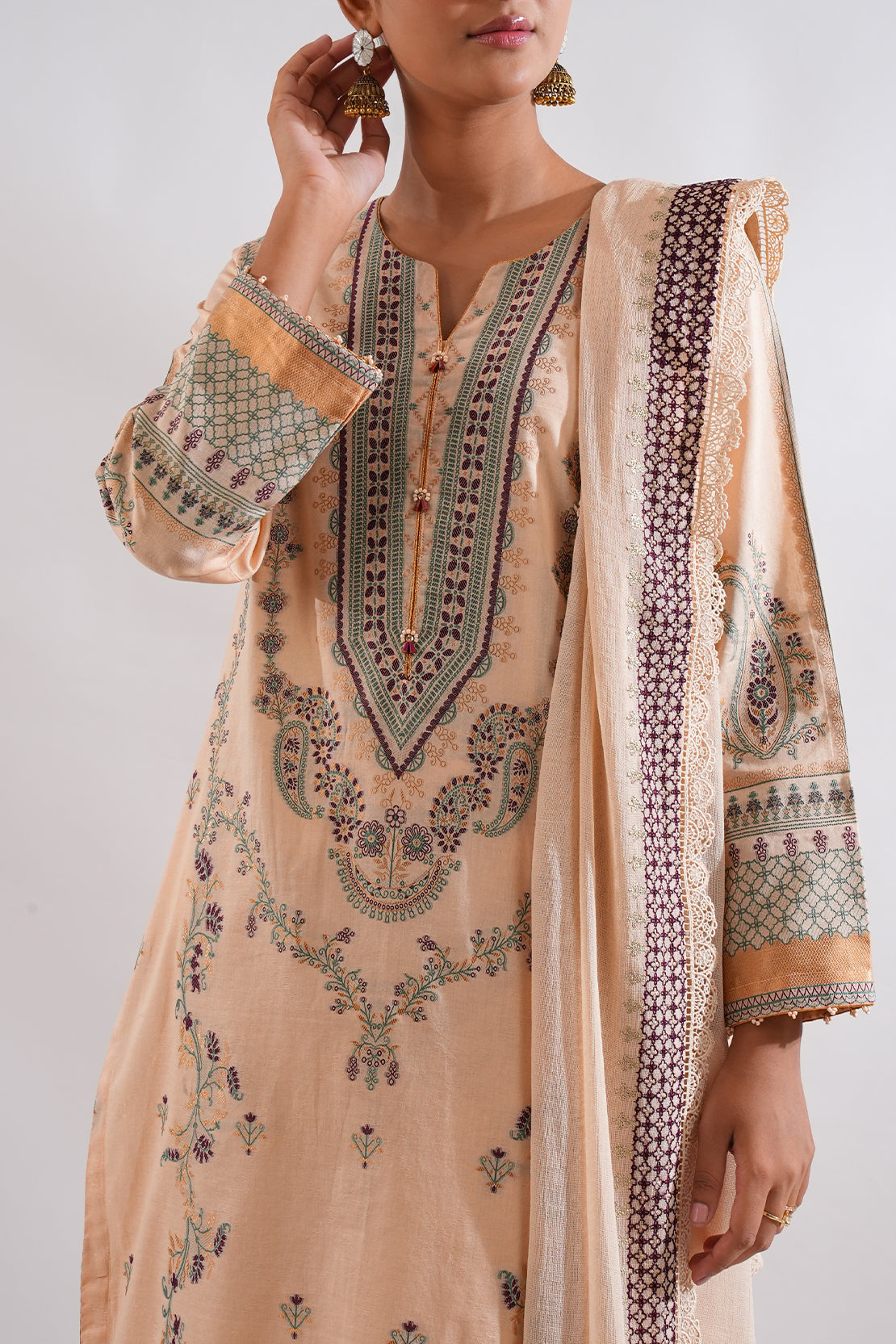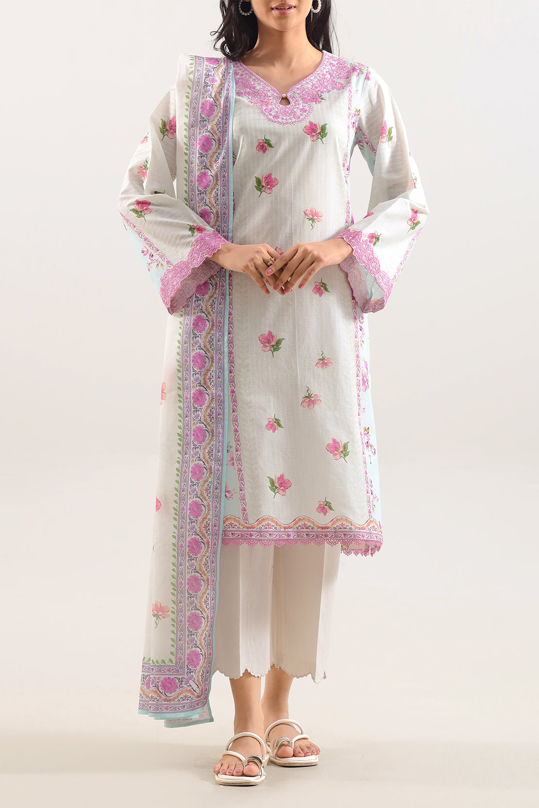 Unstitched Embroidered Jacquard Cotton 3 Piece