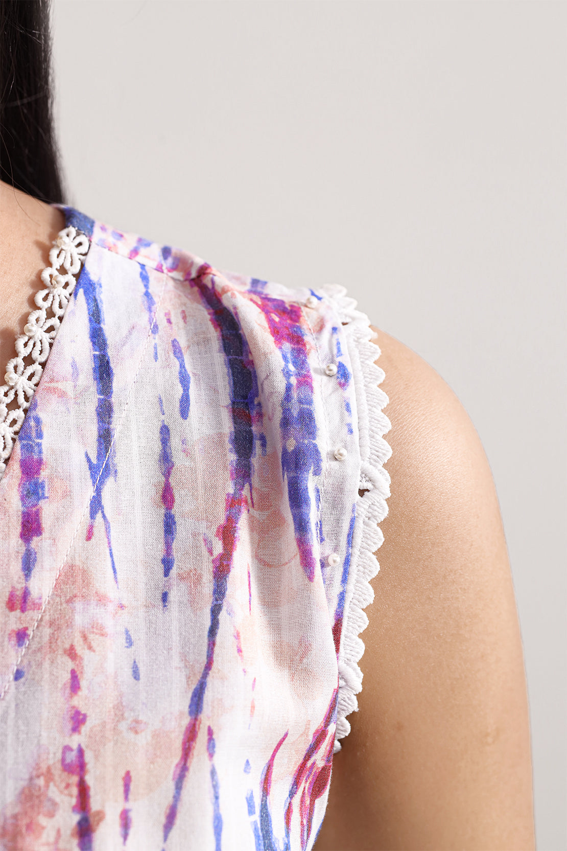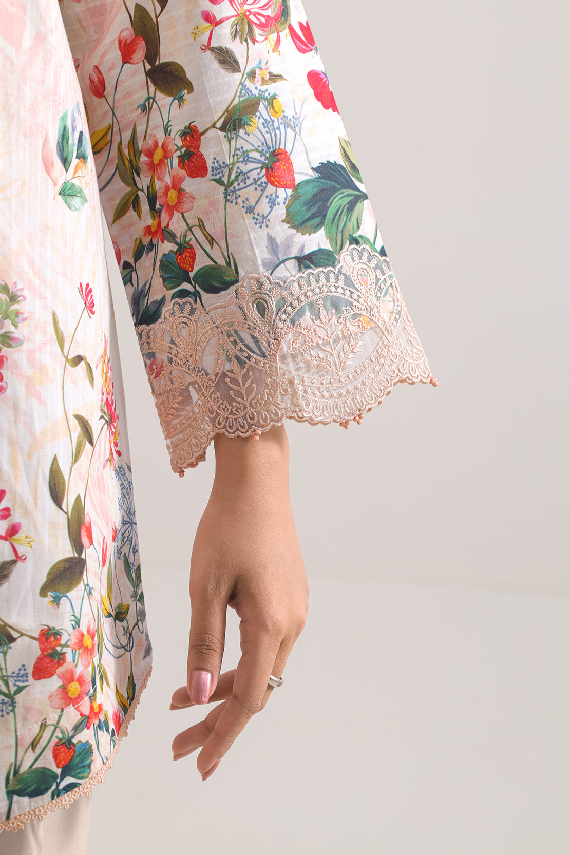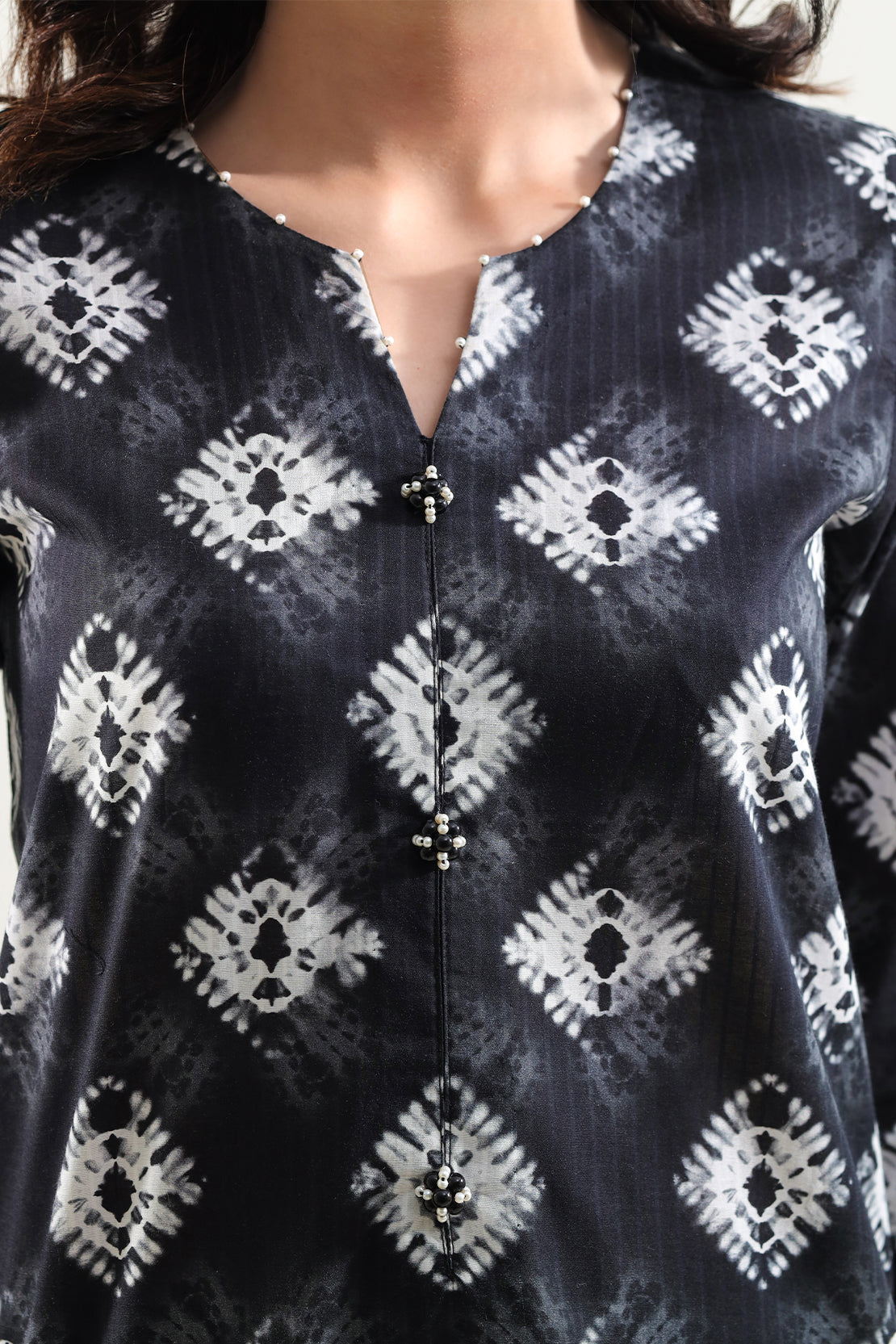 Unstitched Printed Embroidered Strip Lawn 3 Piece