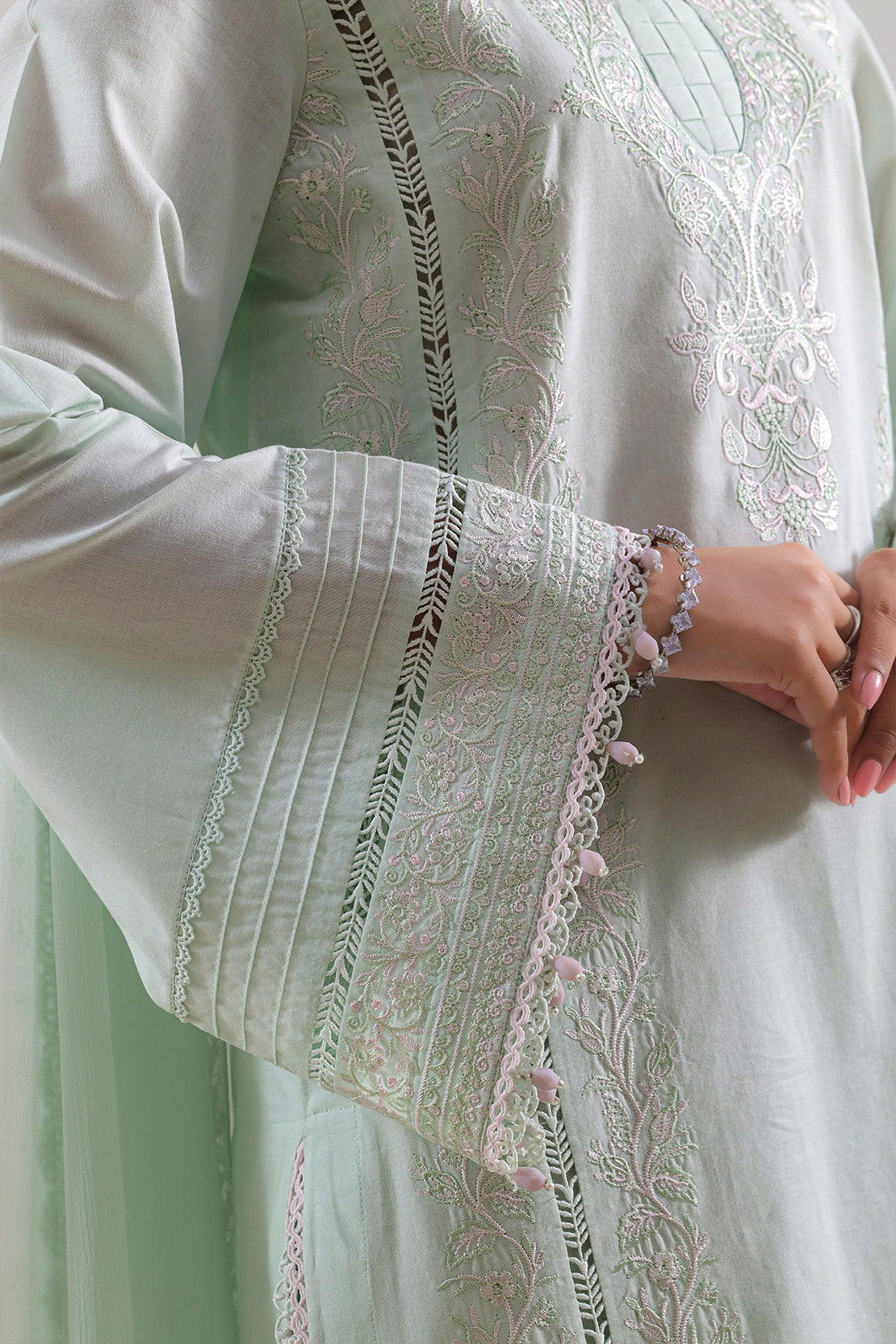 Unstitched Solid Embroidered Cambric 3 Piece With Chiffon Dupatta