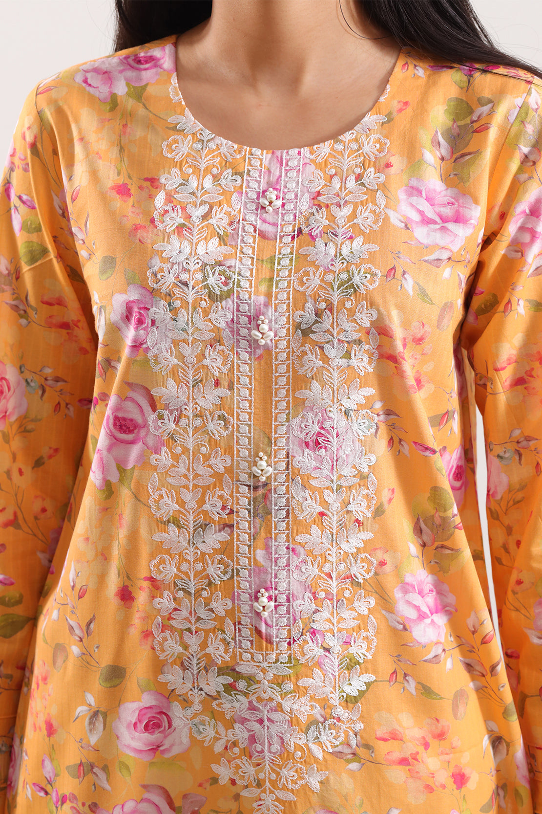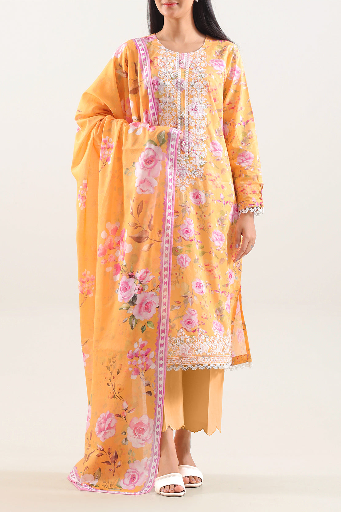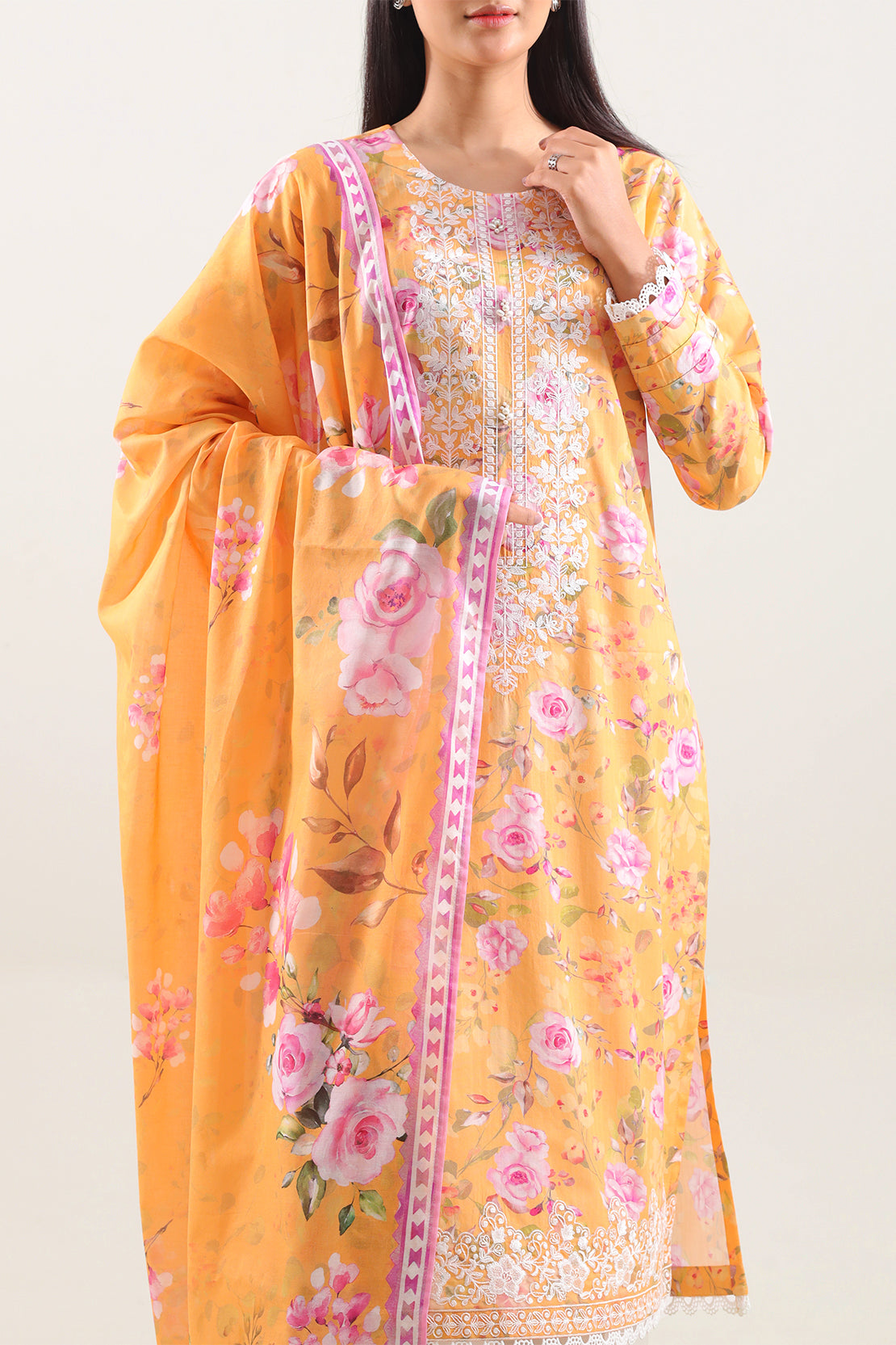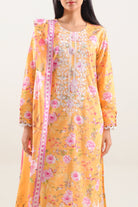 Refresh Your Wardrobe With SAYA’s Printed Embroidered Strip Lawn Stitched 3-Piece Set In Yellow, Crafted From Premium Lawn Fabric That Promises Feather-Light Breathability And All-Day Comfort. The Shirt Features An Elegant Printed Strip Pattern Combined With Delicate Embroidery On The Front Panel For A Sophisticated Yet Effortless Look. Paired With A Matching Printed Dupatta And Coordinated Dyed Trouser, This Ensemble Offers Ready-To-Wear Convenience With Tailored Appeal. The Bright Yellow Hue Adds A Cheerful, Vibrant Touch—Perfect For Daytime Events, Smart-Casual Gatherings, Or Seasonal Refreshes.
