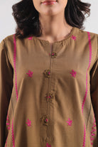 A Luxurious Unstitched Three-Piece Ensemble Crafted From Soft, Breathable Cambric With Intricate Embroidered Detail That Adds Refined Visual Depth. The Shirt Offers Tailored Flexibility For Personalized Fit, Paired With A Lightweight Chiffon Dupatta That Introduces Airy Movement And Refined Texture, Alongside A Dyed Cambric Trouser For Structured Wearability. This SAYA Set Balances Personalized Styling, Fine Craftsmanship, And Elegant Comfort—Perfect For Festive Styling, Sophisticated Daywear, Or Curated Evening Ensembles.