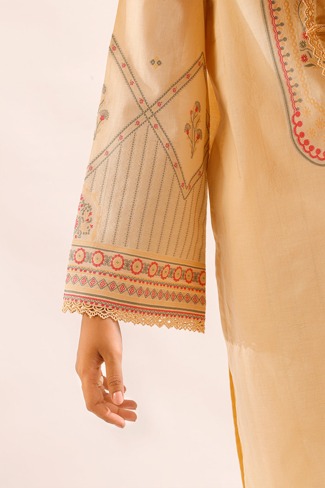Timeless Elegance Meets Personalized Charm in This SAYA Unstitched Embroidered Cotton Jacquard 3‑Piece Set. The Premium Cotton Jacquard Shirt Fabric Features Intricate Tone‑On‑Tone Embroidery and Rich Texture, Offering Soft Draping and Tailoring Freedom. Accompanied by Matching Dupatta Fabric and Dyed Trouser Material, it delivers a cohesive, breathable look. Ideal for festive events, casual gatherings, or tailored everyday wear with refined grace and comfort.