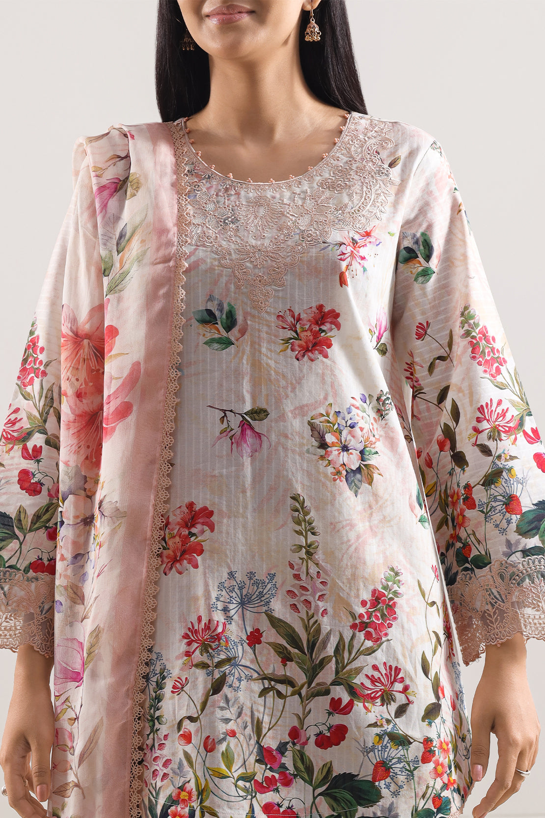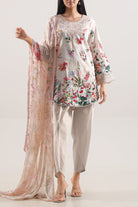 Unstitched Printed Embroidered Cotton Tencel 3 Piece With Chiffon Dupatta
