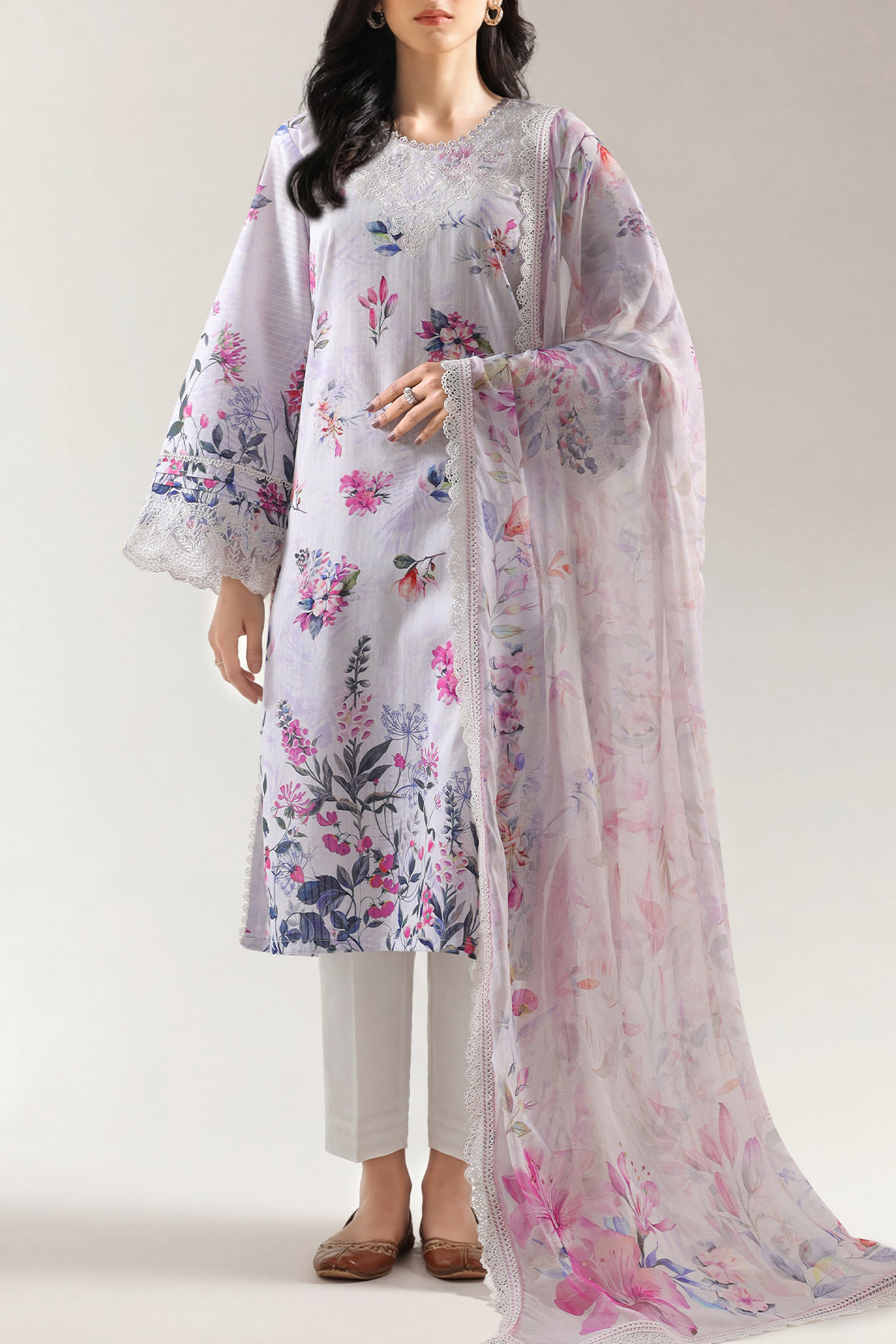 Unstitched Printed Embroidered Cotton Tencel 3 Piece