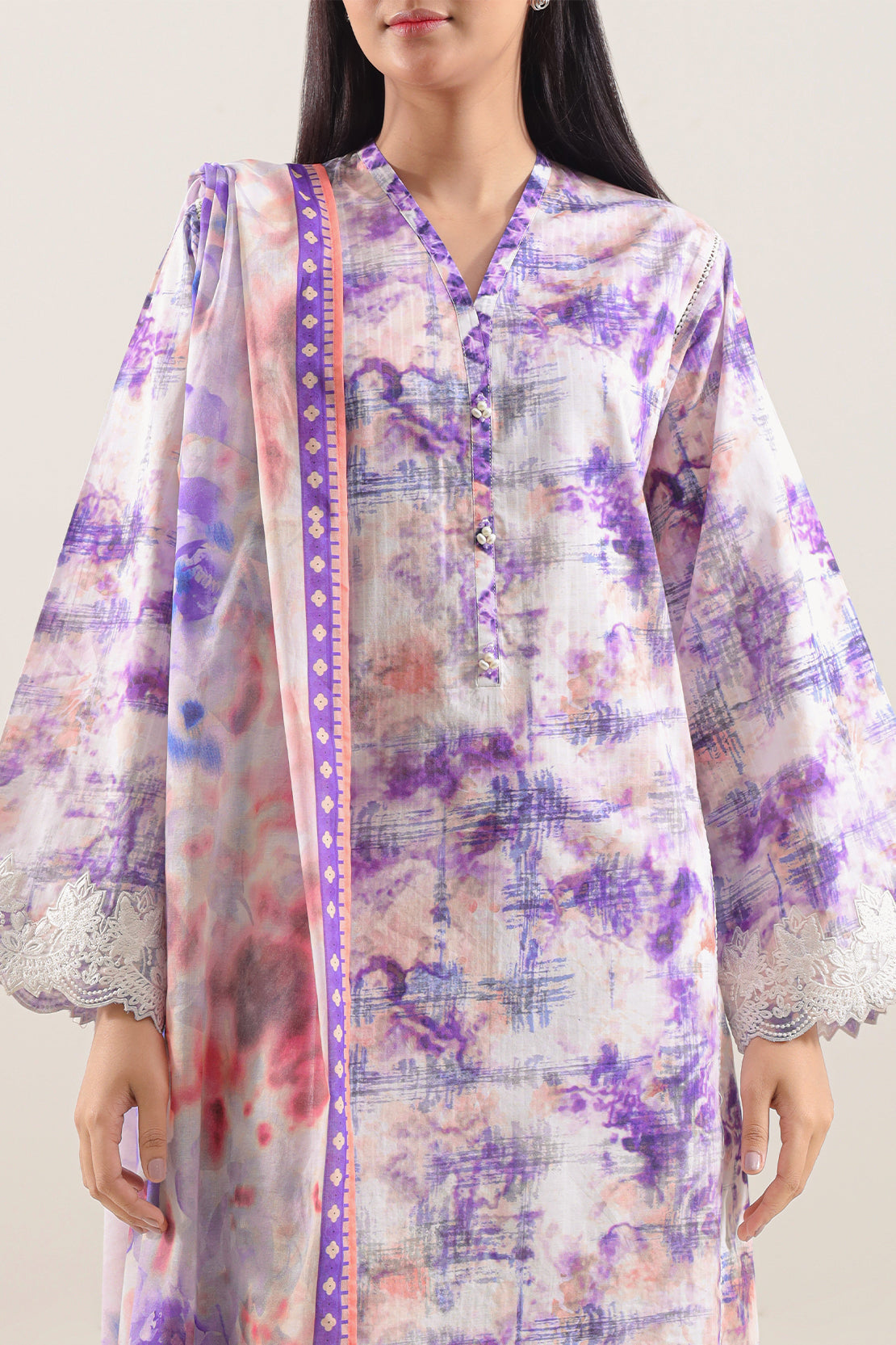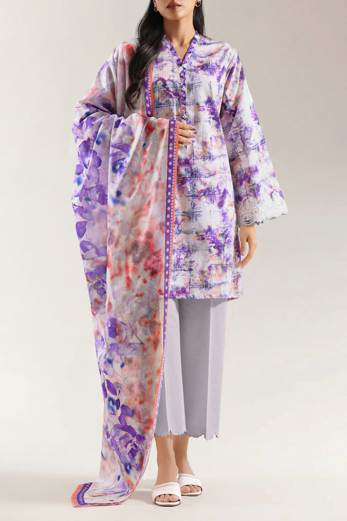Majestic And Elegant, This SAYA Unstitched Printed Embroidered Lawn 3-Piece In Purple Provides A Luxurious Canvas For Custom Couture. Crafted From Premium Lawn Fabric, It Offers Exceptional Breathability And A Feather-Light Drape. The Intricate Embroidery Accents The Printed Design With Delicate Detail, Adding Texture Without Overwhelming The Hue. This Ensemble Includes Shirt, Trouser And Dupatta In Unstitched Form, Giving You Freedom To Tailor Every Piece To Perfection. Ideal For Daytime Festivities, Wedding Events Or Grand Celebrations, It Blends Comfort, Grace And Creative Flexibility.
