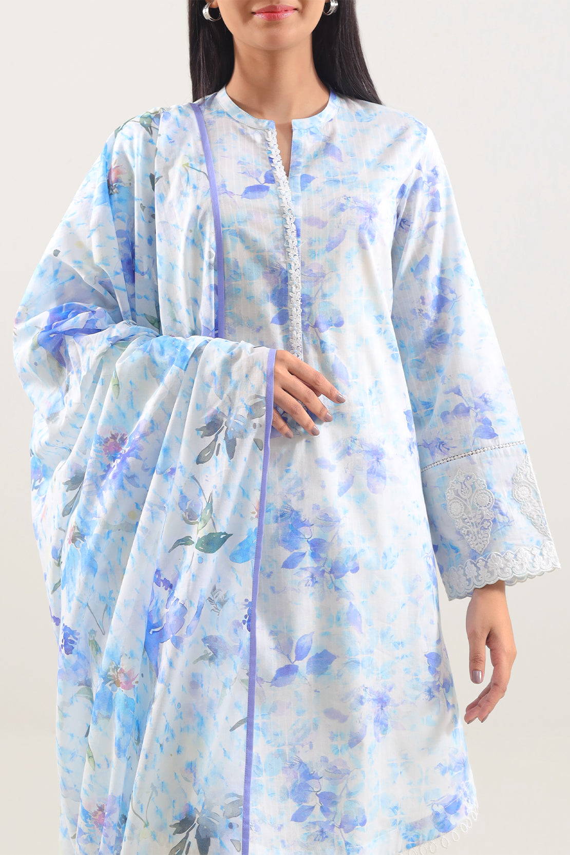 Elevate Your Wardrobe With The Unstitched Printed Embroidered Lawn 3-Piece Set From SAYA. Designed With Premium Lawn Fabric And A Contemporary Printed Pattern, This Set Features A Generously Cut Shirt Panel With Elegant Embroidered Sleeves Border On Organza, A Matching Printed Lawn Dupatta And A Dyed Cambric Trouser Piece. Ideal For Daytime Gatherings, Casual Soirées Or Warm-Weather Events, It Seamlessly Blends Fabric Quality, Refined Design, Utility And Fashion-Forward Appeal.