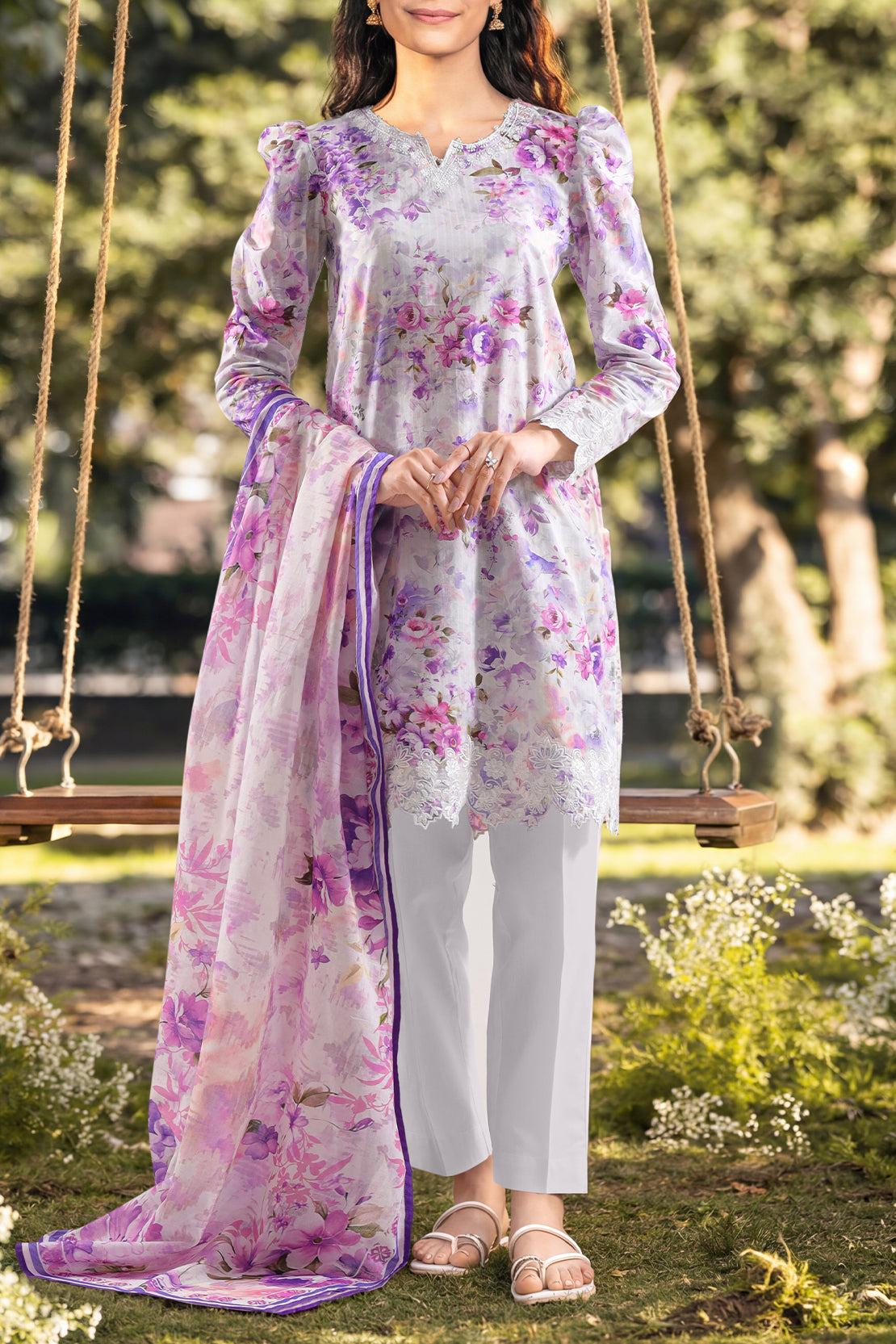 Elevate Your Summer Wardrobe With The Unstitched Printed Embroidered Strip Lawn 3-Piece Set From SAYA. Crafted From Feather-Light Lawn Fabric With A Sophisticated Vertical Stripe Print And Delicate Embroidered Detailing On The Shirt Panel, This Tailoring-Ready Ensemble Includes A Matching Printed Dupatta And A Dyed Trouser Piece. Ideal For Daytime Gatherings, Casual Soirées Or Relaxed Warm-Weather Elegance, It Seamlessly Blends Fabric Quality, Artistic Pattern, Utility And Fashion.
