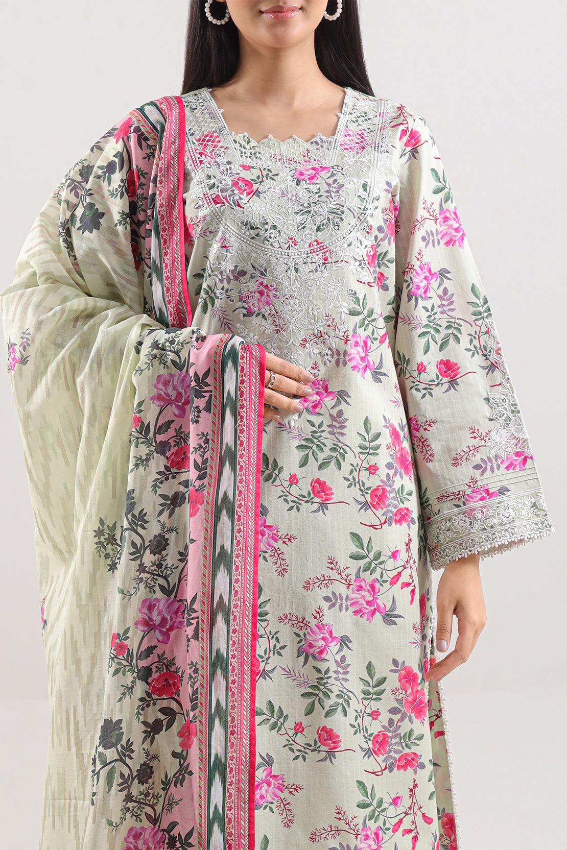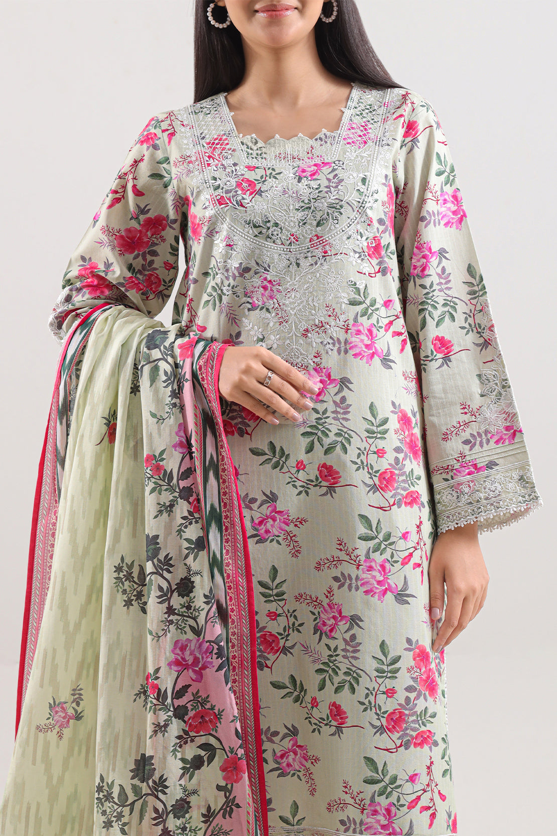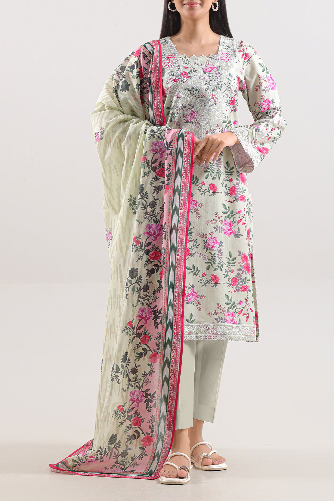 Unstitched Printed Embroidered Strip Lawn 3 Piece