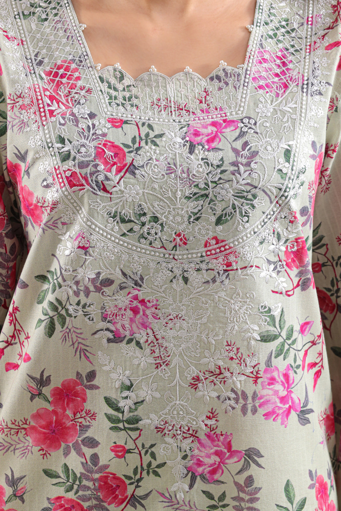 SAYA Unstitched Printed Embroidered Strip Lawn 3-Piece Combines Ultra-Light Lawn Fabric With Sophisticated Striped Print And Delicate Embroidery On The Shirt Panel, Paired With Matching Dupatta And Complementary Trouser Panel. With Tailoring Flexibility, Breathable Comfort, And Elegant Appeal, It Suits Daytime Events, Festive Wear, Or Seasonal Styling.