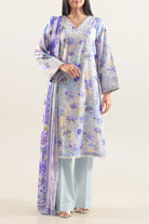 Unstitched Printed Embroidered Strip Lawn 3 Piece