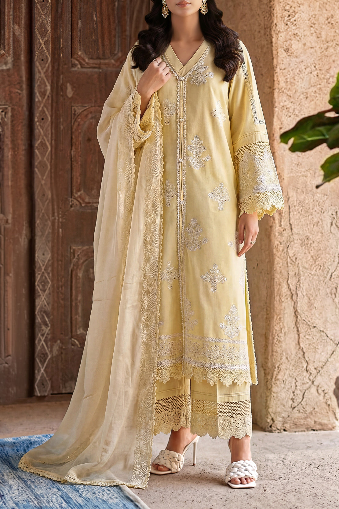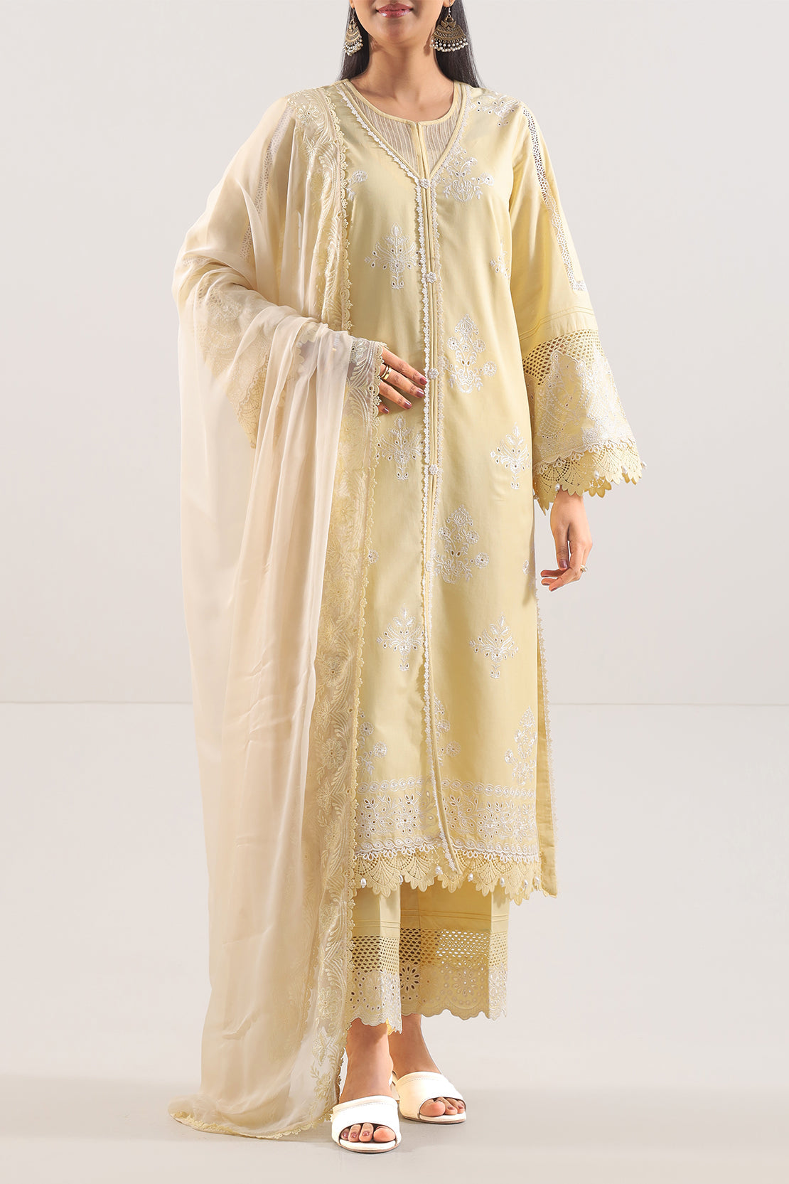 Unstitched Solid Embroidered Cambric 3 Piece with Chiffon Dupatta