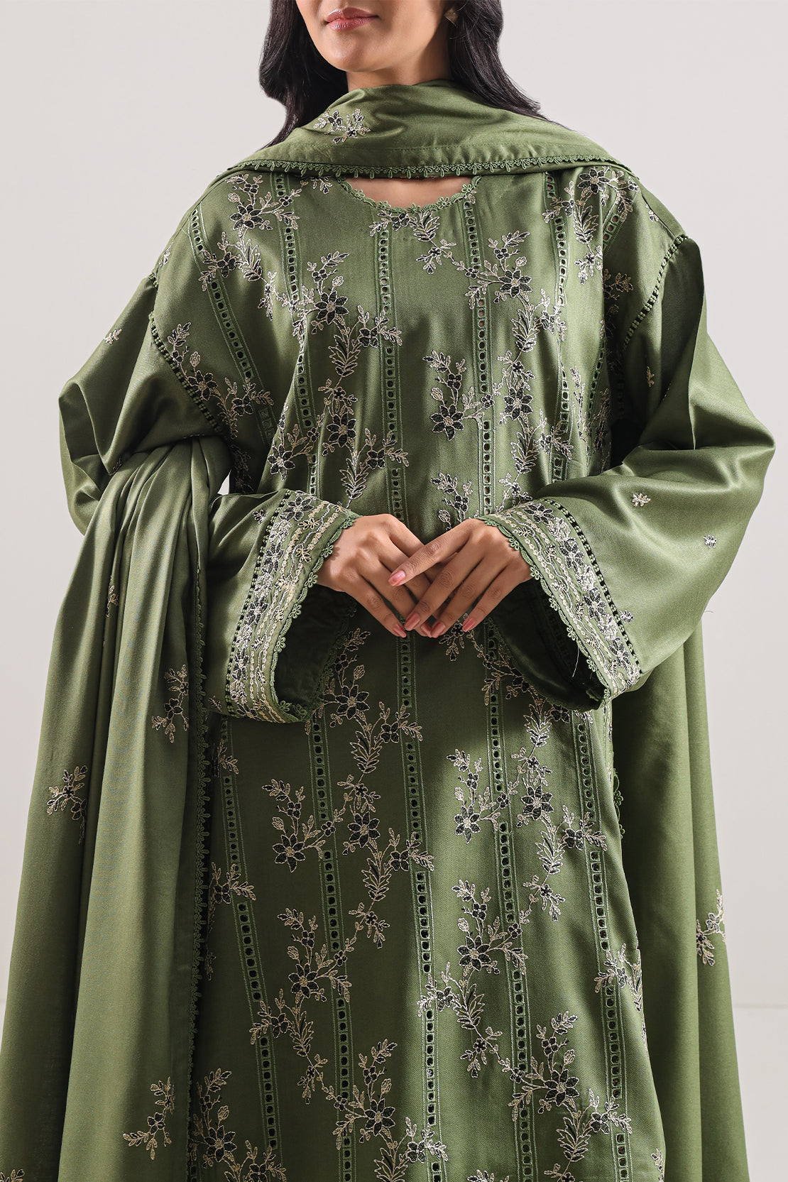 Unstitched Solid Embroidered Herringbone 3 Piece