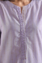 Cotton Jacquard Stitched Two-Piece Shirt & Trouser By SAYA, Crafted From Premium Jacquard Cotton That Offers Rich Texture And Natural Breathability. The Shirt Features A Refined Lavender-Purple Hue With Timeless Woven Pattern, Paired Seamlessly With A Ready-To-Wear Trouser In Matching Tone For A Polished Look. Perfect For Semi-Formal Gatherings, Daywear, Or Casual Elegance With Comfort. Fine Stitching, Durable Seams, And A Silhouette That Balances Structure With Ease. A Stylish Piece That Elevates Everyday Wardrobe With Sophisticated Simplicity.