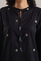 Elevate Your Wardrobe With SAYA’s Cotton Jacquard 2-Piece Set. Crafted From Cotton Jacquard Fabric In Black, It Features A Ready-To-Wear Shirt And Matching Trouser. The Rich Textured Weave Offers Visual Depth While The Tailored Cuts Ensure Sleek Elegance. Lightweight Yet Durable, This Ensemble Blends Polished Utility With Statement Style—Ideal For Formal Evenings, Festive Moments, Or Stylish Everyday Wear.