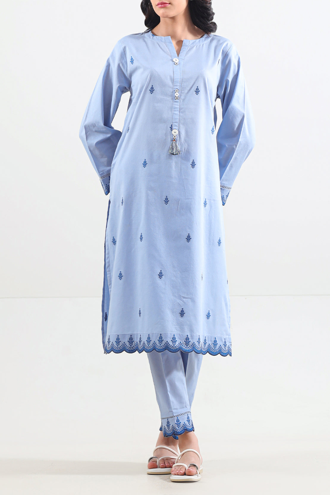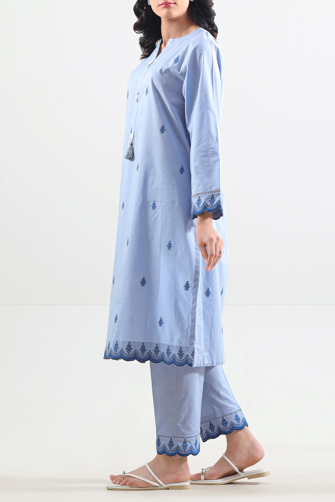 Elevate Your Everyday Elegance With This Cotton Jacquard Stitched 2-Piece Set From SAYA. Made From Rich Cotton Jacquard Fabric, The Shirt Features A Subtle Self-Textured Weave That Elevates Visual Interest With Minimal Effort. Paired With Tailored Trousers Offering Structure And Flow, The Ensemble Strikes A Balance Between Smart Silhouette And Everyday Comfort. Ideal For Office Wear, Smart Casual Events, Or Polished Everyday Styling, This Set Delivers Refined Utility With Graceful Simplicity.
