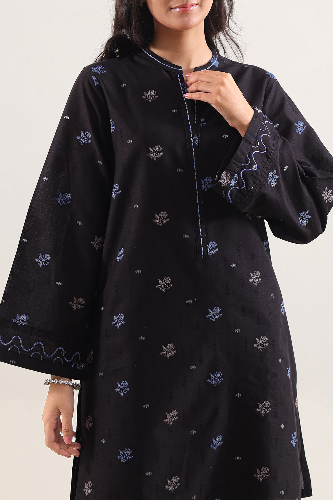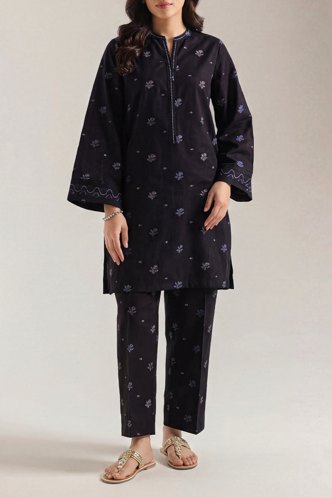 Discover SAYA's stunning embroidered cotton jacquard two-piece, where traditional craftsmanship meets modern elegance. Featuring fabric with intricate embroidery and perfect tailoring, this ensemble offers both comfort and sophistication for weddings and special occasions. Designed for those who appreciate quality and style.