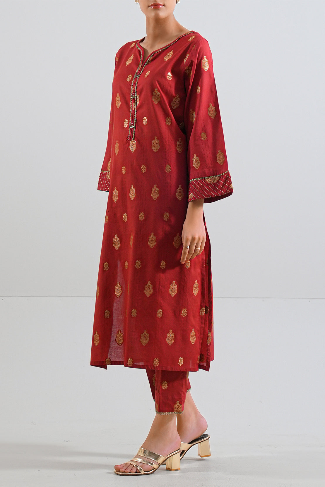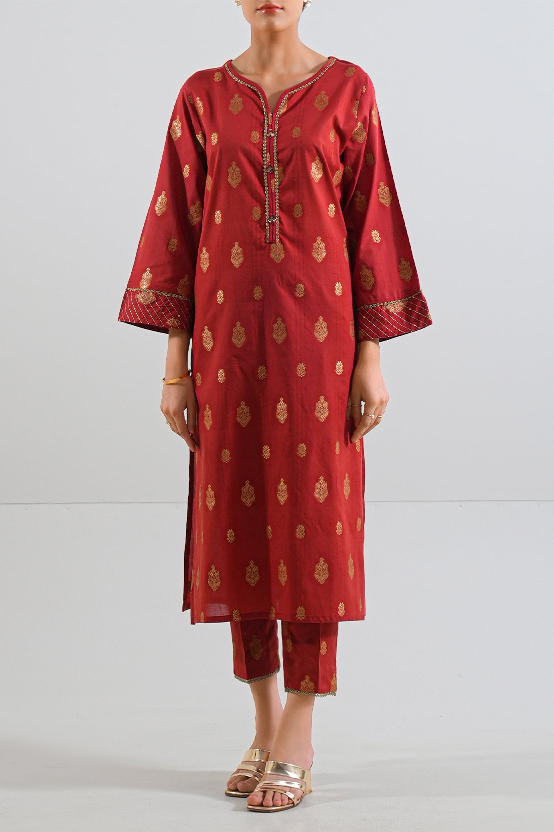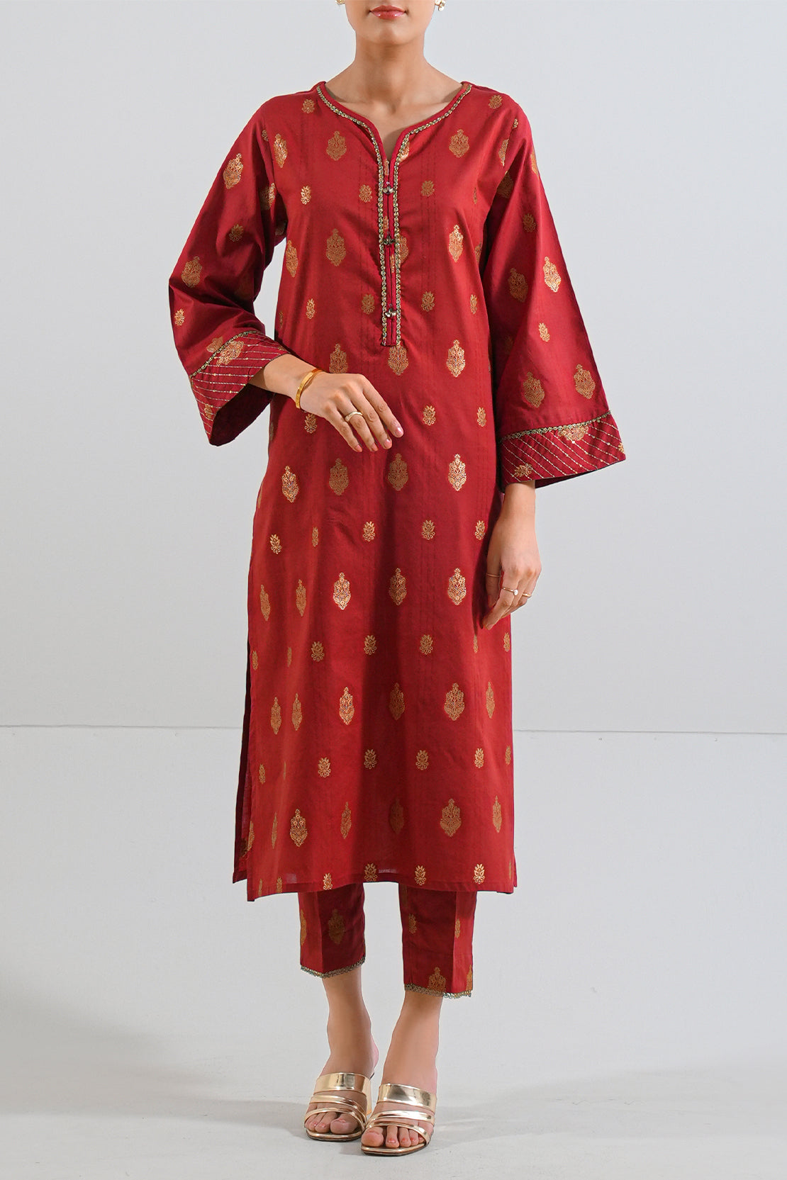 Embroidered Cotton Jacquard Stitched 2 Piece (Shirt/Trouser)