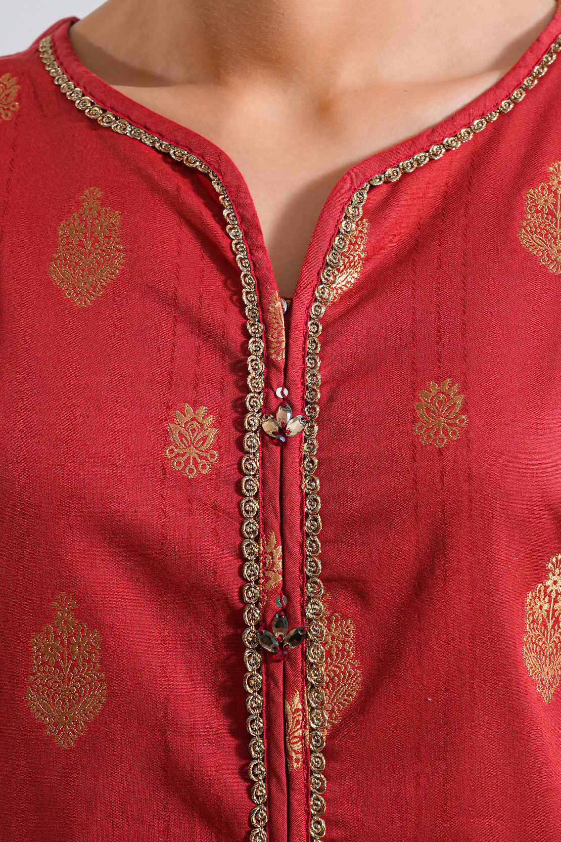 Ready To Wear Embroidered Cotton Jacquard Stitched Shirt.