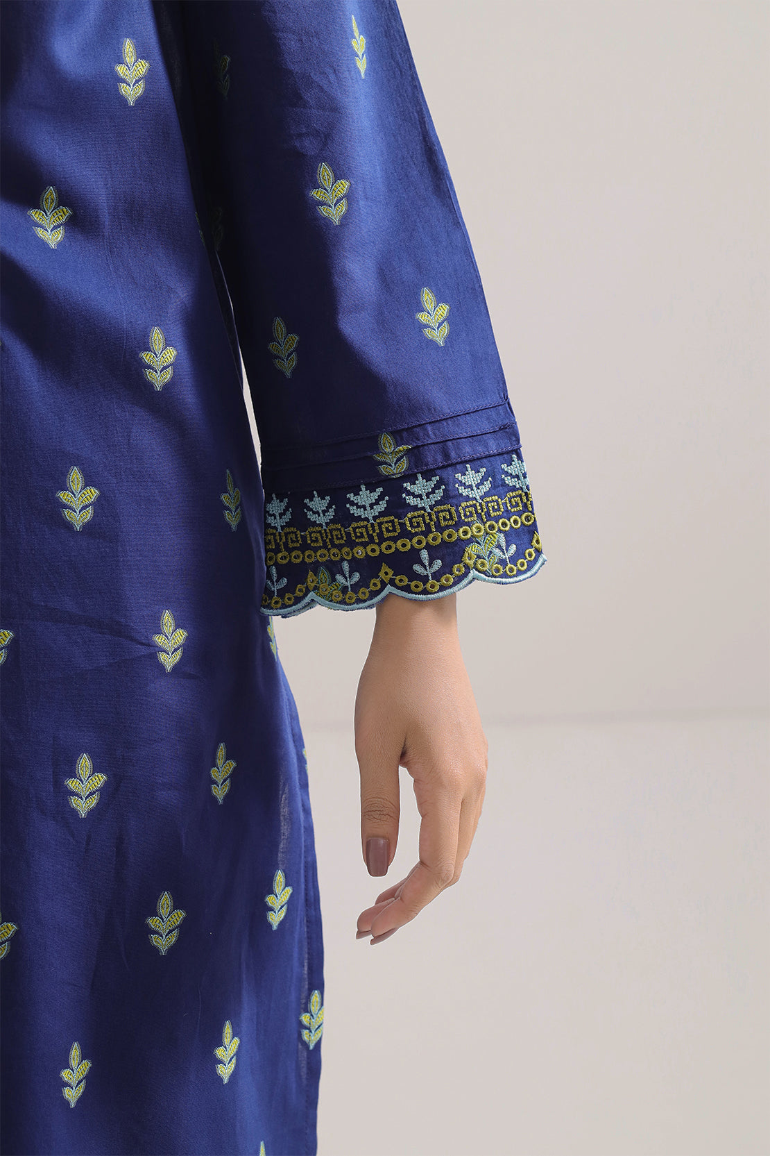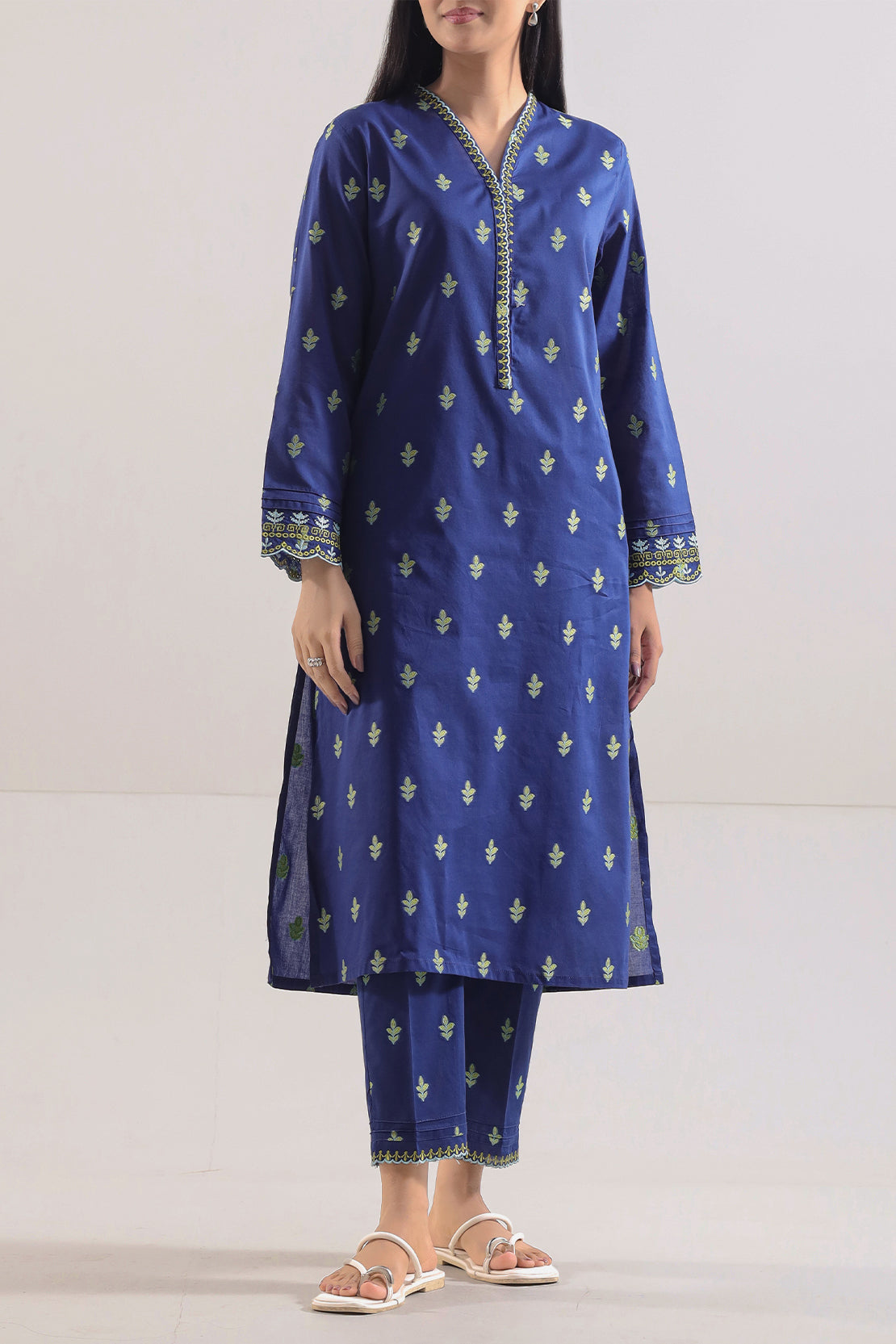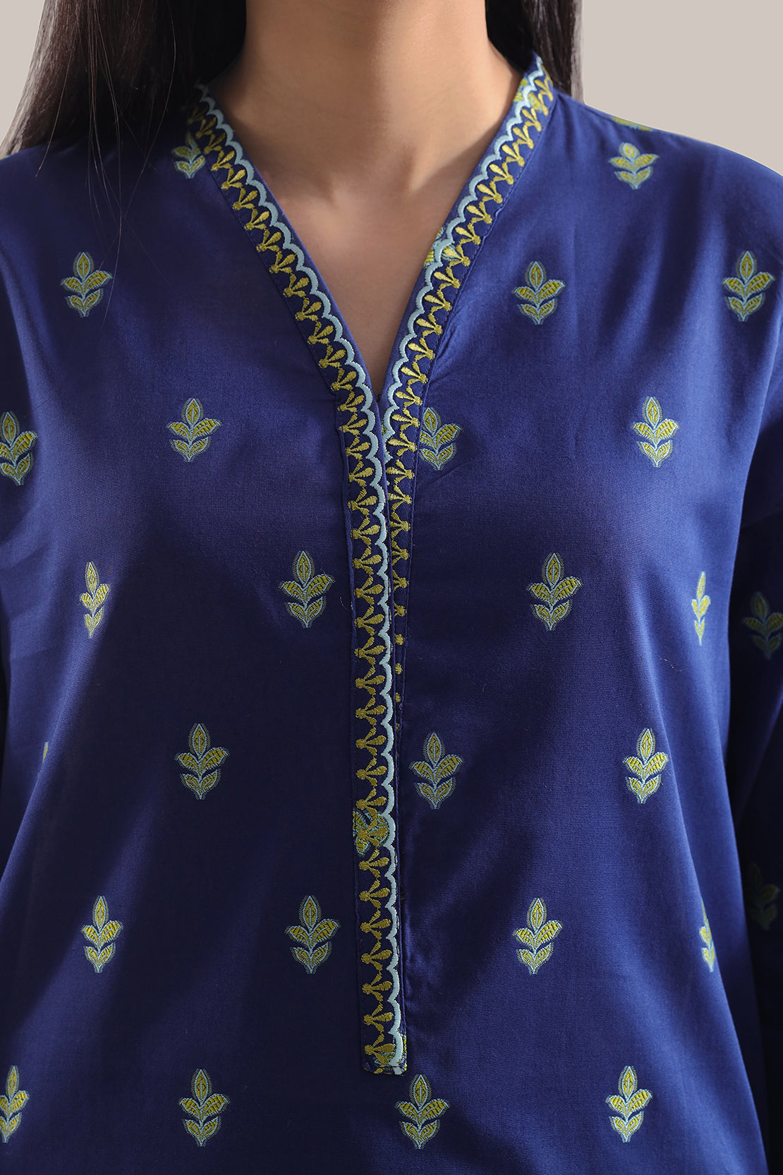 Embroidered Cotton Jacquard Two-Piece From SAYA Features A Rich Navy Blue Shade With Delicate Jacquard Weave. Shirt Is Gracefully Embroidered And Stitched For A Comfortable Fit, Paired With A Neatly Tailored Trouser. Breathable And Durable Fabric Makes It Ideal For Semi-Formal Gatherings, Festive Occasions, And Stylish Daywear.