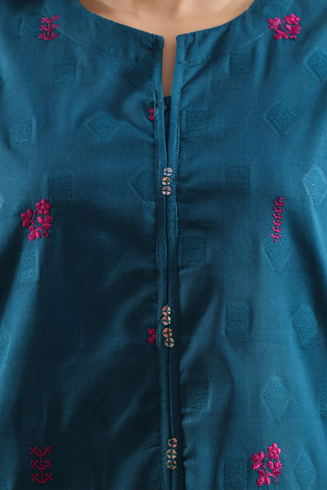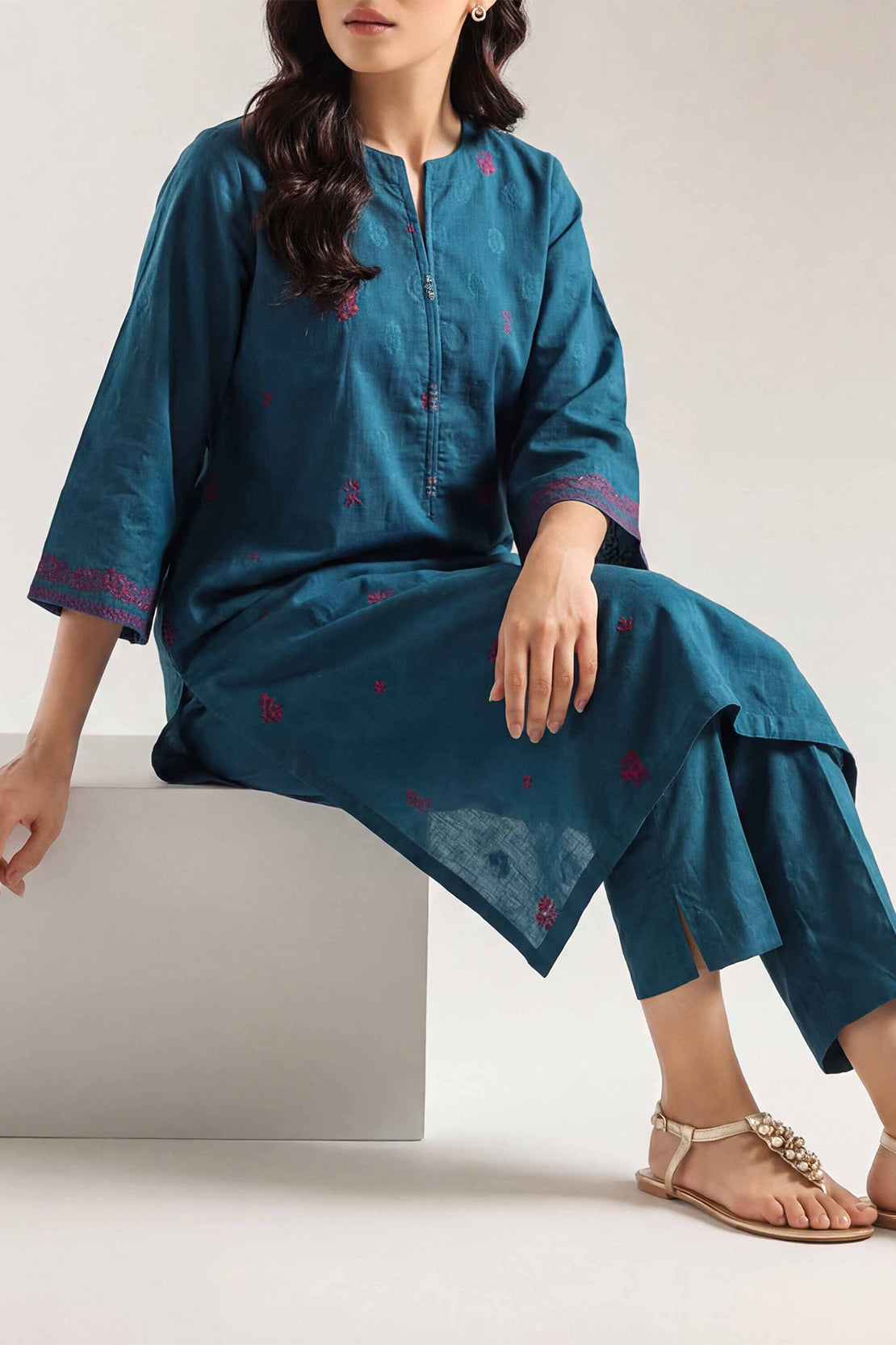 SAYA Embroidered Cotton Jacquard Stitched 2-Piece Shirt & Trouser Is Crafted From Premium Cotton Jacquard With A Rich Woven Texture And Subtle Raised Pattern. The Shirt Is Adorned With Elegant Embroidery Detailing That Elevates The Design, While The Trouser Offers Comfortable Structure And Easy Wear. Perfect For Semi-Formal Events, Office Days, Or Polished Everyday Looks.
