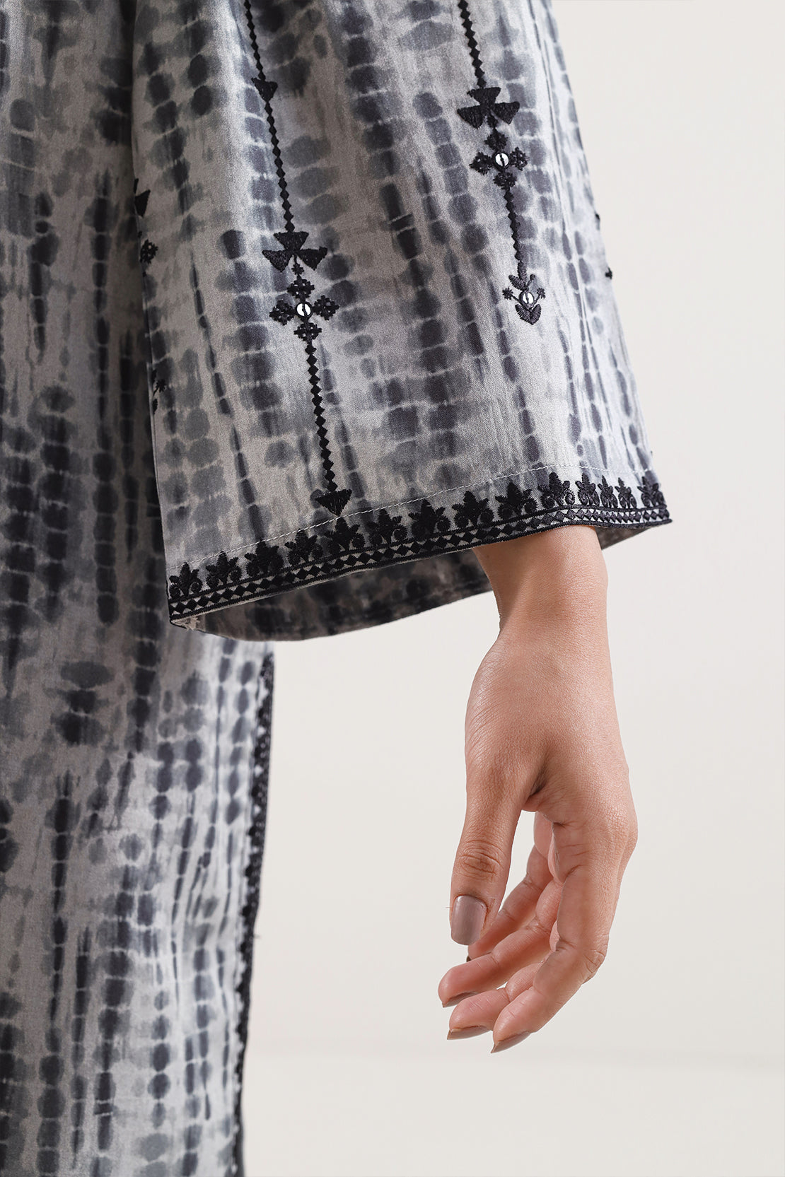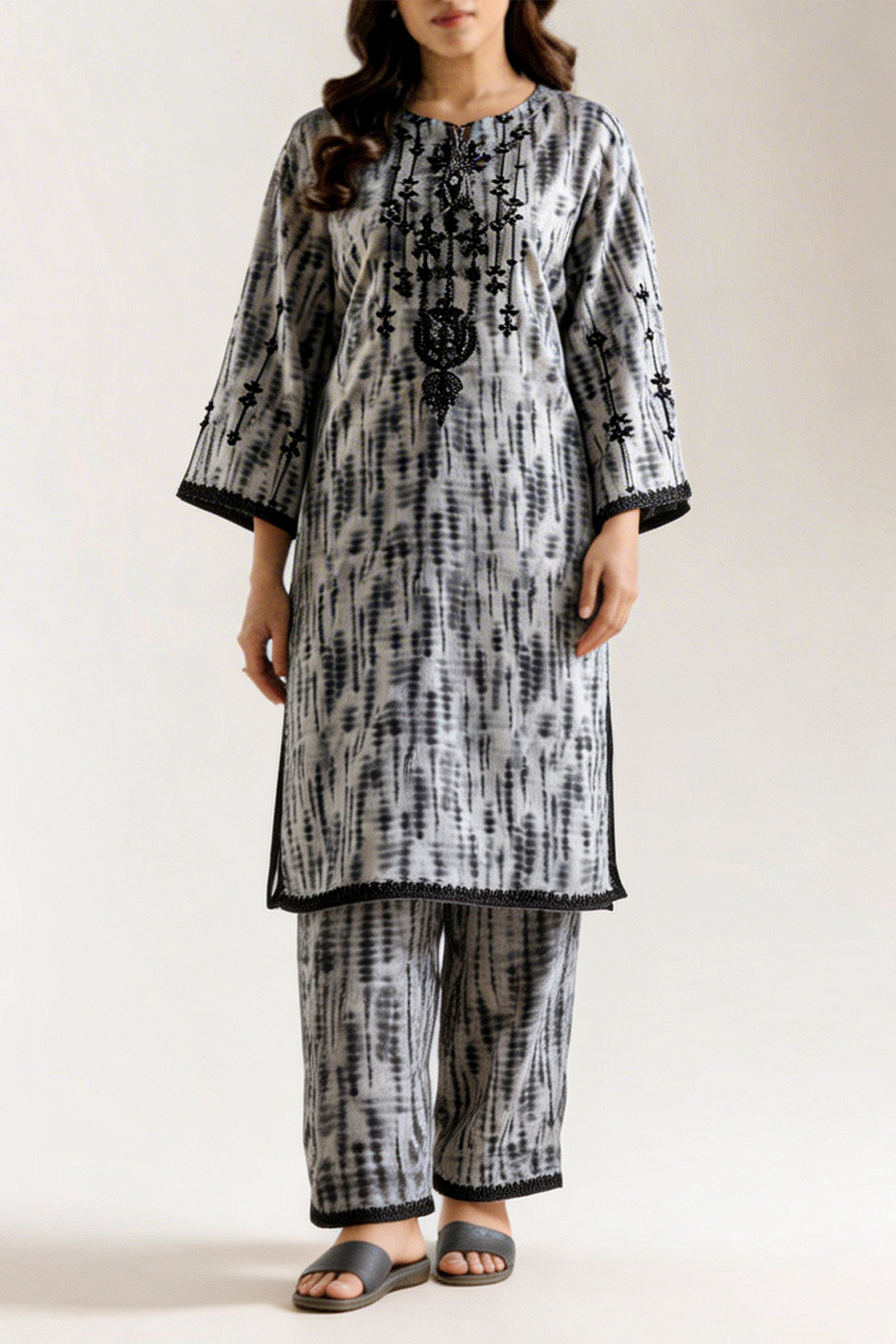 Elevate Your Wardrobe With This Exquisitely Designed Two-Piece From SAYA, Crafted In Lawn Fabric — A Fine, Lightweight Known For Its Breathability And Refined Texture. The Shirt Features Intricate Arabic-Inspired Embroidery That Adds A Touch Of Cultural Sophistication Without Overpowering The Subtle Print. The Matching Trouser Complements With A Straight Cut And Seamless Stitching, Delivering A Polished, Coordinated Look. Perfect For Daytime Festivities, Semi-Formal Events, Or Elegant Summer Gatherings, This Set Combines Comfort, Quality Craftsmanship, And Timeless Style.